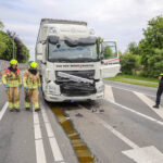 Donderdagmiddag zijn twee vrachtwagens met oplegger met elkaar in botsing gekomen op de Ringbaan Noord ter hoogte van de stoplichten bij de St Luciastraat in de wijk Boshoven in Weert.