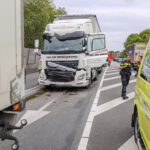 De achterste vrachtwagen botste met hoge snelheid achter op zijn voorganger. Waarschijnlijk heeft hij niet gezien dat zijn voorganger stil stond. De chauffeur van de achterste vrachtwagen raakte gewond. Hij is met spoed overgebracht naar het ziekenhuis. De chauffeur van de voorste vrachtwagen kwam met de schrik vrij