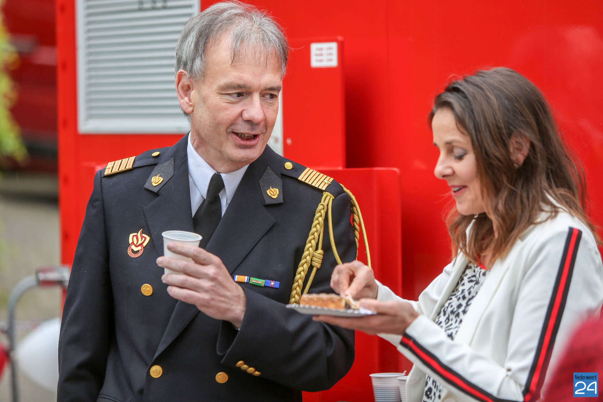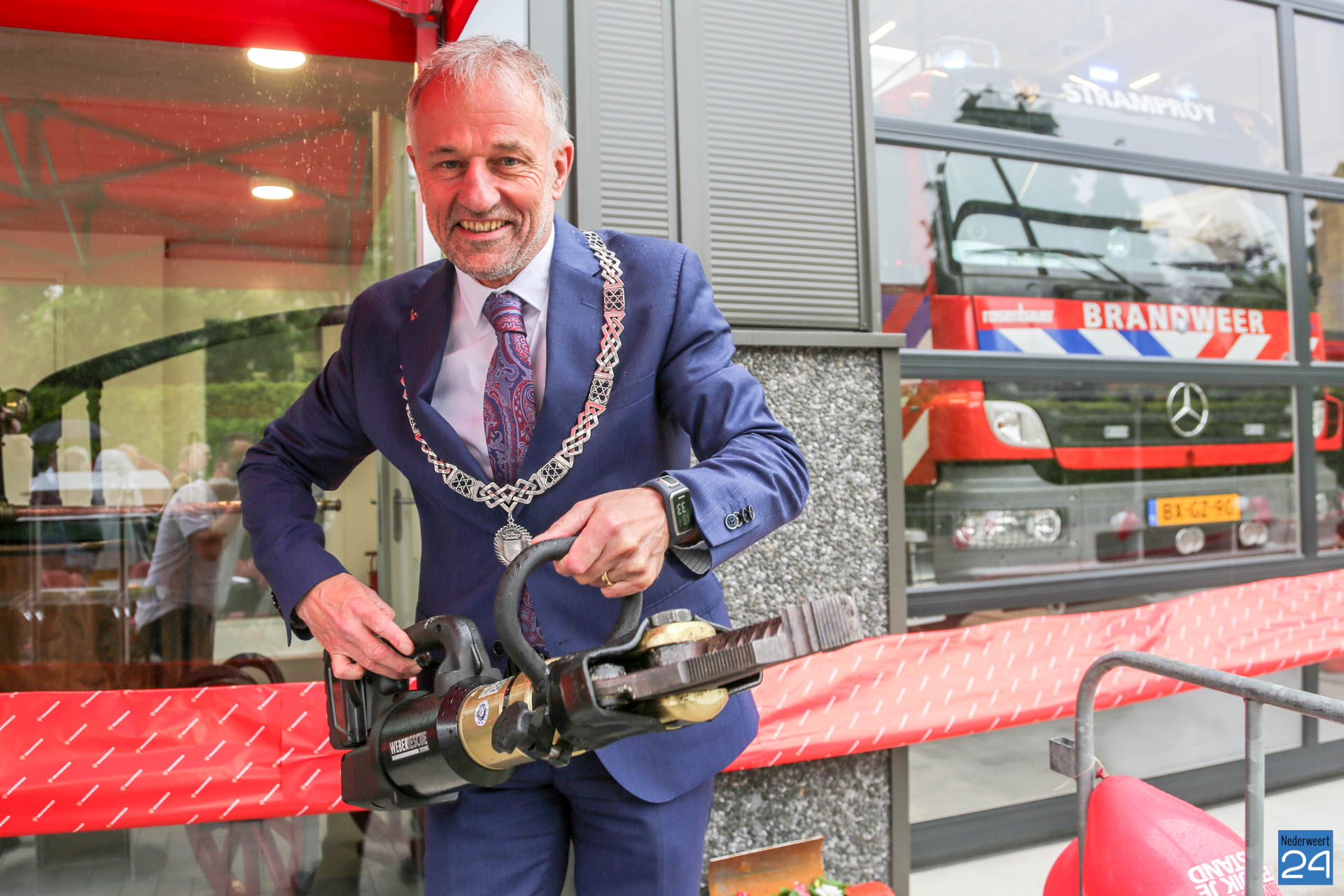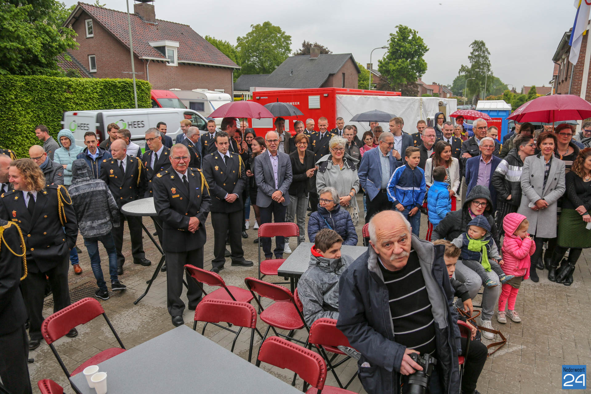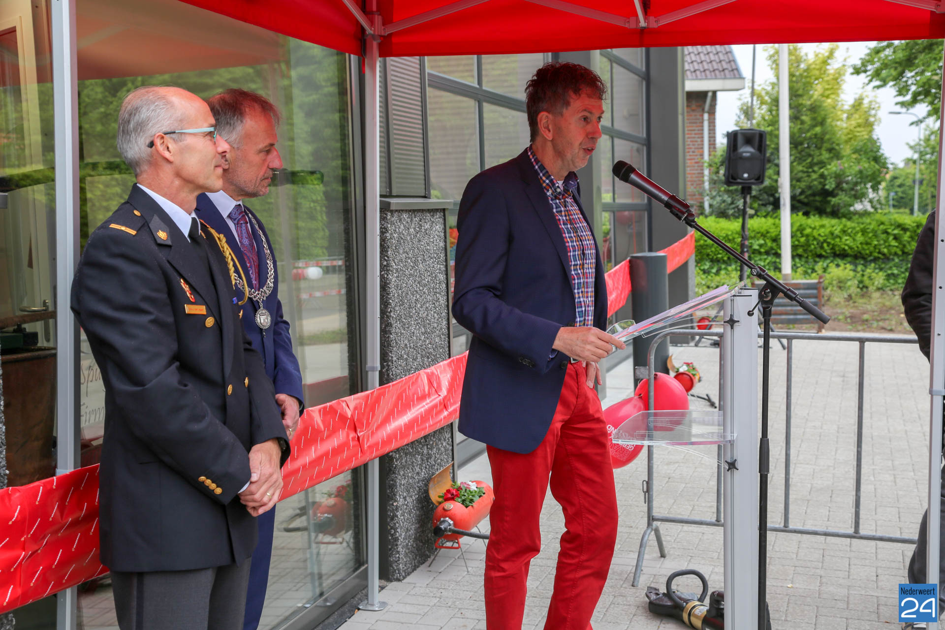 Postcommandant Dick van Aggel, regionaal commandant Paul van Mullekom en burgemeester Heijmans van Weert wisten met een spreider het lint door te knippen waarna de tankautospuit en het personeelsbusje konden uitrukken. Onder een luid applaus en loeiende sirenes, werd de kazerne geopend.