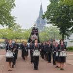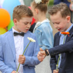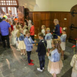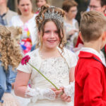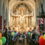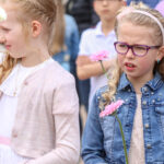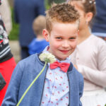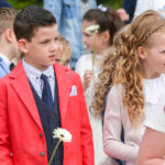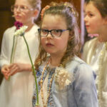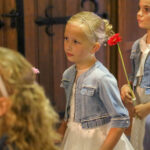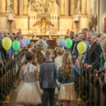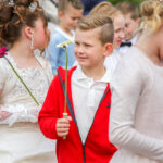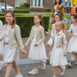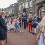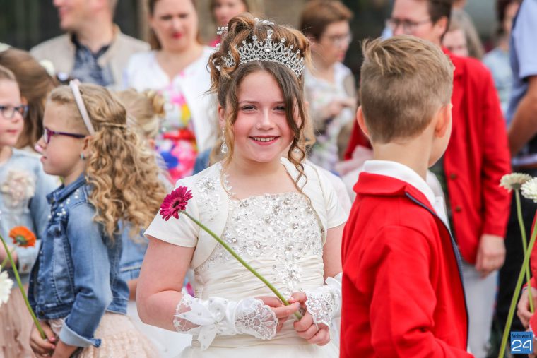 De communicanten, de papa’s en mama’s en de broertjes en zusjes liepen van daaruit, onder muzikale begeleiding van Harmonie St Joseph, naar de kerk waar de familie, vrienden hen stond op te wachten. Meneer pastoor kwam naar buiten om de kinderen te verwelkomen.