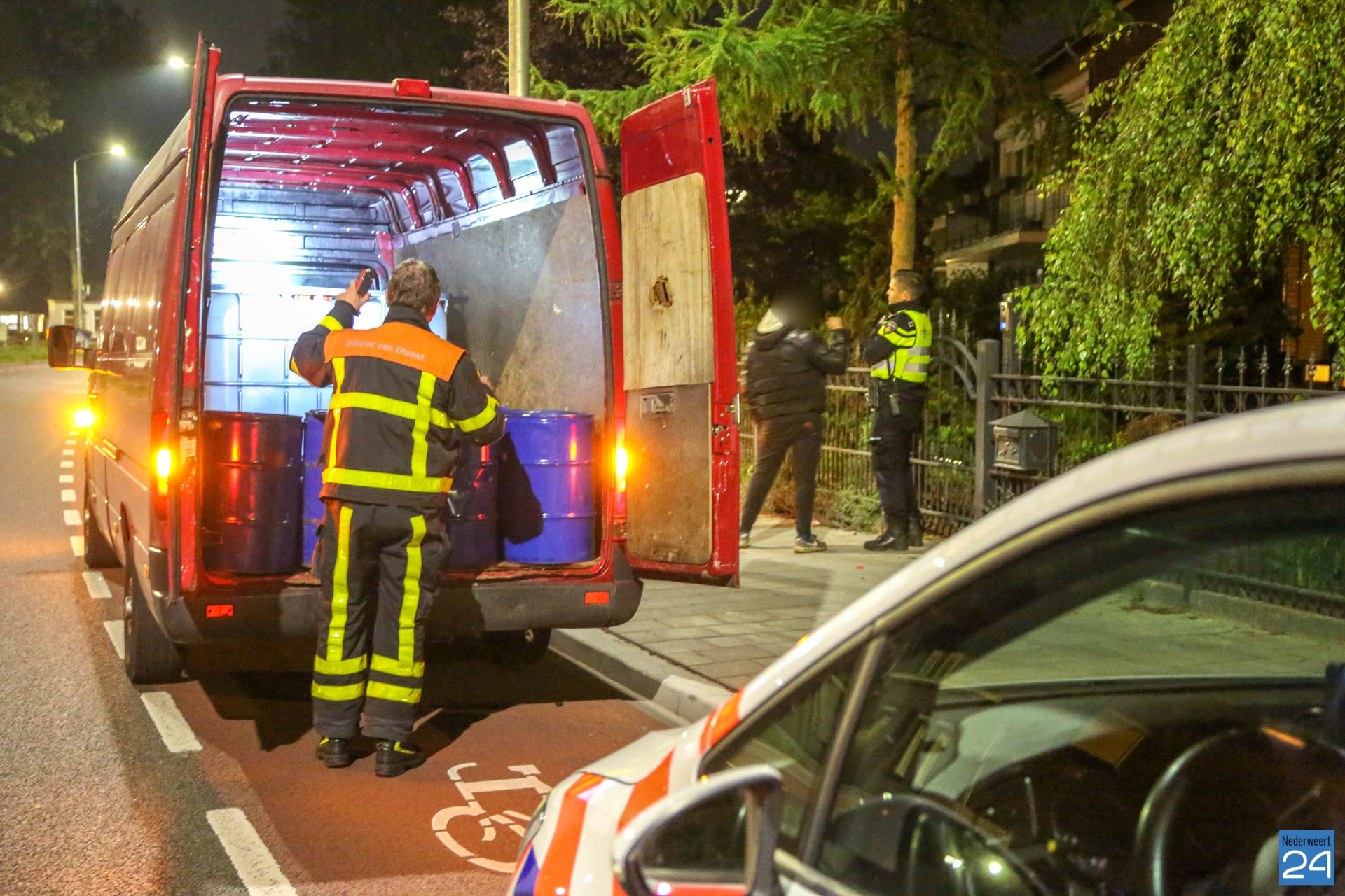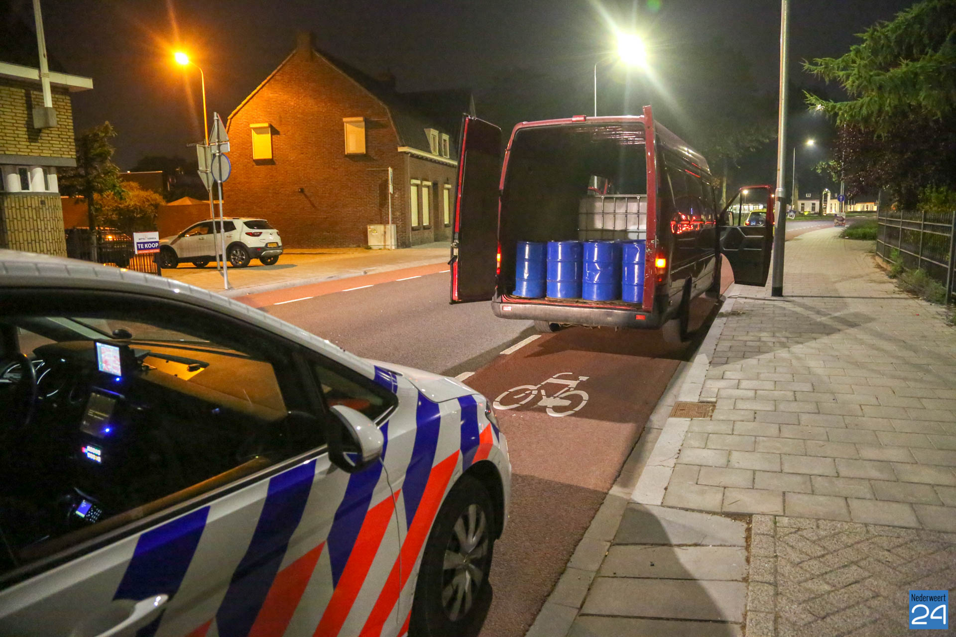 De politie heeft in de nacht van zaterdag op zondag in de laadruimte van een bestelbus enkele olievaten en een IBC container aangetroffen. De inzittenden werden op de Maaseikerweg in Weert door agenten gecontroleerd.
