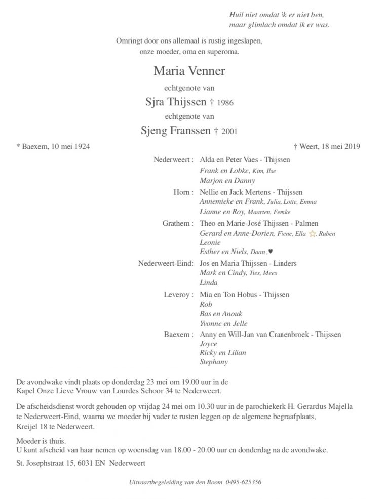 3. Van Harte gecondoleerd met het verlies van full moeder en oma