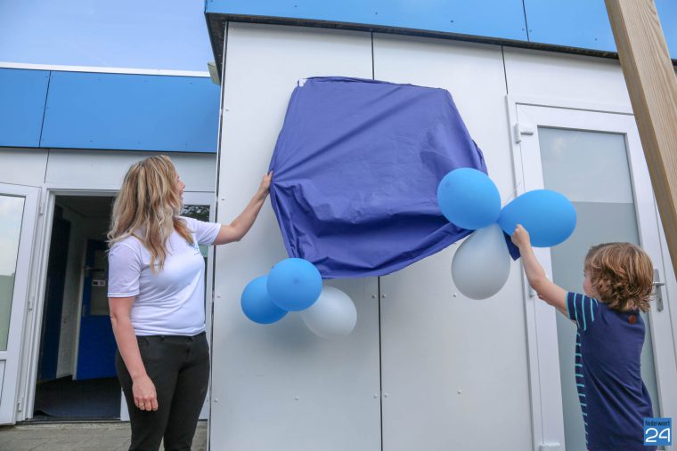 Tijdens de open dag werd het nieuwe logo van het ontwikkelingscentrum, onder toeziend oog van alle aanwezigen, onthuld.