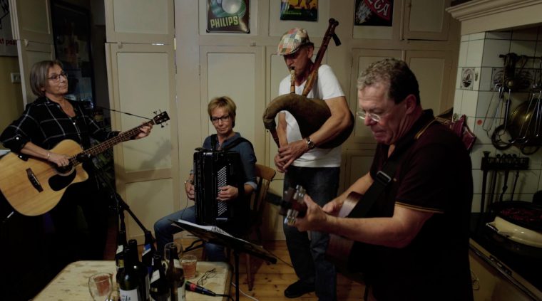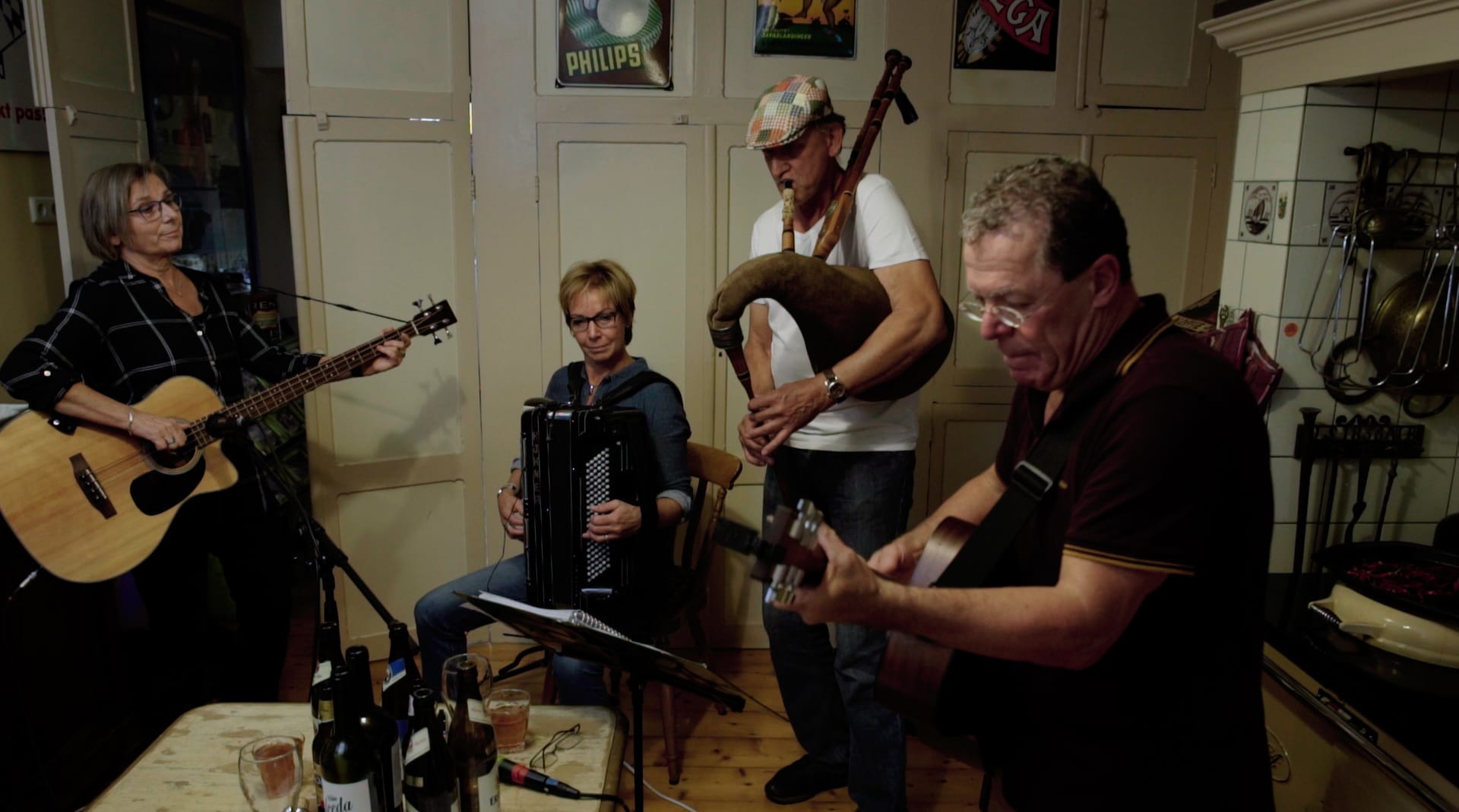 Het Peelpodium bij De Pelen biedt een programma met veel variatie; van koor tot troubadour, van hippe covers tot volksmuziek. Wat alle muzikanten gemeen hebben is dat ze uit de Streek komen. Zo ook de leden van ‘Ambiance Locale’. De muziek die ze maken gaat onder de noemer van ‘balfolk’ en Nederlandstalige volksmuziek. Balfolk is vrolijke, meestal instrumentale muziek, waarop gedanst kan worden (al is dat in het Amfitheater natuurlijk een beetje lastig). Het zijn vaak Franse bourrees, polka’s, scottisch en andere dansen. Daarnaast heeft Ambiance Locale ook nog een gevarieerd aanbod van volksmuziek uit Nederland en België. Op het repertoire staan luisterliedjes van o.a. Gerard van Maasakkers, Cornelis Vreeswijk, Johan Verminnen en Fungus, maar ook meezingers van De Veulpoepers. Ambiance Locale bestaat uit: Karin van Lierop: accordeon, zang, Mariëtte Kroon: basgitaar, toetsen (oa harmonium), zang, Martien Naus: gitaar en zang en Karel Brüsewitz: Vlaamse doedelzak, kromhoorn, mondharmonica en zang.
