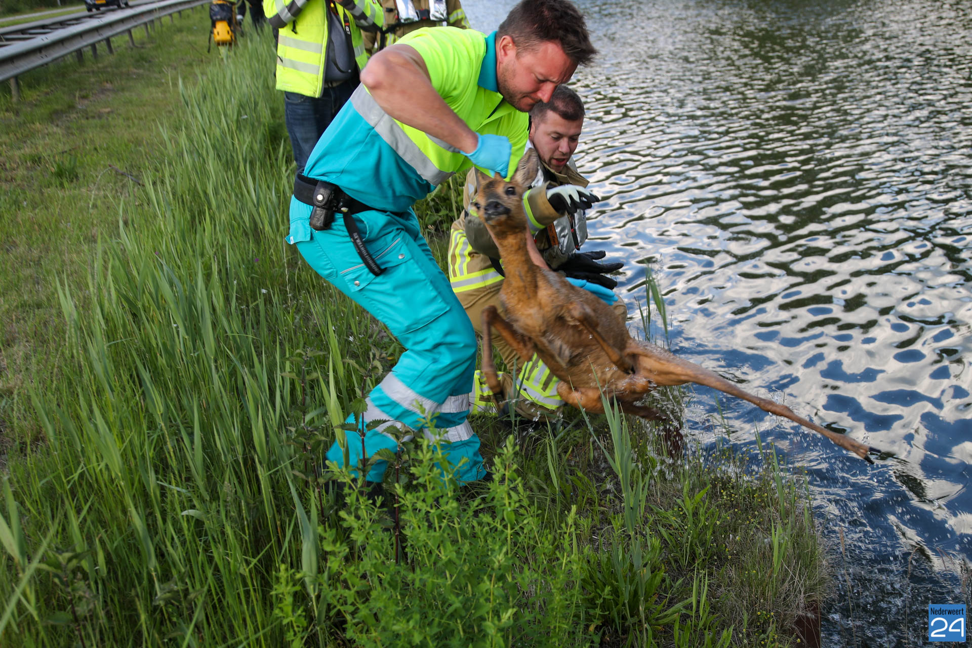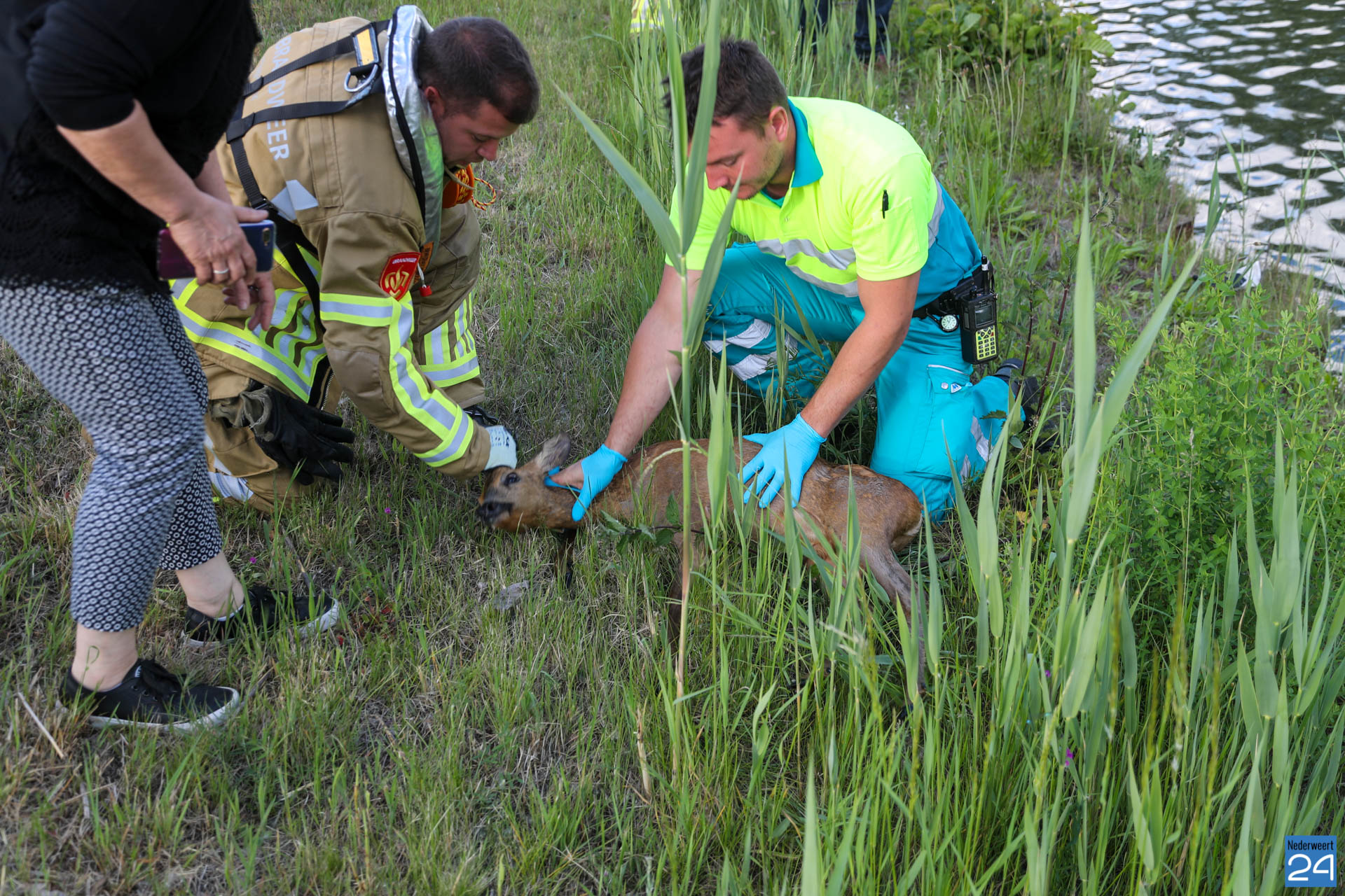 Zondagavond zijn een man en vrouw in de Zuid-Willemsvaart bij Weert gesprongen om een ree te redden, zo meldt de brandweer. Toen dit niet lukte hebben omstanders het tweetal weer op het droge geholpen.