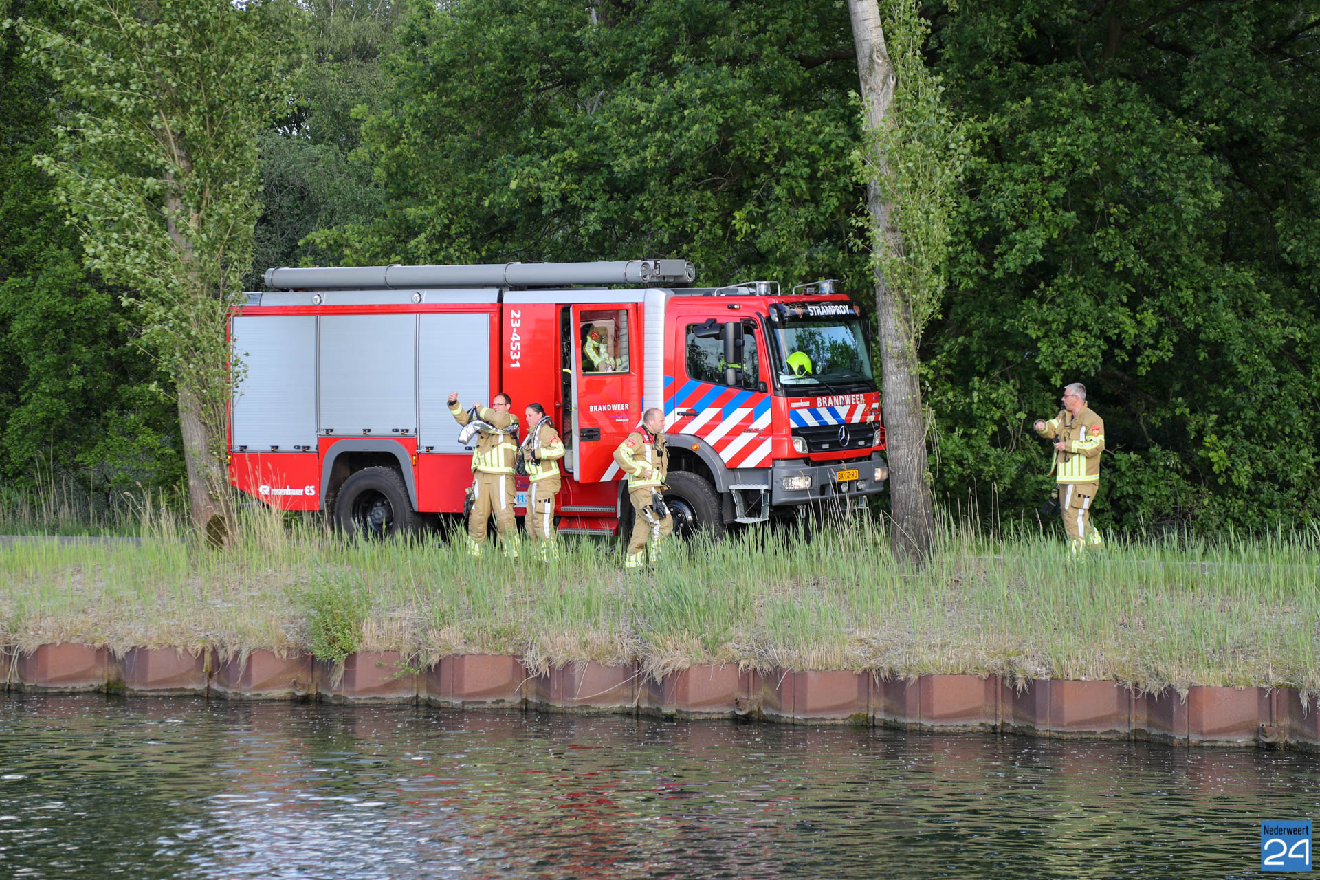 De brandweer ging in eerste instantie met meerdere voertuigen ter plaatse omdat er personen in het water zouden liggen. Eenmaal ter plaatse waren de personen al op het droge.