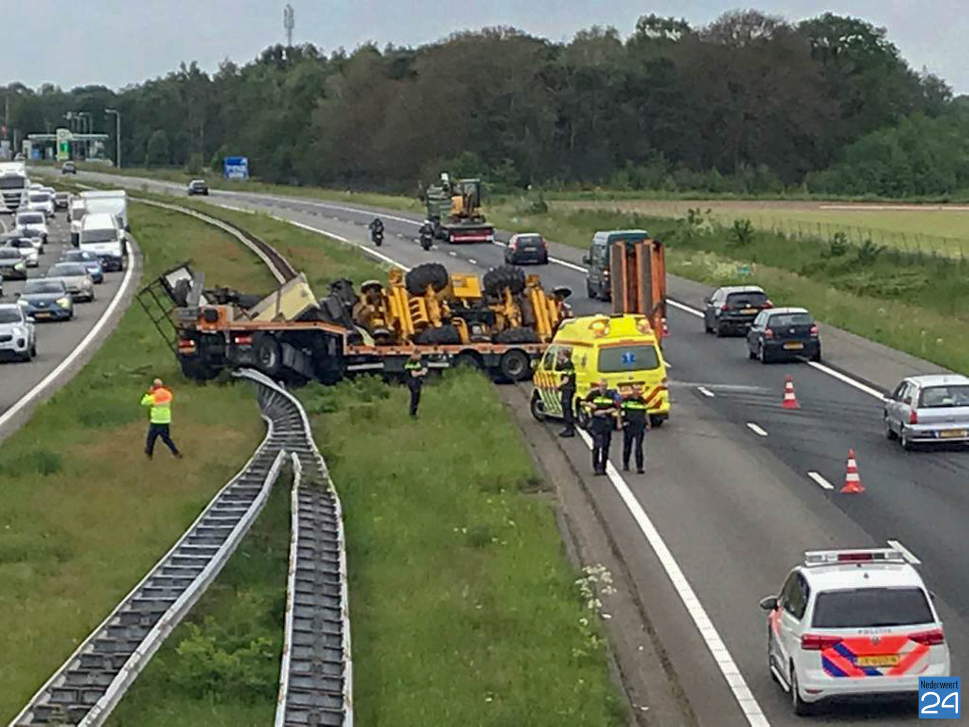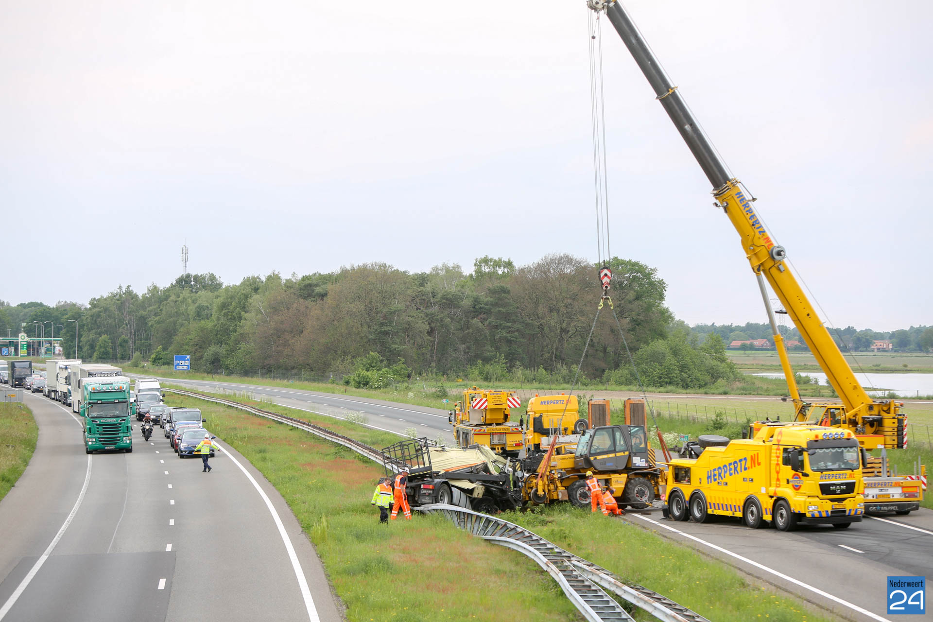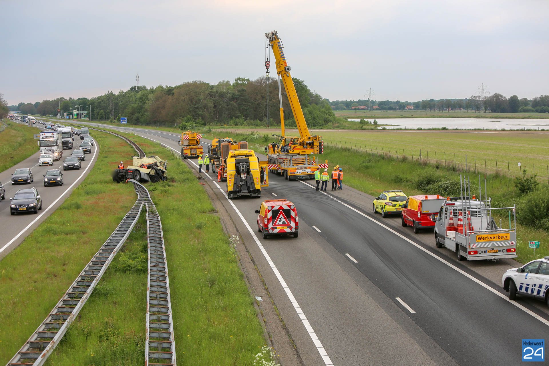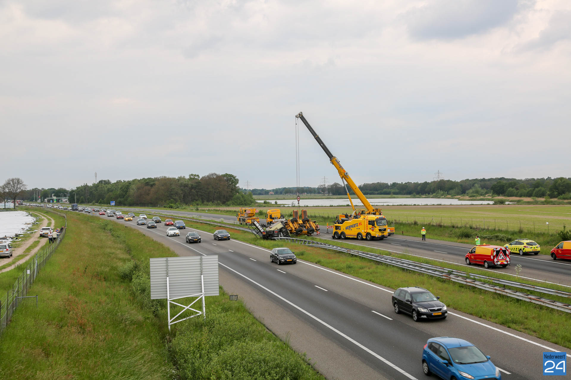 Door het ongeval ontstond er een flinke file in beide richtingen. Het bergen zal enige uren in beslag gaan nemen.