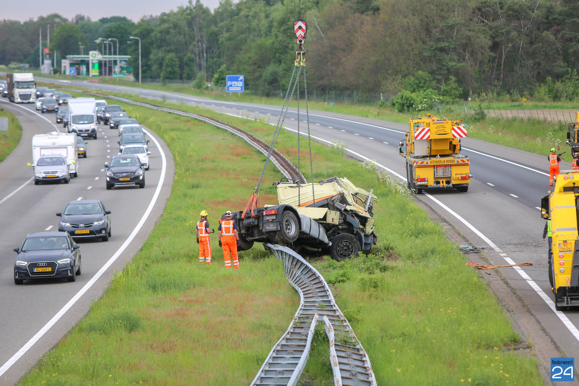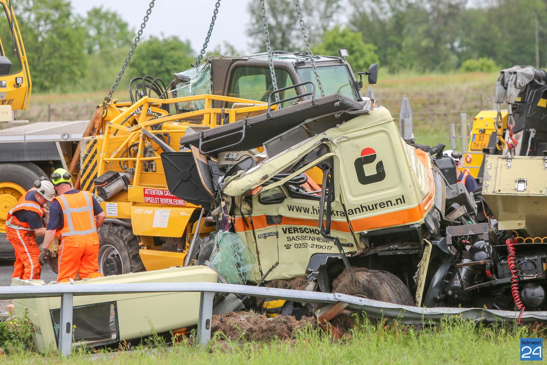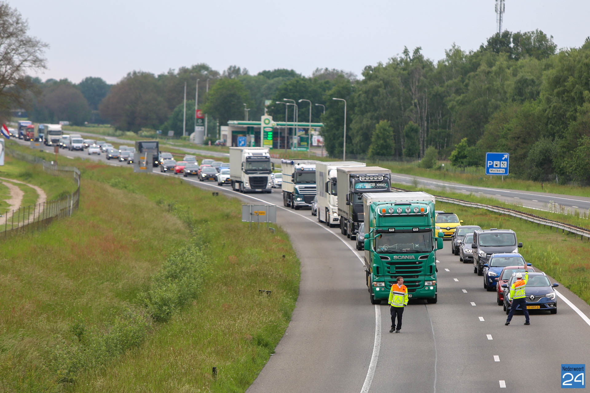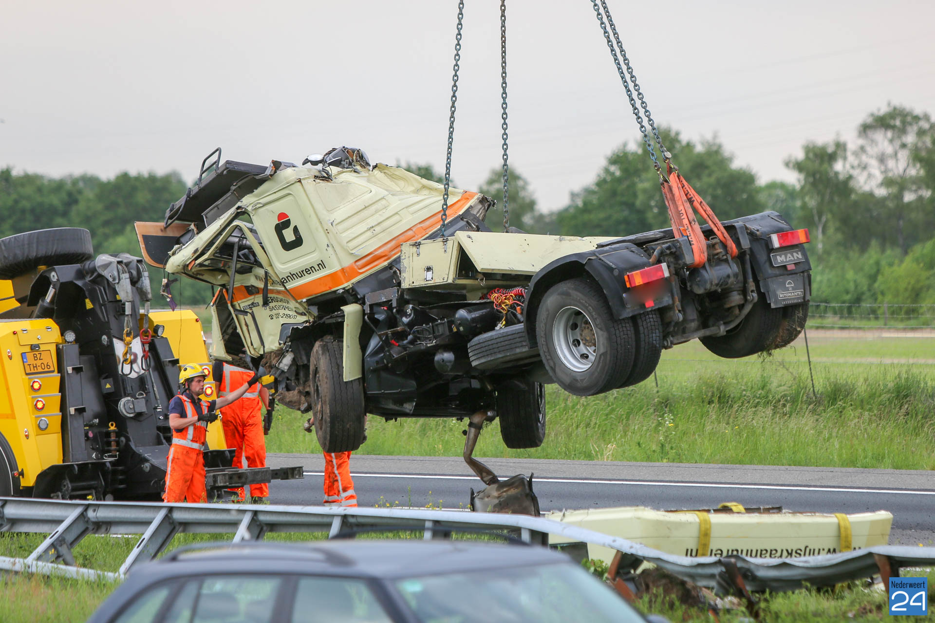 Door het ongeval ontstond er een flinke file in beide richtingen. Het bergen zal enige uren in beslag gaan nemen.