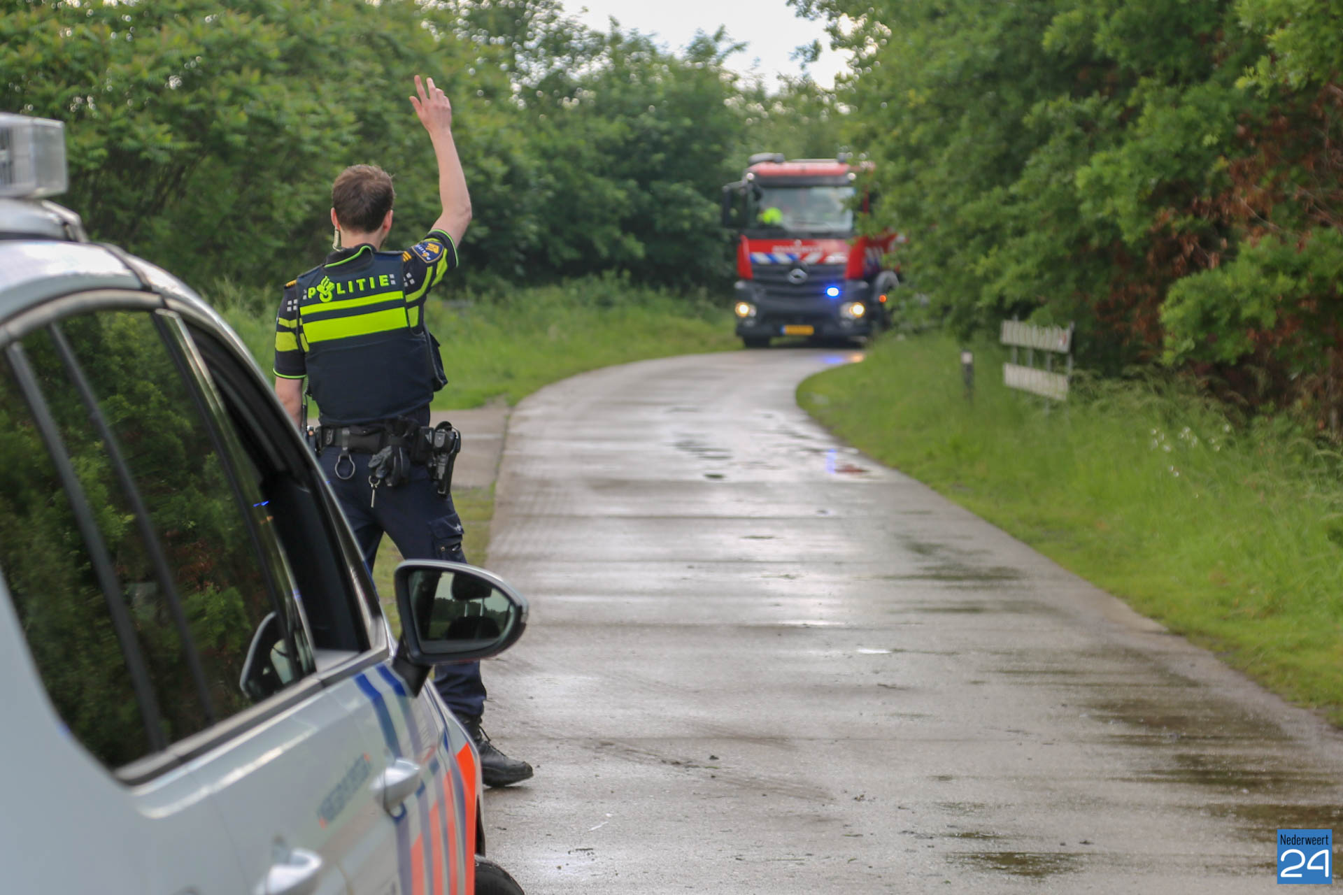 Een houtkachel is mogelijk de oorzaak van de brand. De brandweer kwam in actie met een blusvoertuig en twee waterwagens. Met behulp van een kraan wordt het dak verwijderd om de laatste brandhaarden te doven.