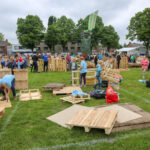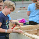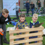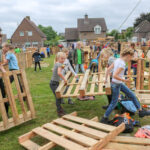 Donderdag, Hemelvaartsdag, ging de tiende editie van het Timmerdorp in Budschop aan het Rochusplein van start. Kinderen van de groepen 4 t/m 8 timmeren de komende drie dagen aan hun eigen ontworpen woningen van houten pallets. Burgemeester Henk Evers zorgde samen met twee kinderen voor de openingshandeling.