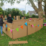 Tijdens het Dozendorp mag er met groepjes van 3, maximaal 4 kinderen gebouwd worden aan een hut van karton. Het Dozendorp bevindt zich bij de Blokhut van Jong Nederland Budschop.