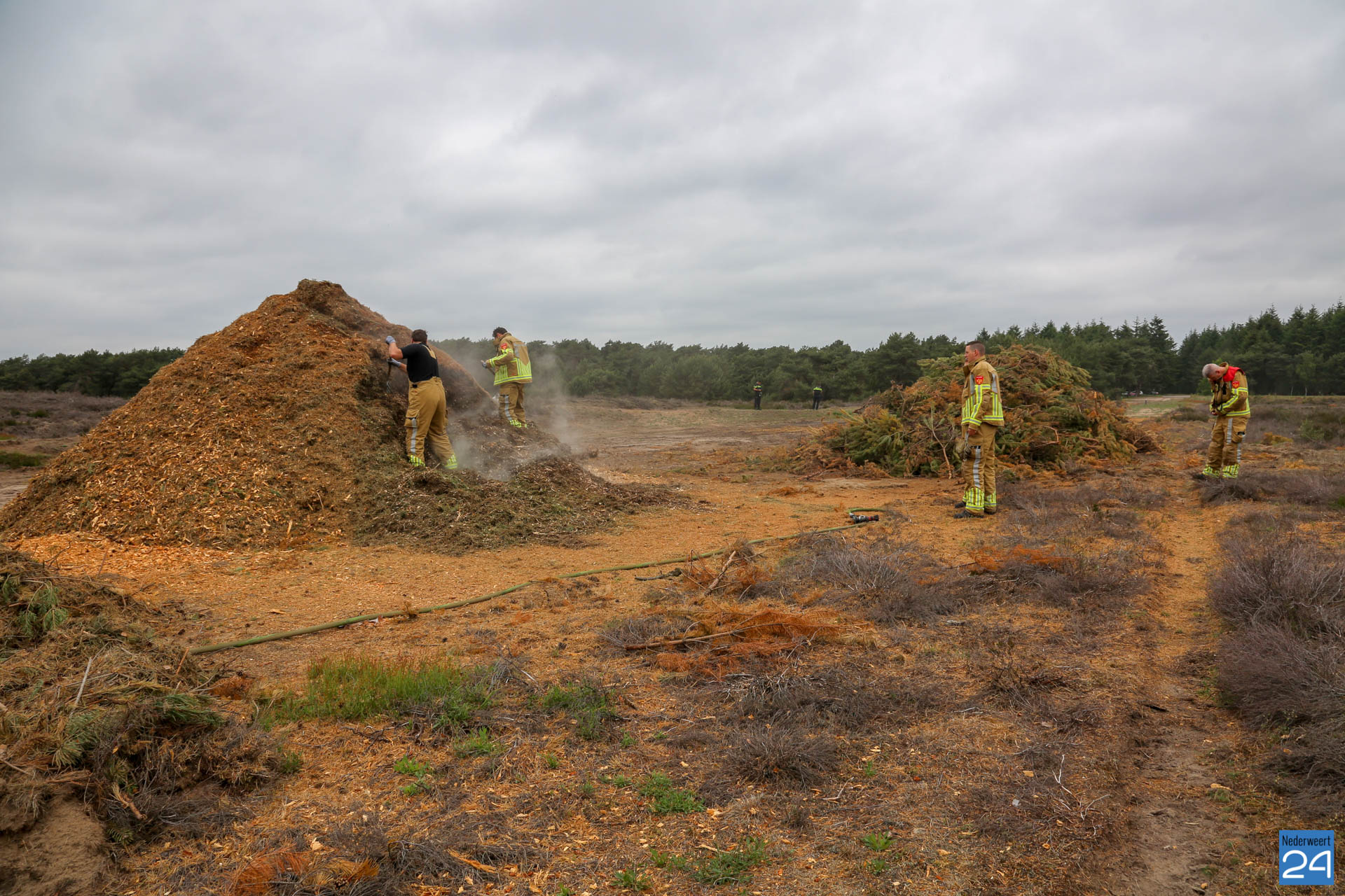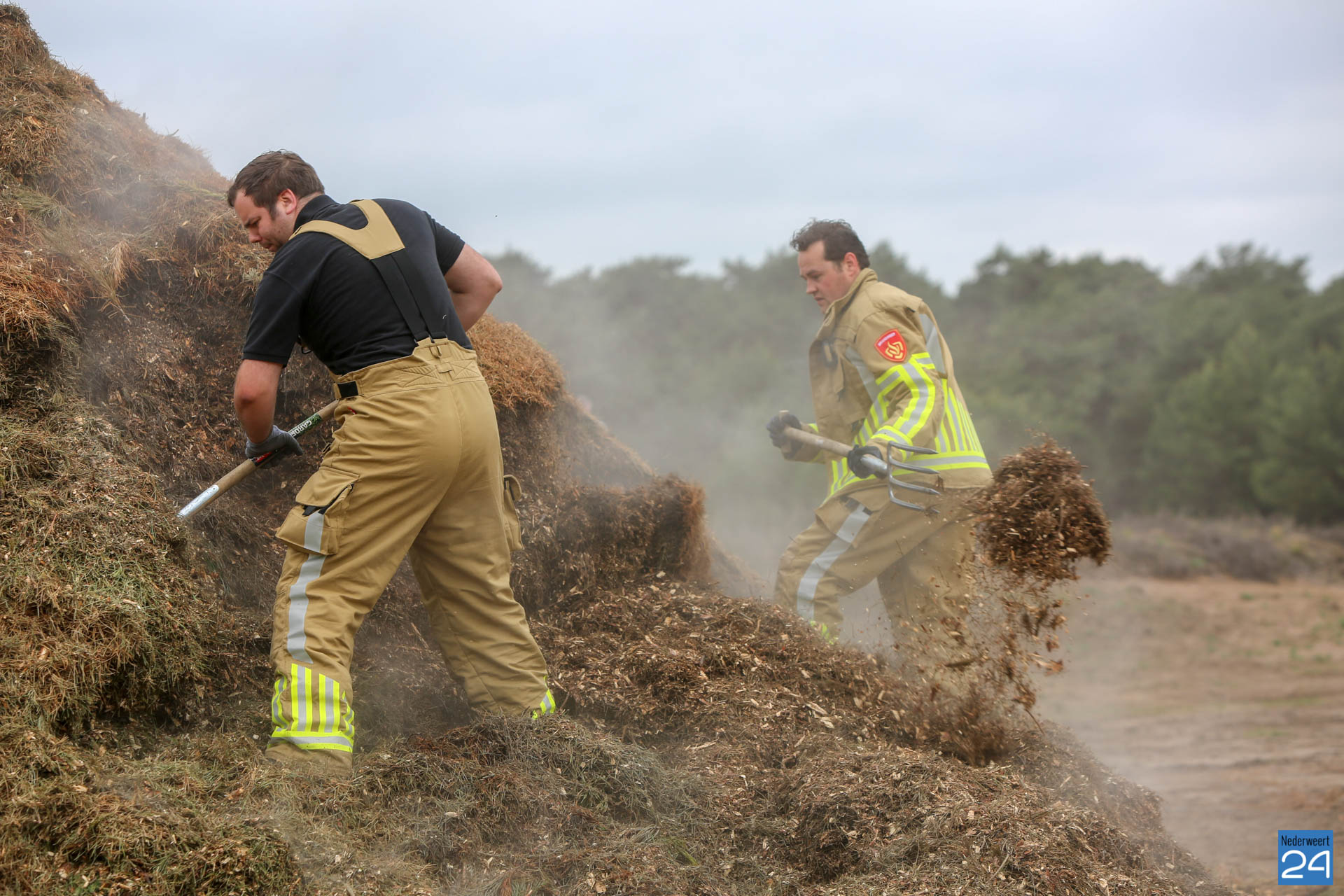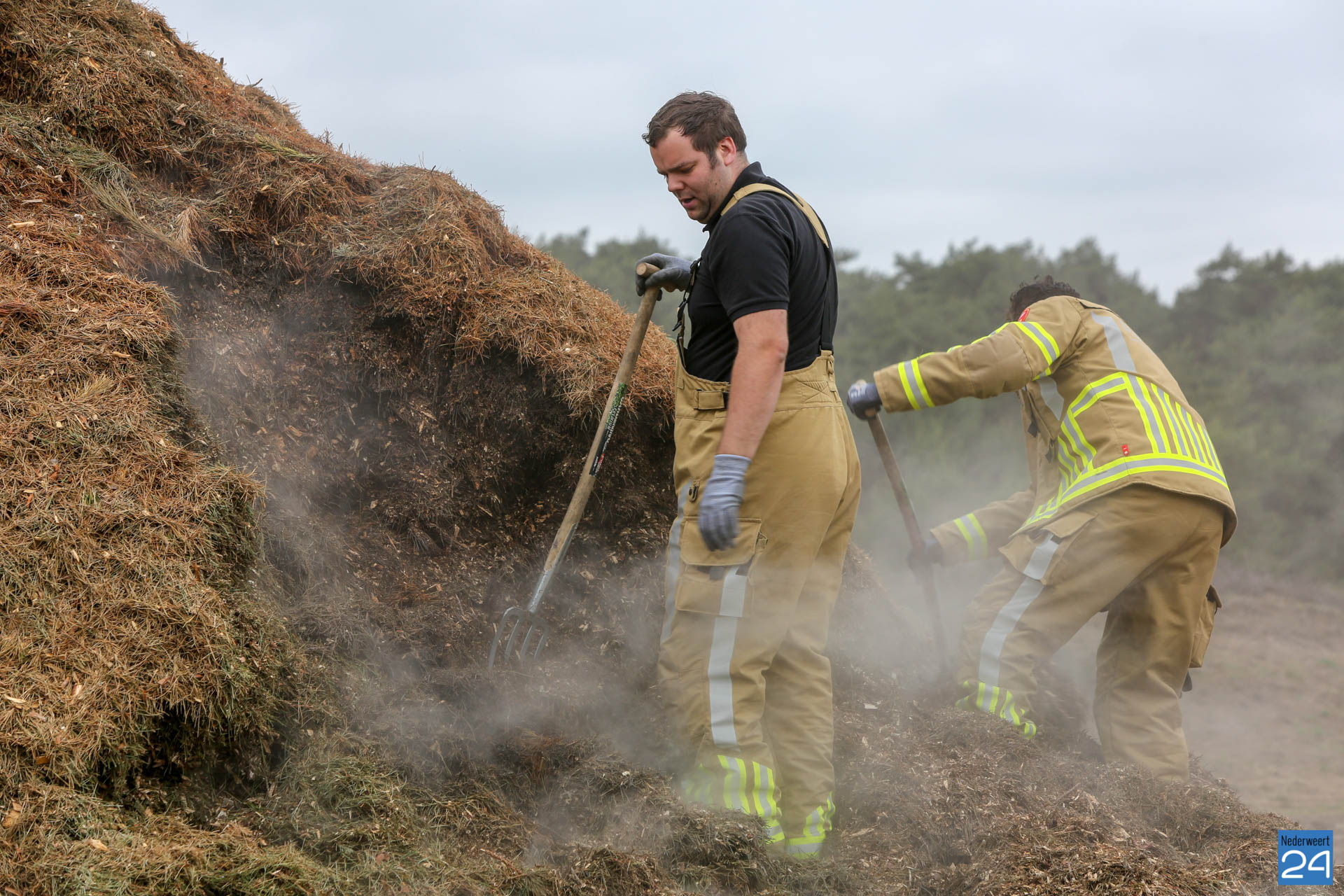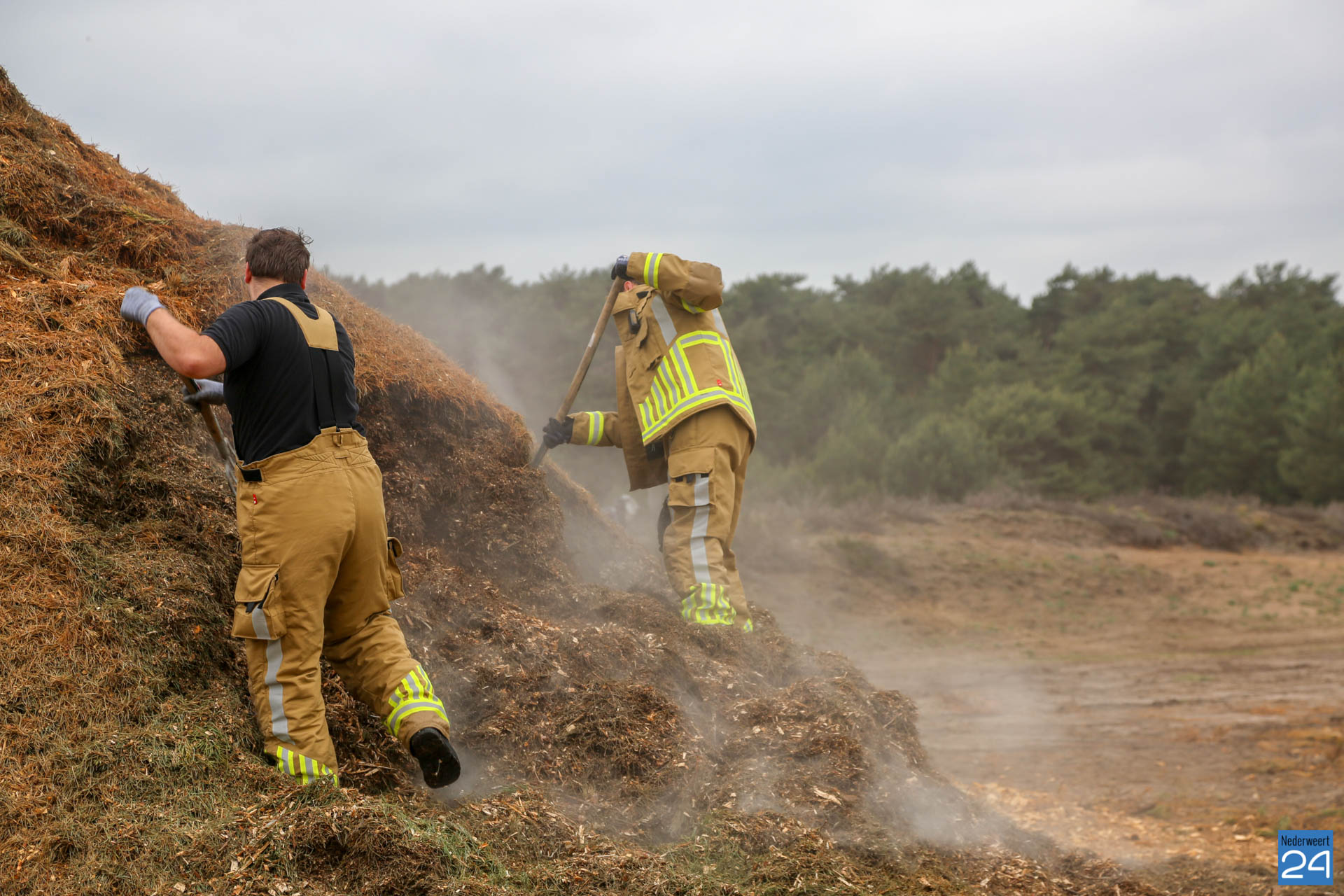 De brandweer kwam met een blusvoertuig en waterwagen ter plaatse. Een bulldozer wordt ingezet om de berg uit elkaar te trekken zodat het kan afkoelen.