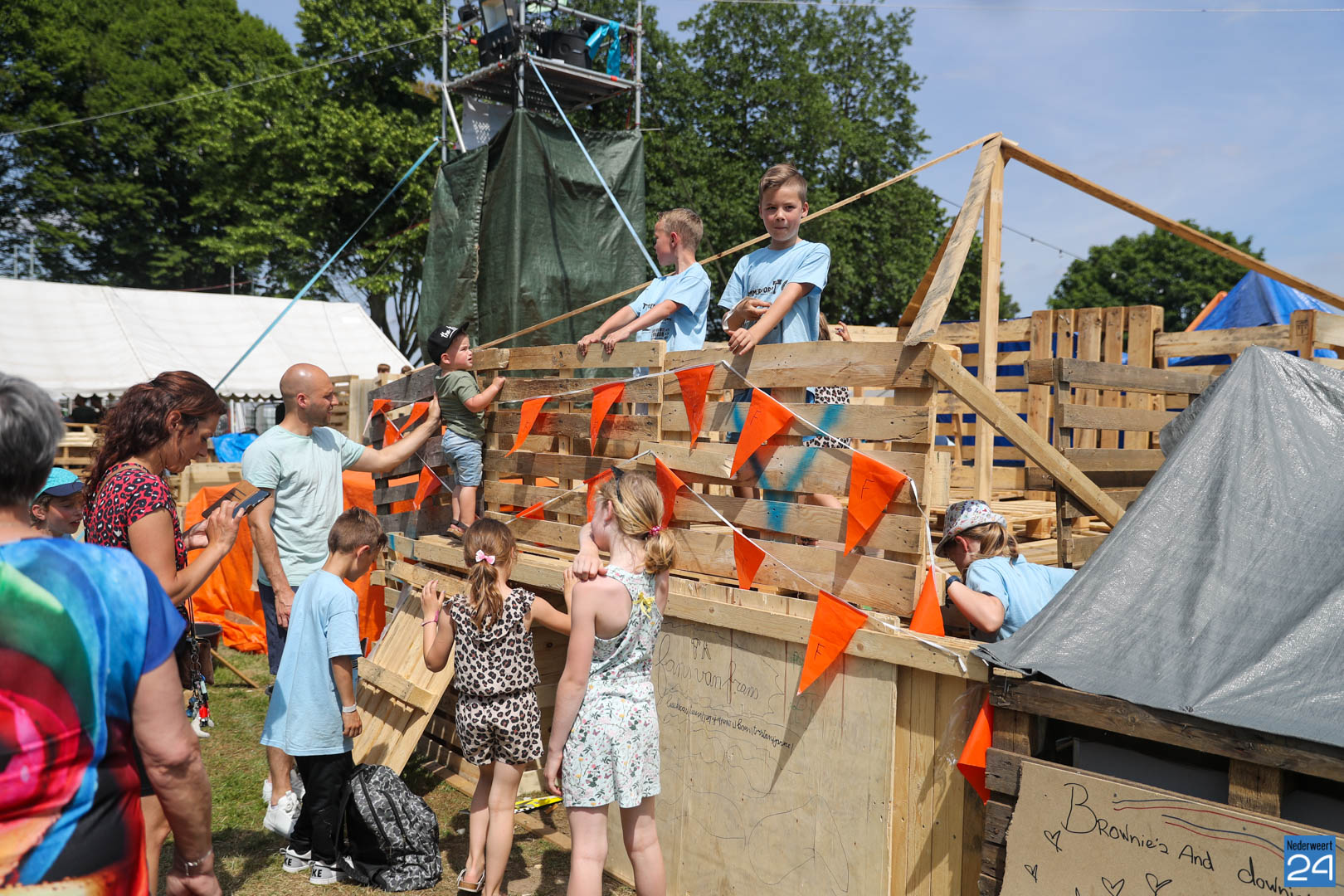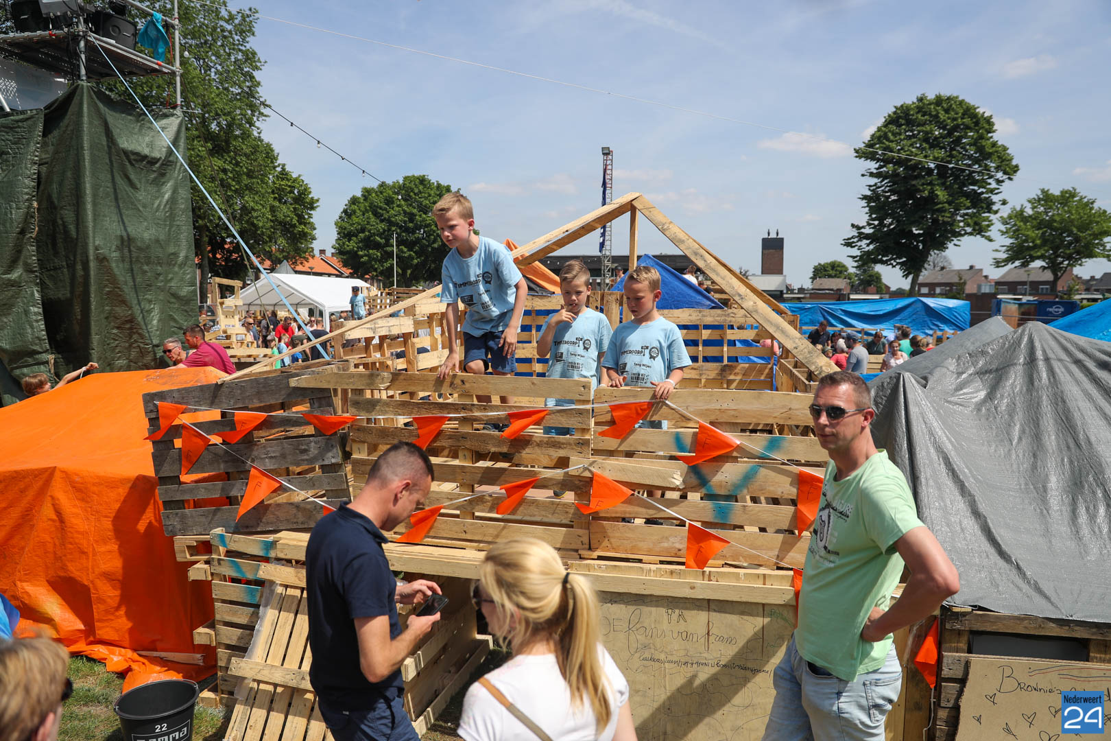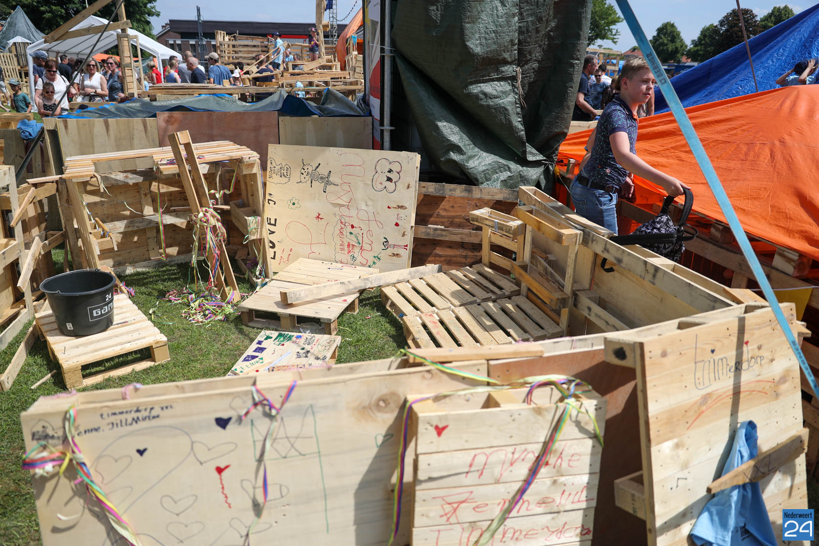 Zaterdagmiddag was de open dag van het jaarlijkse Timmerdorp XXL georganiseerd door Jong Nederland Budschop. Broertjes, zusjes, papa’s, mama’s, opa’s en oma’s kwamen kijken naar de zelfgebouwde ‘woningen’. Een hoogte punt voor de timmerlieden die maar wat trots hun bouwwerken lieten zien.