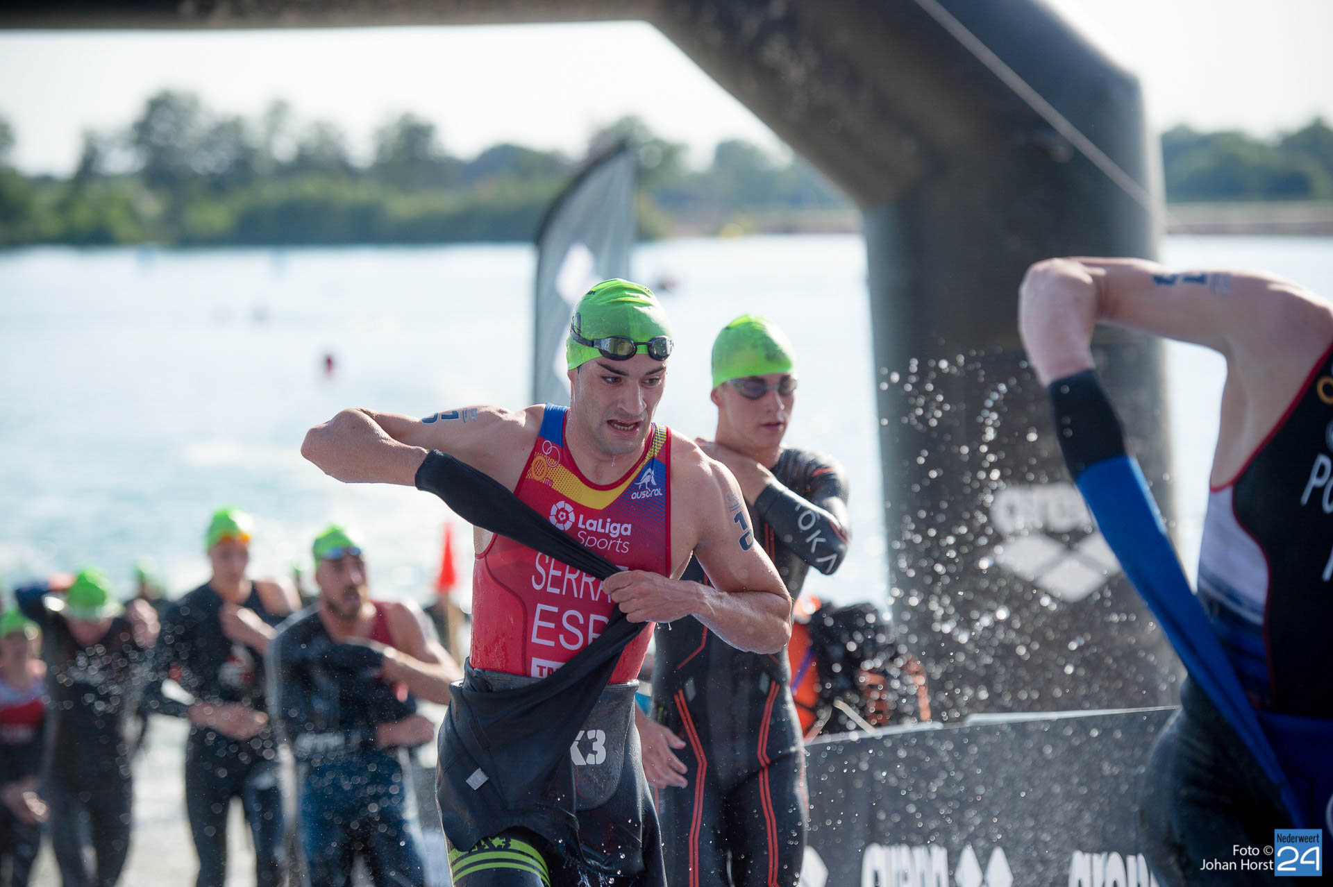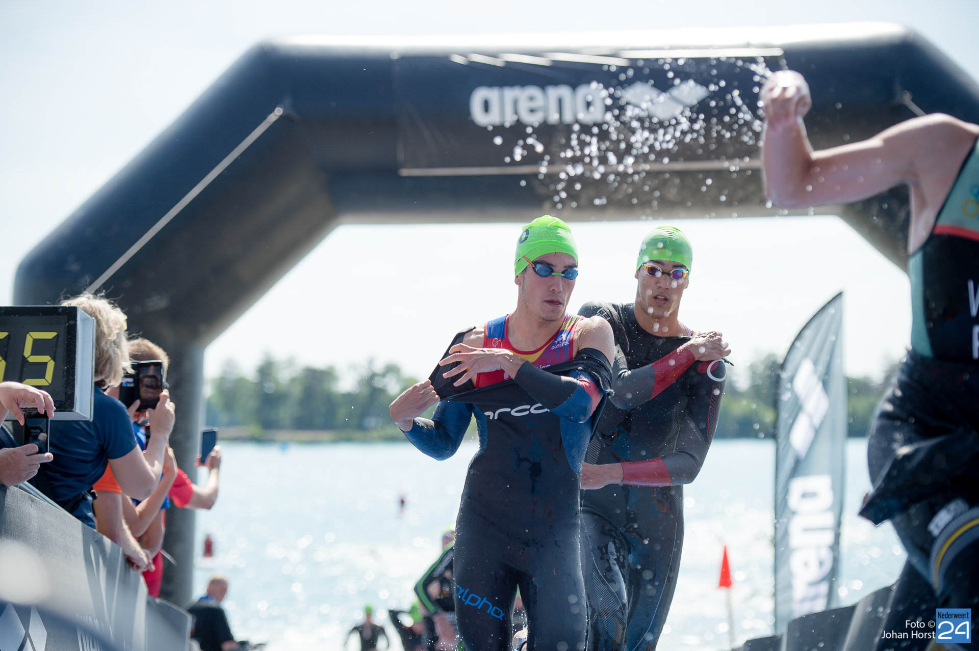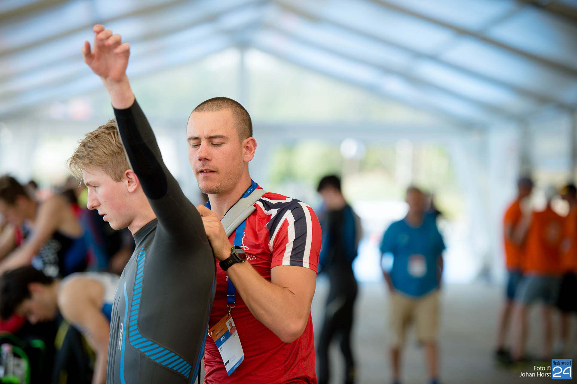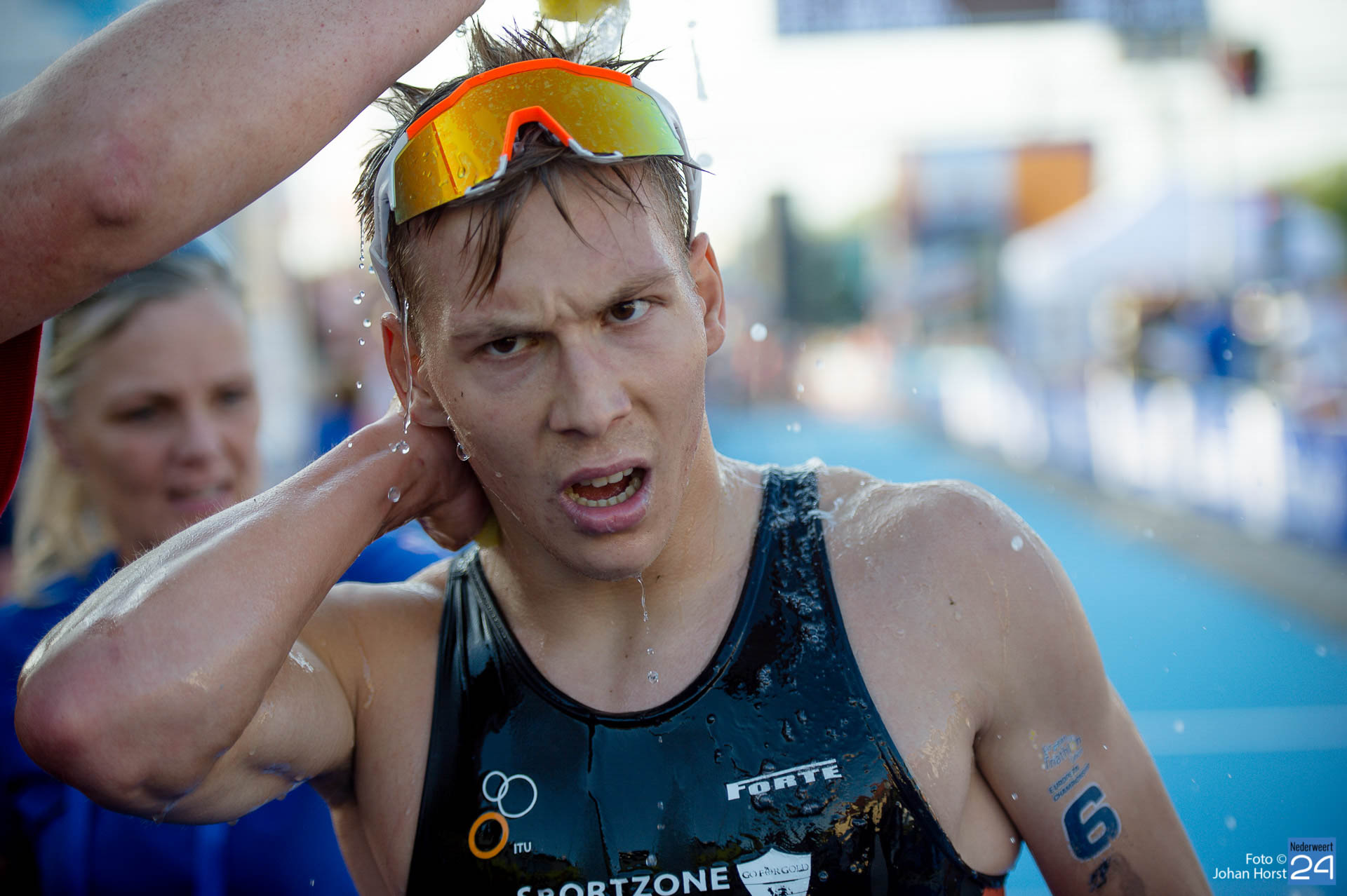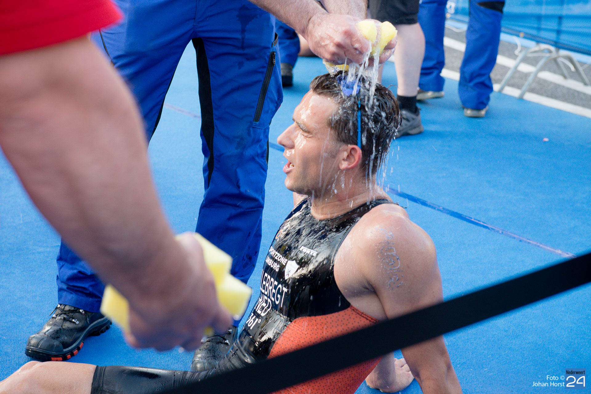 Vanwege het warme weer worden er vandaag, zondag 2 juni, tijdens het EK triathlon extra maatregelen getroffen voor atleten, vrijwilligers en bezoekers. Zo is er speciaal voor de bezoekers een zonnebrand insmeerbar en een watertappunt ingericht.
