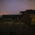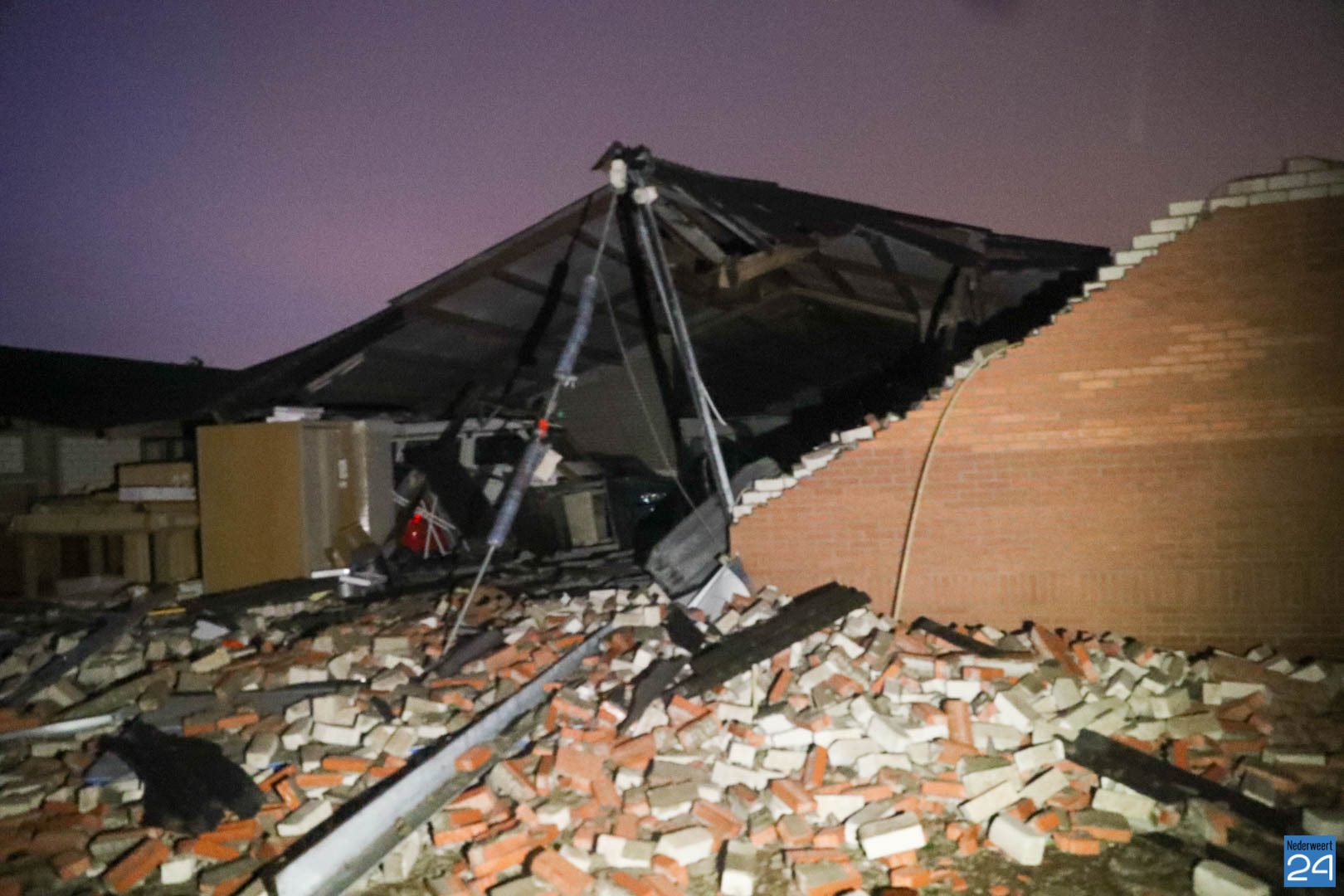 Door de storm is een gevel van een caravanstalling volledig ingestort. De stal, die gebruikt werd als caravanstalling, stond bij een woning aan De Riet. De schade aan de stal én de caravans is zo laat op de avond nog niet te overzien.