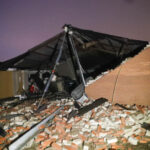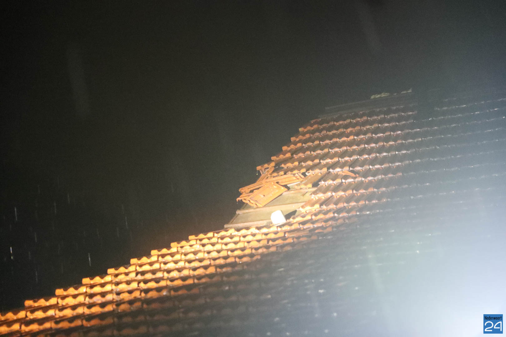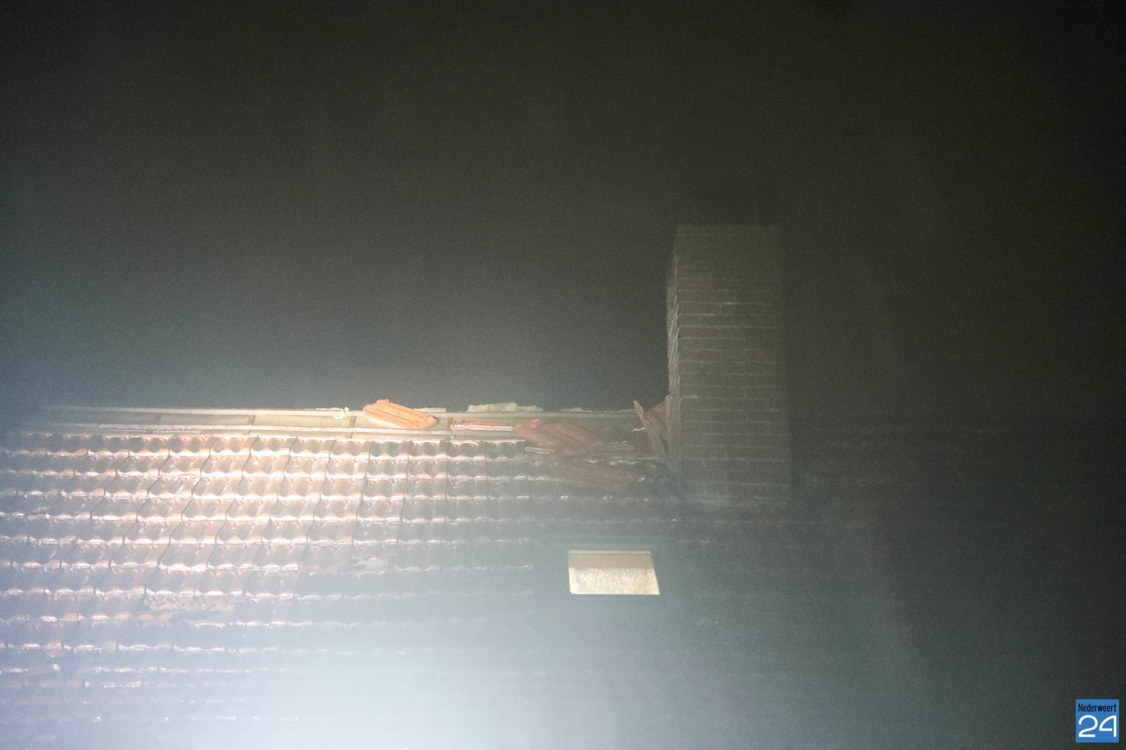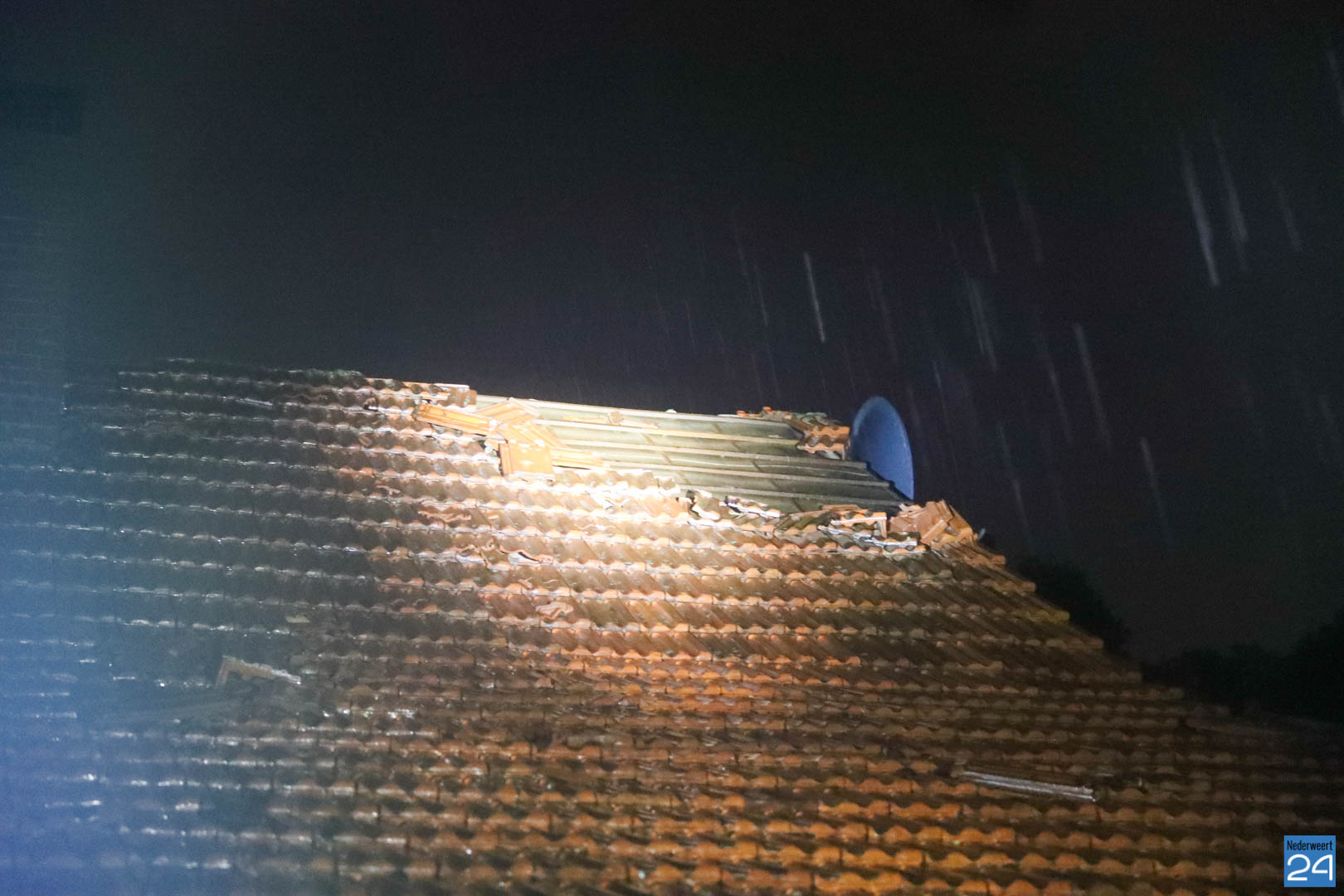 De storm heeft dinsdagavond flink huisgehouden op De Riet in Nederweert-Eind. Dakpannen van een woonhuis vlogen in de rondte, flinke takken waaide over de weg en de wind kreeg grip op de gevel van een caravanstalling.
