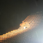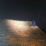 Aan de overkant van de straat waren flink wat dakpannen van een woning gewaaid tijdens de storm. Vooral aan de achterkant was er flink wat schade.
