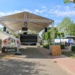 De exploitanten en horecamedewerkers waren vrijdagmorgen al op het terrein aanwezig om de laatste voorbereidingen te treffen. Het was deze morgen nog stil in het dorp, maar een groot podium staat klaar om daar later op de dag verandering in te brengen.