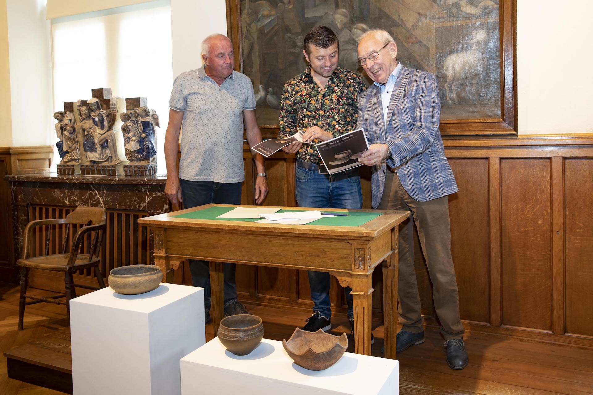Wethouder Gabriëls heeft op donderdag 6 juni drie bijzondere archeologische vondsten in ontvangst genomen. Het gaat om een Kerbschnitt urn, een lappenschaal en een kom uit de late bronstijd (circa 800 voor Christus) die door de heer Feiter zijn gevonden op de Boshoverheide. Ze waren door hem geschonken aan de Stichting Streekarcheologie Peel, Maas & Kempen. De stichting heeft de objecten de afgelopen jaren professioneel laten restaureren. In goed overleg is besloten om de gerestaureerde objecten over te dragen aan het Gemeentemuseum Weert.