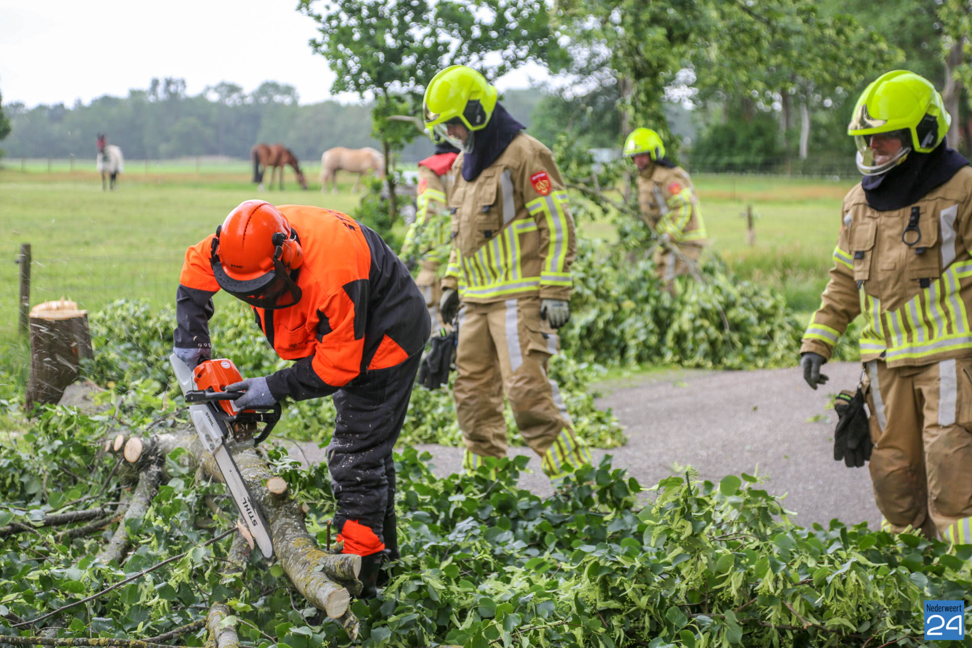 Omgewaaide boom blokkeert straat