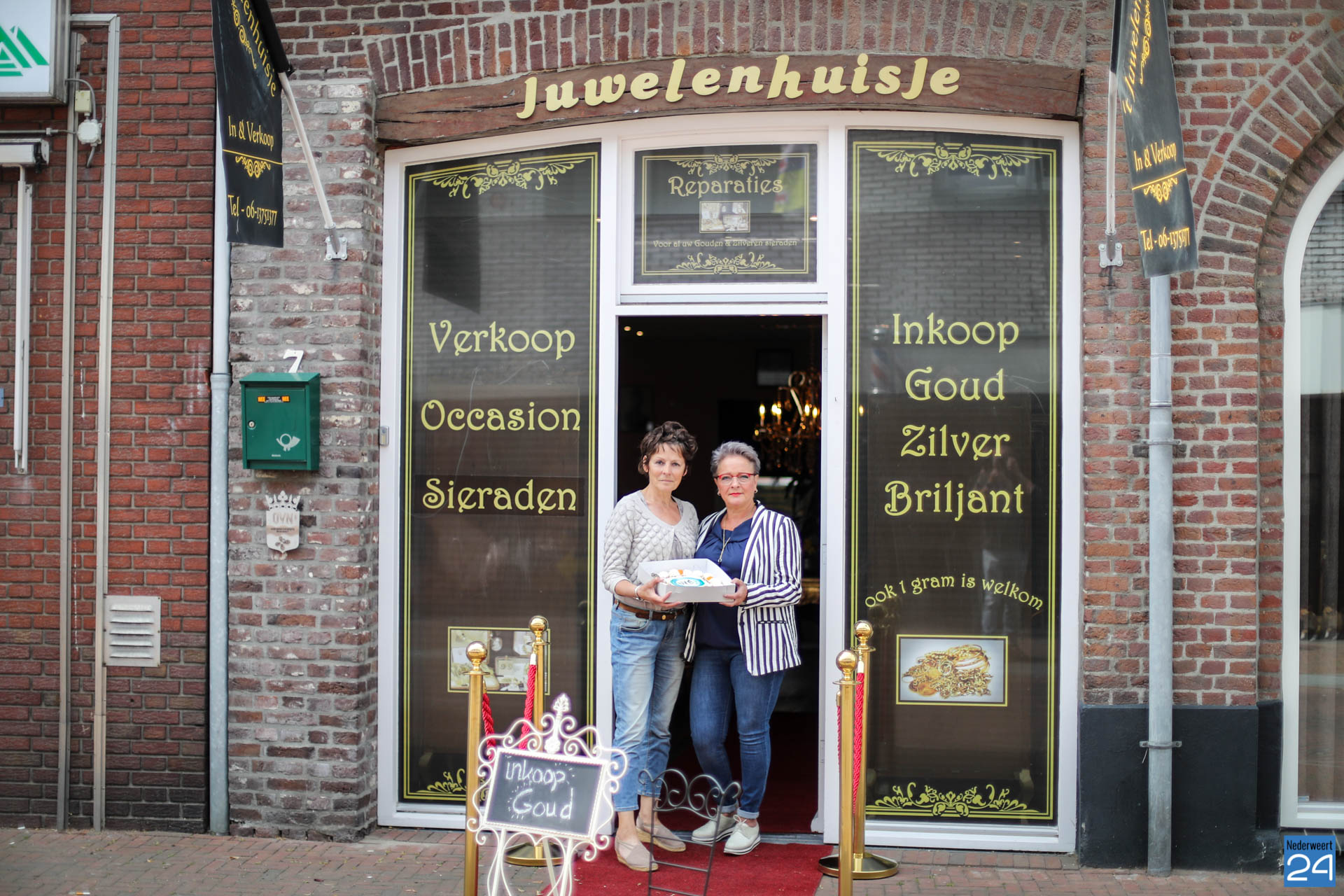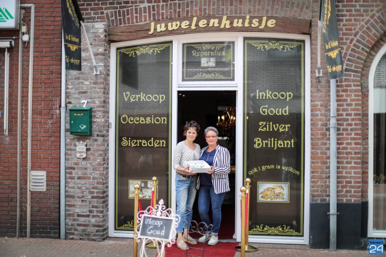 ’t Juwelenhuisje uit Nederweert is het jongste lid van de Ondernemers Vereniging Nederweert (OVN). Speciaal voor deze gelegenheid overhandigde Conny van Laer namens de OVN een taart van bakkerij Broekmans aan eigenaar Desiree Molenaar.
