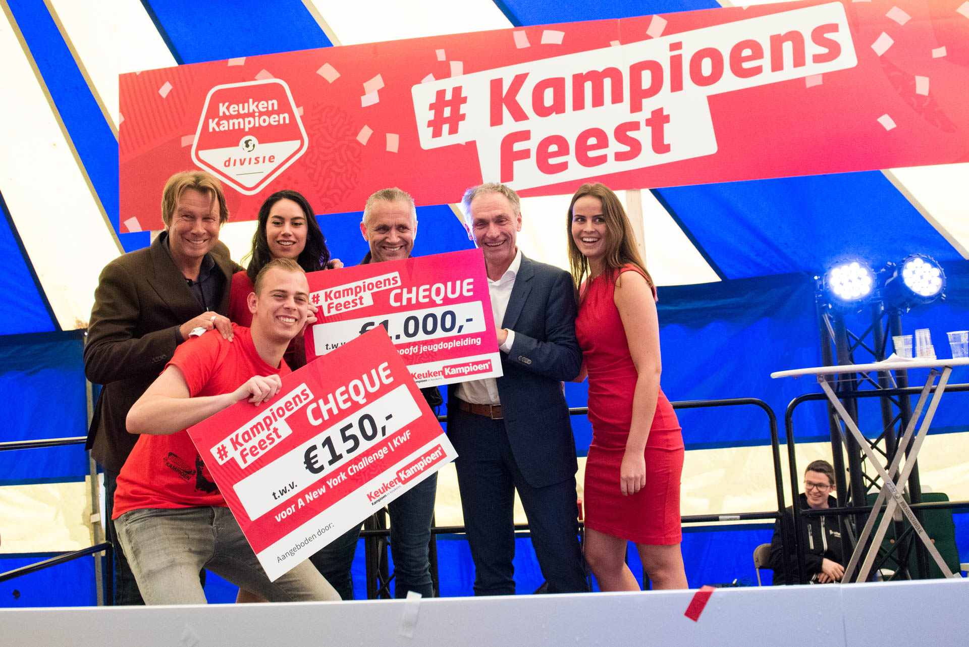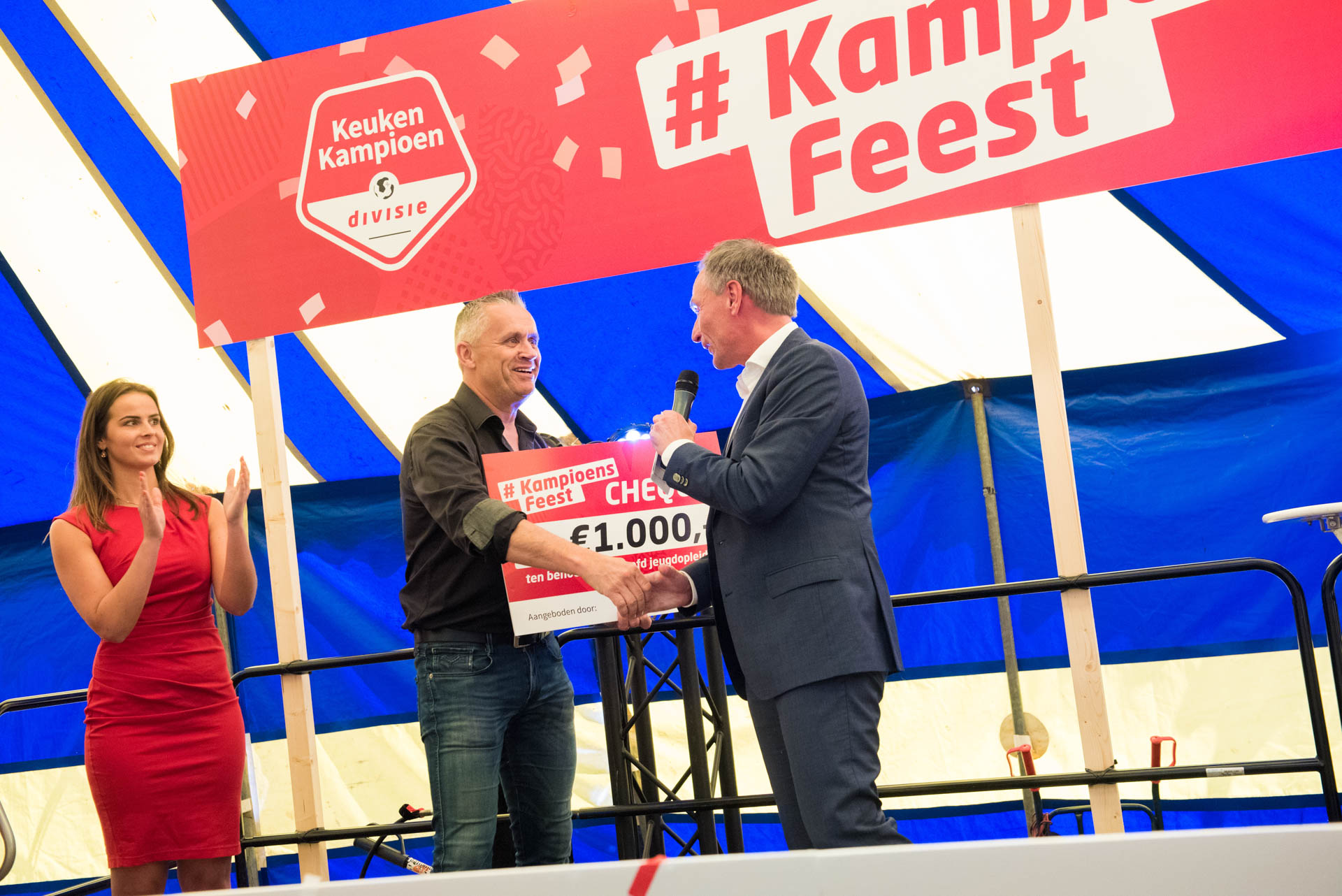 Toen de kampioenen door de erehaag heen waren, werd het team op het podium door Hans Kraay Jr toegesproken, die speciaal was overgekomen naar Weert. Als kers op de taart werd er een Kampioensschild uitgereikt door directeur Keuken Kampioen Divisie, Marc Boele. Tot slot barste het feest in de tent los, waar de 300 aanwezigen een optreden kregen van Wolter Kroes en SLAM!-DJ Tom van de Weerd.