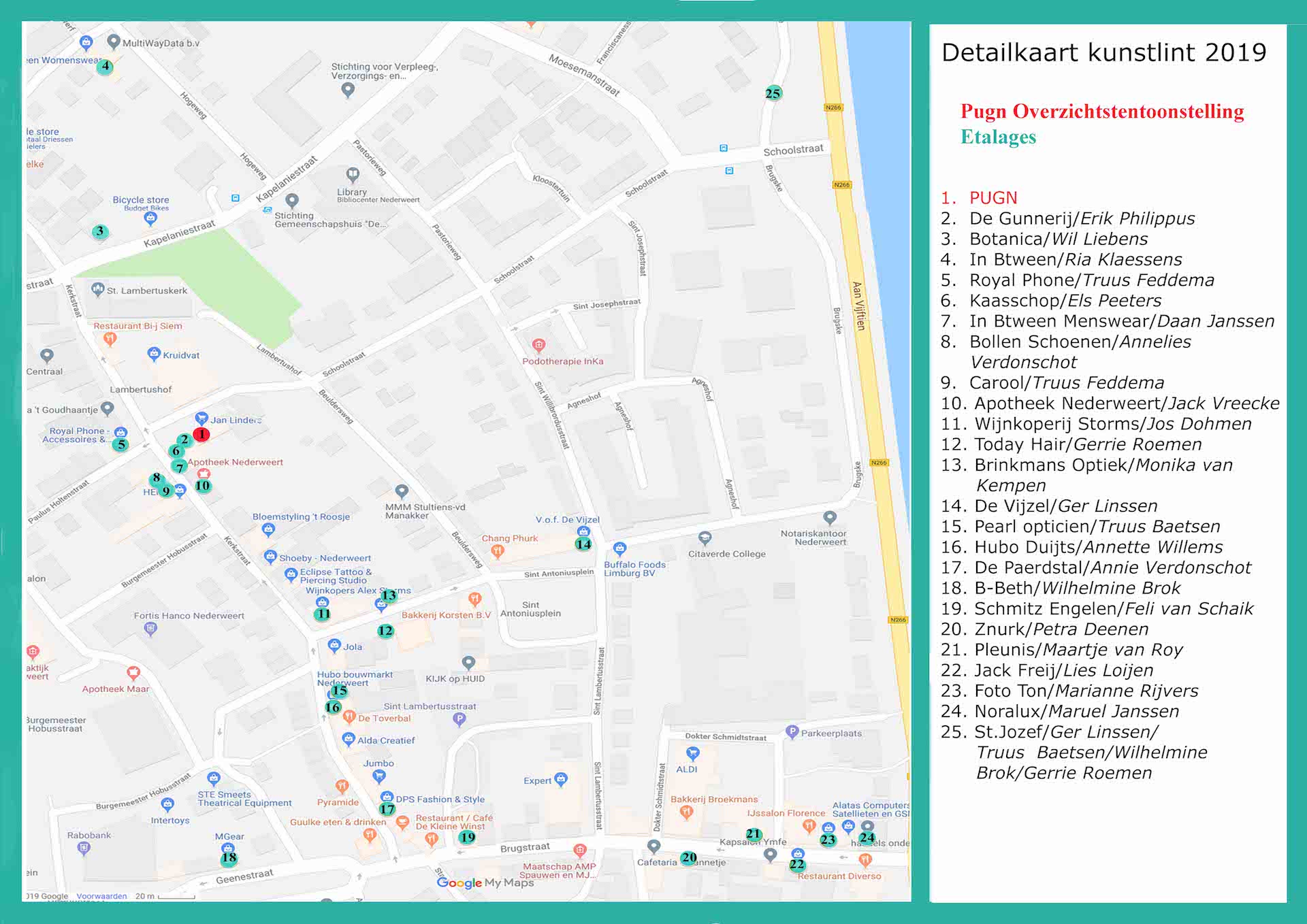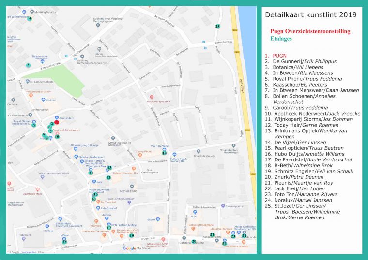 Vele etalages van de winkeliers zijn gedurende drie weken, van 16 juni tot 6 juli, omgetoverd tot expositie-ruimte, evenals het gebouw van het verzorgingshuis St Josef, waar gedurende die zelfde periode ook vele kunstwerken staan opgesteld.