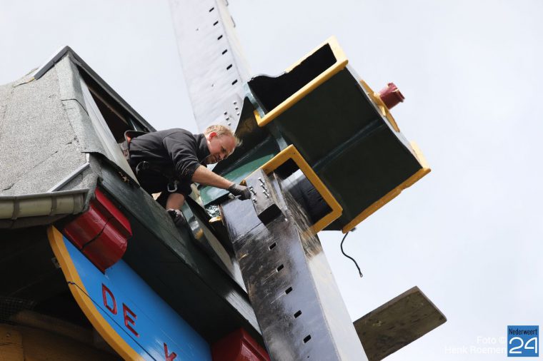 Op maandag 6 mei zijn de wieken tot op de roeden “kaal gemaakt”. Vervolgens volgde op woensdag 8 mei het demonteren van de wieken. Dit gebeurde met een grote kraan. De wieken zijn naar Adriaans Molenbouw te Weert gebracht waar het houtwerk van de wieken werd vernieuwd. Het “van Bussel” systeem wordt momenteel vernieuwd. Dit systeem is de zinkenopbouw aan de voorkant van de wieken. Door dit systeem is de wiek meer gestroomlijnd en “duwt” de wind de wieken beter rond.