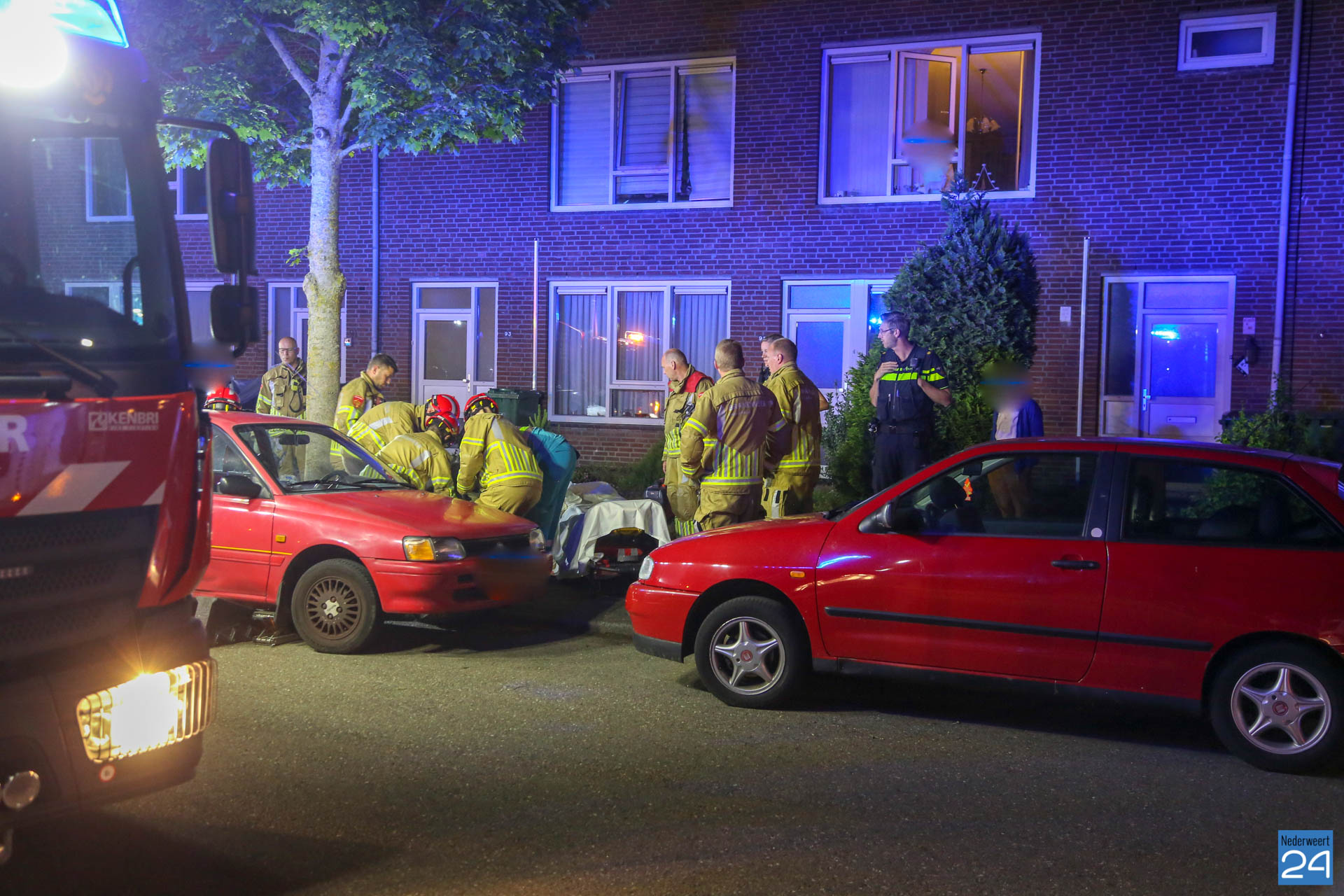 De brandweer heeft het slachtoffer onder de auto vandaan gehaald. Hij raakte zover bekend lichtgewond en is ter controle overgebracht naar het ziekenhuis.