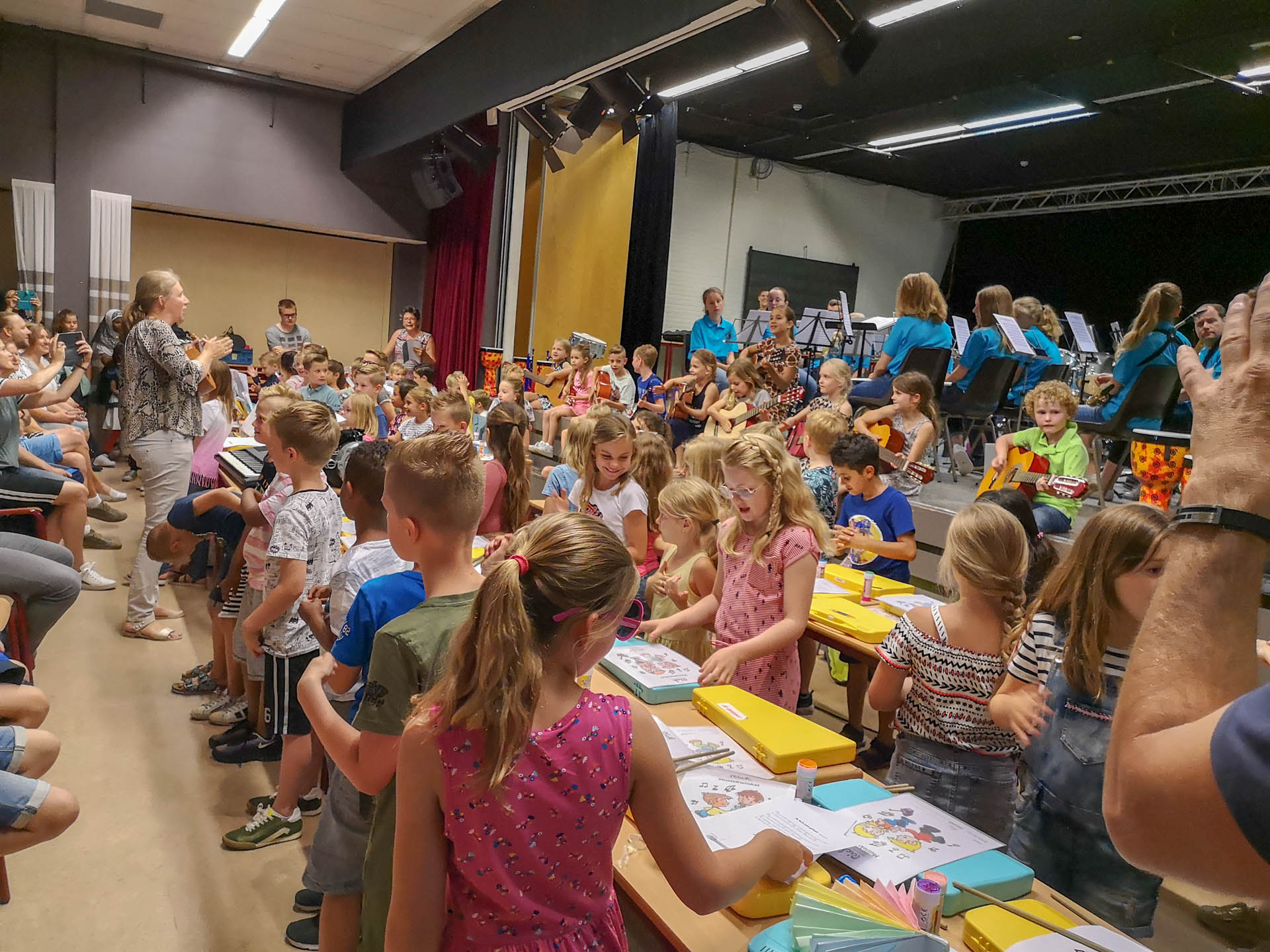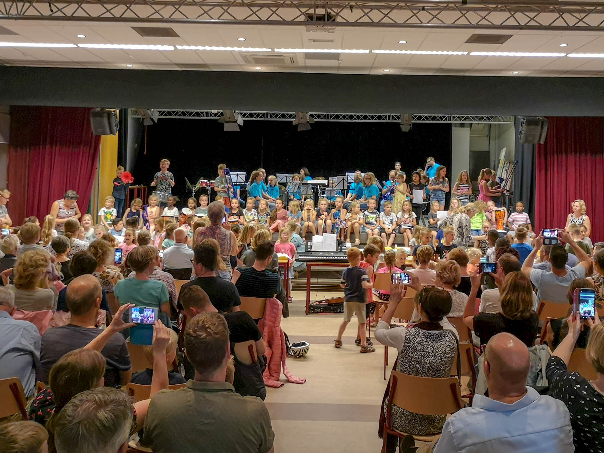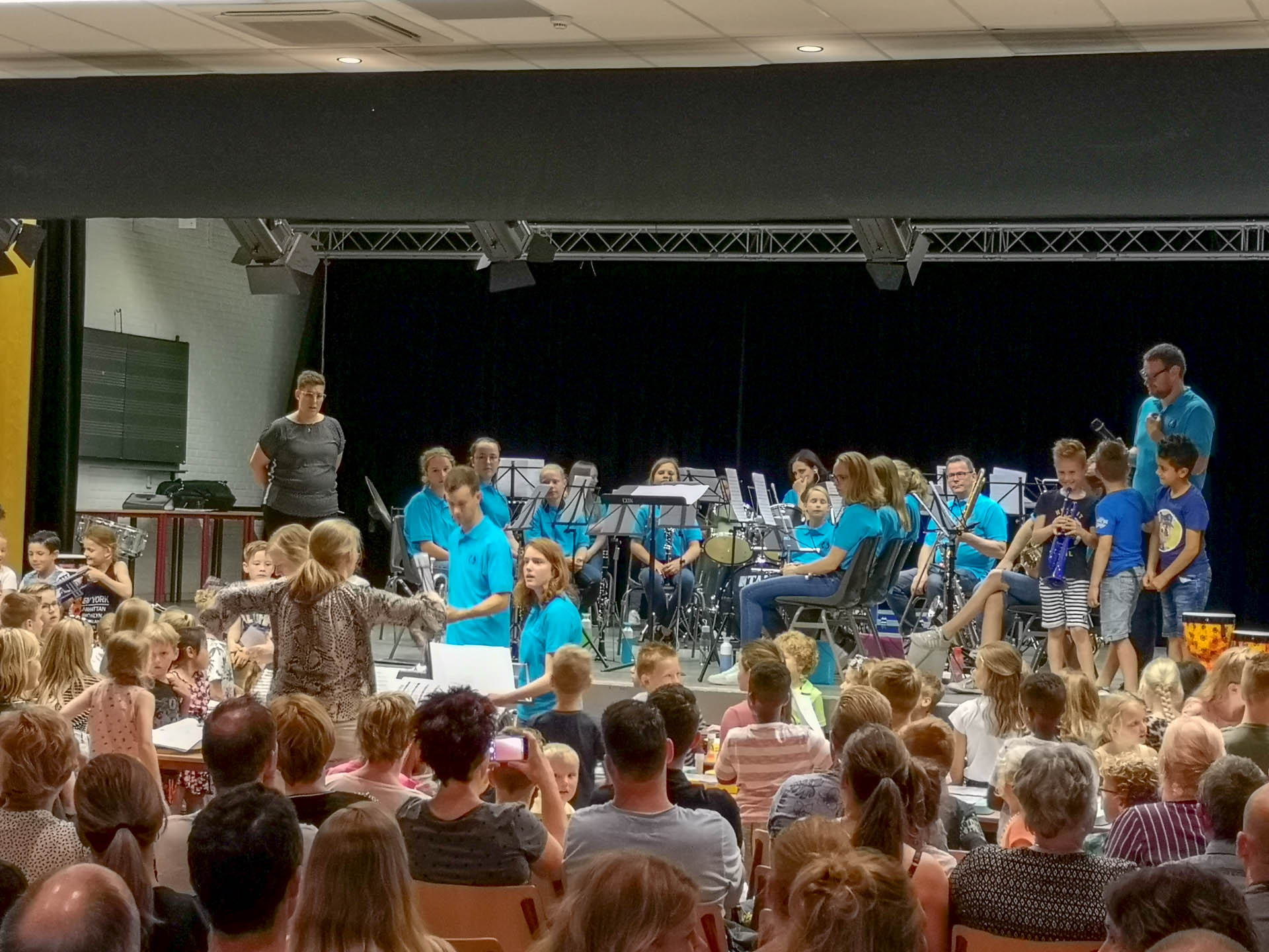 Het afgelopen jaar hebben de leerlingen van groep 3/4 van de basisscholen van Nederweert iedere week muziekles gehad. Deze lessen werden verzorgd door het RICK in samenwerking met de basisscholen en harmonie St. Joseph Nederweert. Op donderdagavond hebben zij de einduitvoering hiervan gegeven. De leerlingen hebben samen met de jeugdharmonie laten horen wat zij het afgelopen jaar hebben geleerd. Het was een leuk en spetterend optreden waarbij verschillende facetten van muziek werden getoond, zoals zang, slagwerk en toeteren op zelfgemaakte trompetten.