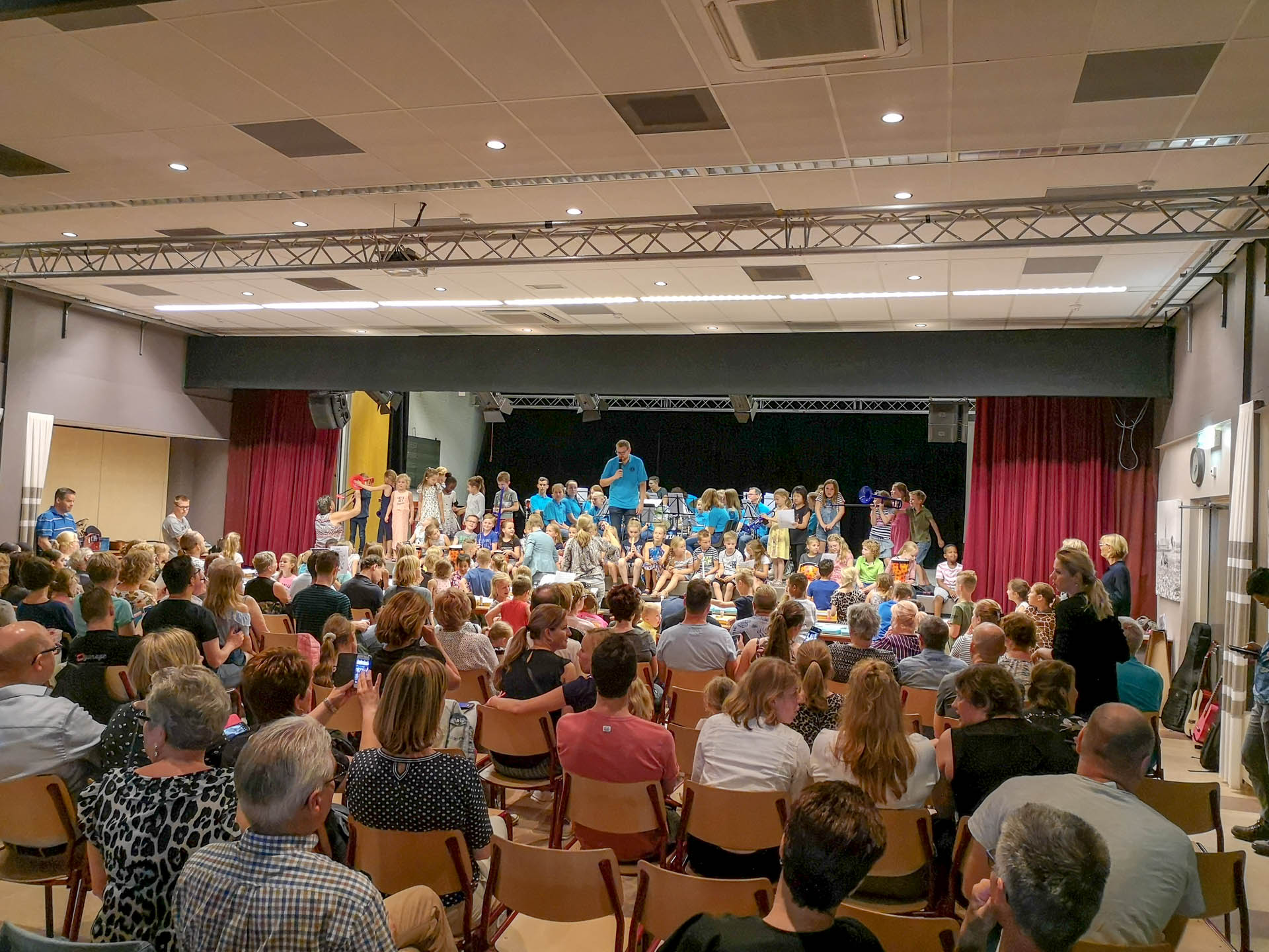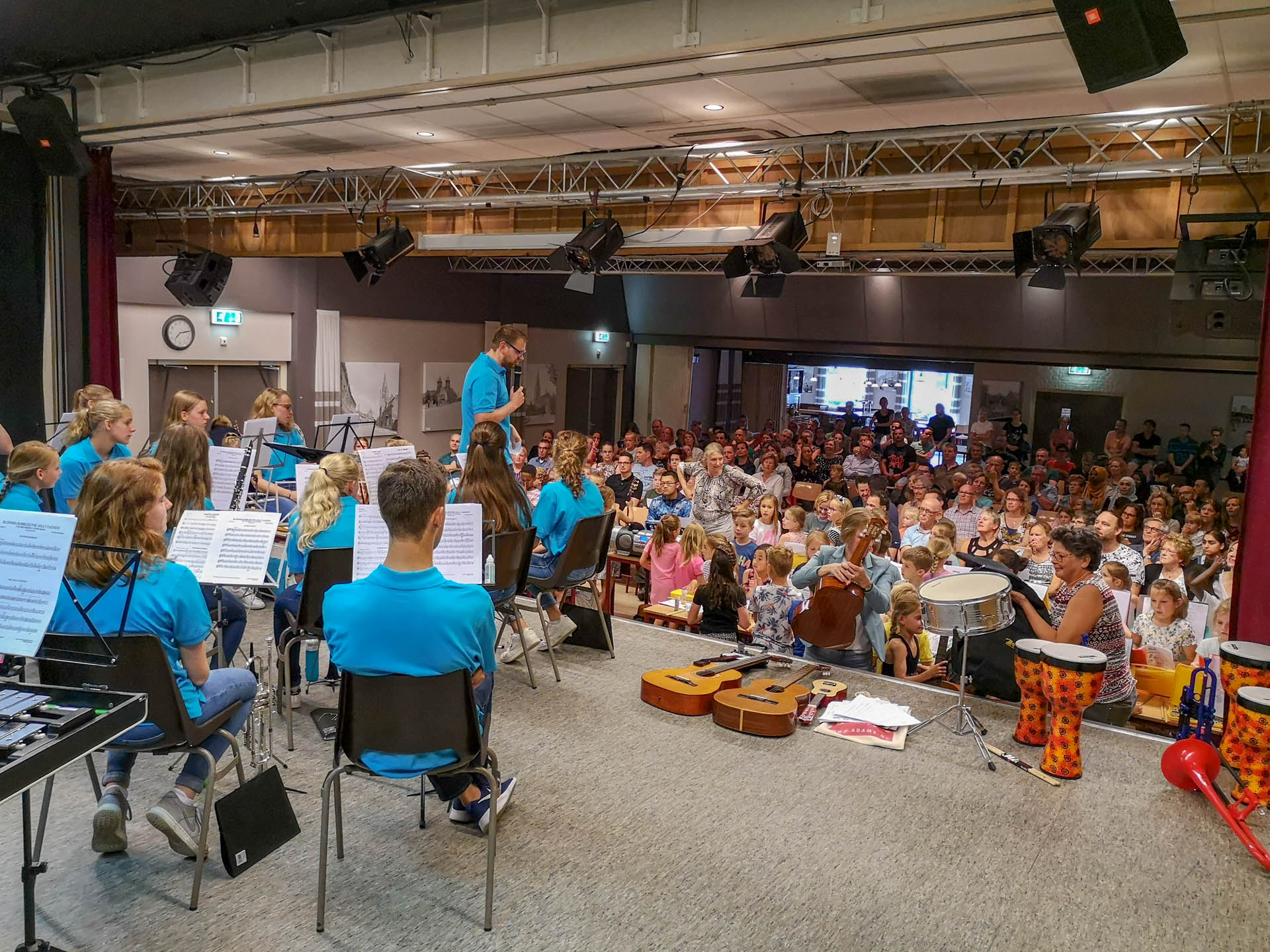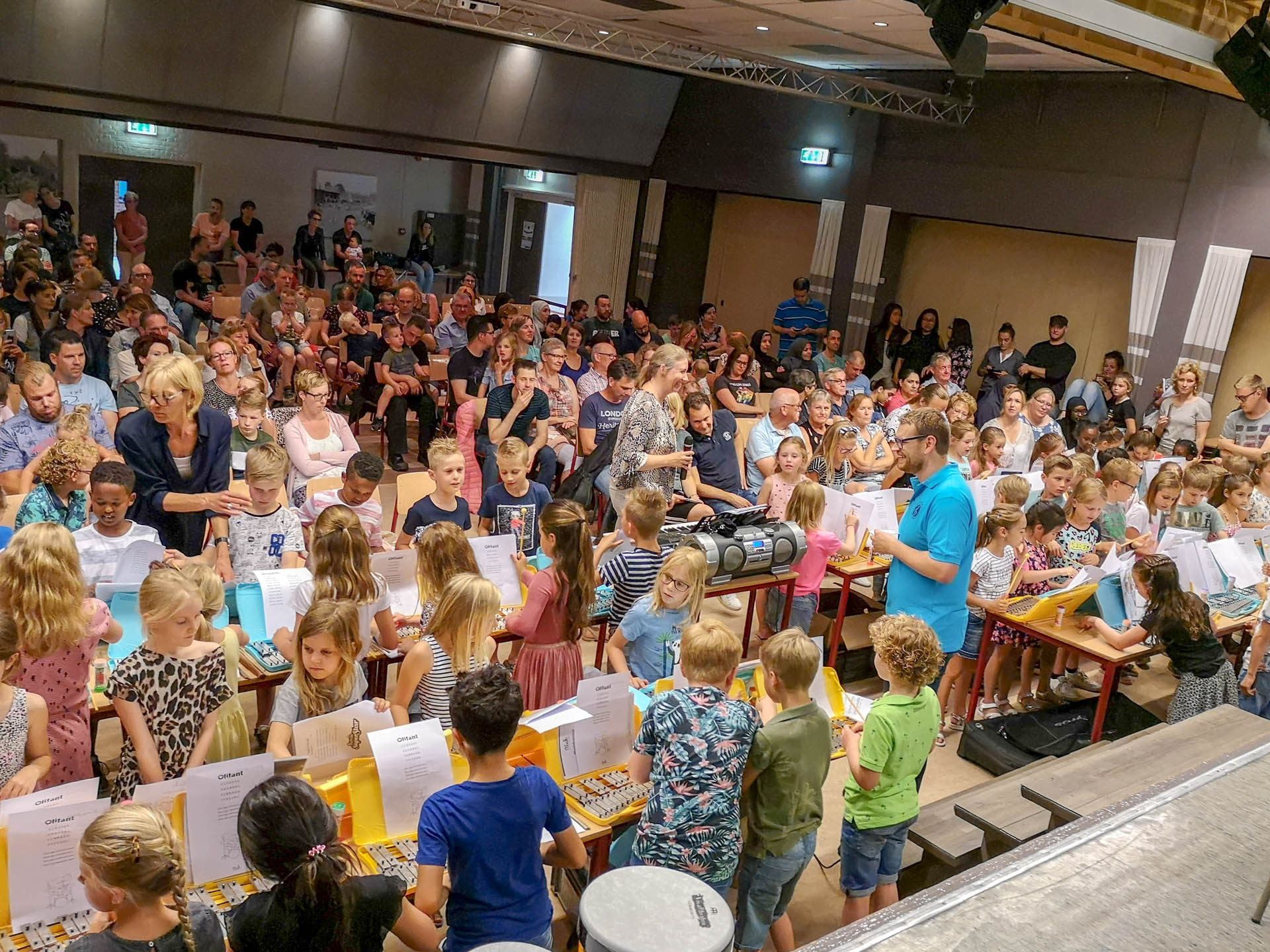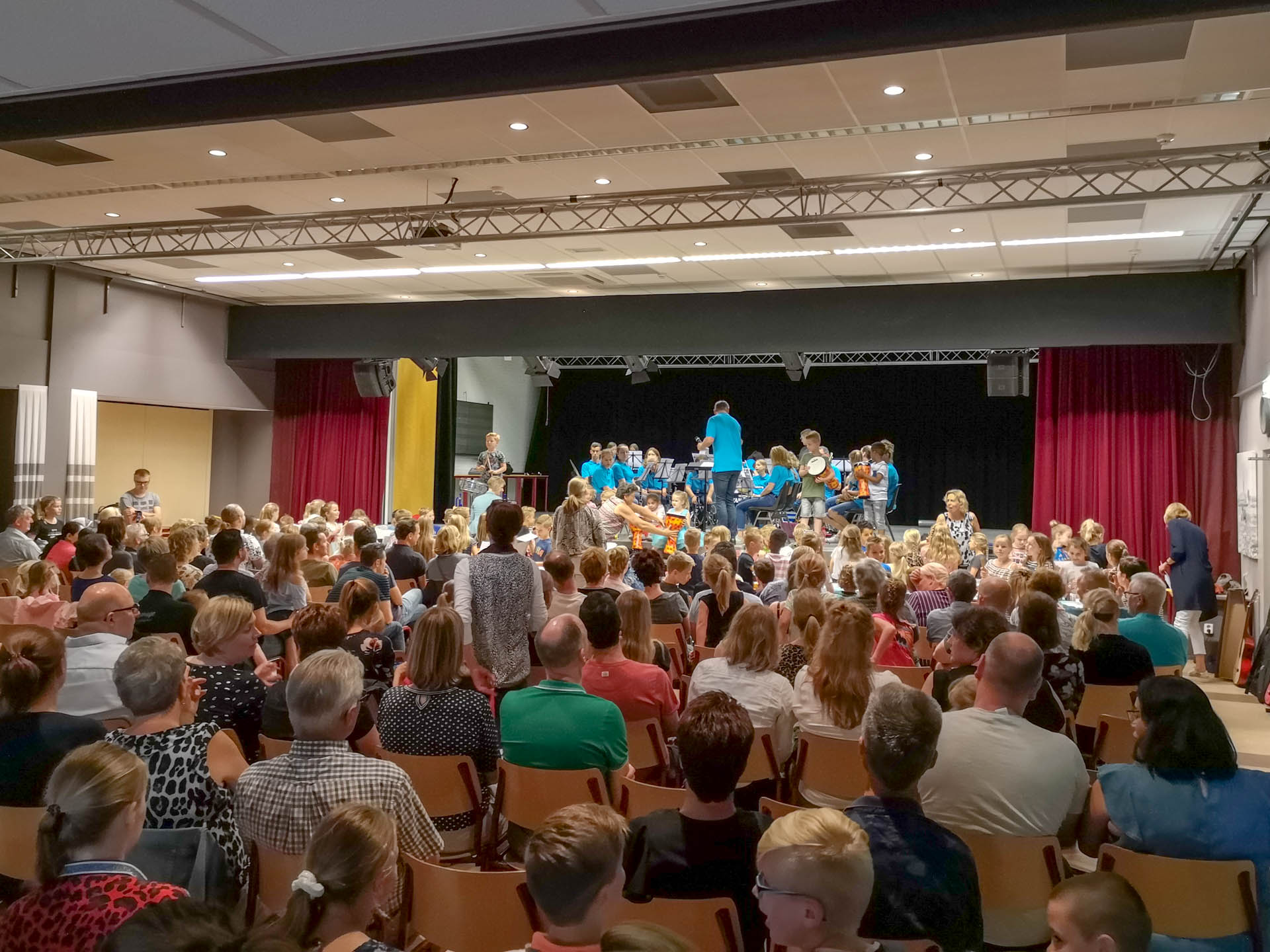 Het afgelopen jaar hebben de leerlingen van groep 3/4 van de basisscholen van Nederweert iedere week muziekles gehad. Deze lessen werden verzorgd door het RICK in samenwerking met de basisscholen en harmonie St. Joseph Nederweert. Op donderdagavond hebben zij de einduitvoering hiervan gegeven. De leerlingen hebben samen met de jeugdharmonie laten horen wat zij het afgelopen jaar hebben geleerd. Het was een leuk en spetterend optreden waarbij verschillende facetten van muziek werden getoond, zoals zang, slagwerk en toeteren op zelfgemaakte trompetten.