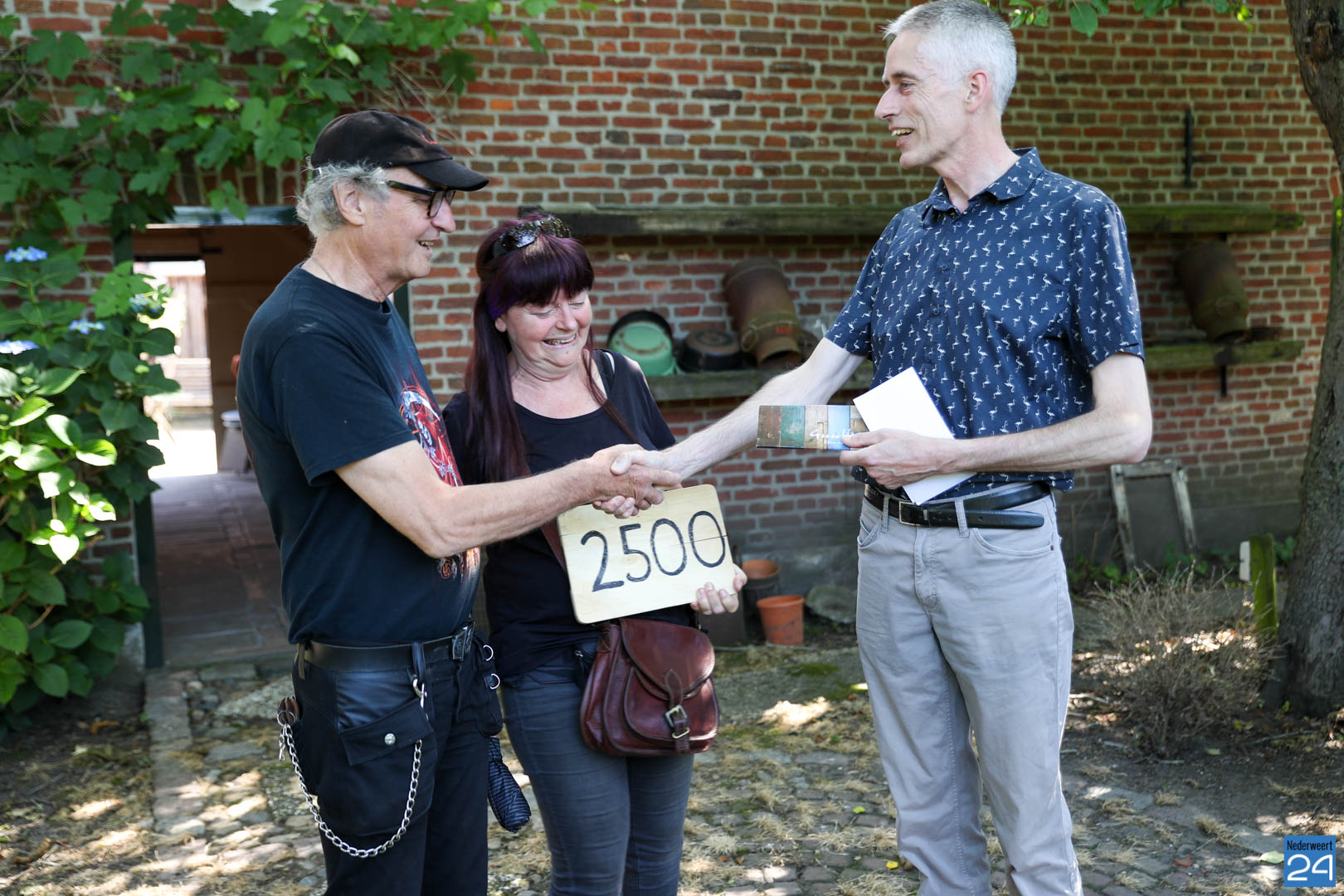 De 2500e deelnemer aan de rondleiding was mw. Janssen-Sieben. Zij en haar partner kregen uit handen van gids Alfons Bruekers van de Stichting Geschiedschrijving Nederweert namens Guulke Eten&Drinken een dinerbon voor twee personen uitgereikt. Dat gebeurde in de schaduwrijke tuin van het rijksmonument van Thea Bongers in de Kerkstraat. Beide gelukkigen waren aangenaam verrast met het cadeau. Zij gaven aan dat zo’n rondleiding eigenlijk een aanrader is voor élke Nederweertenaar en een aansporing is om zijn of haar dorp een keer met andere ogen te bekijken.