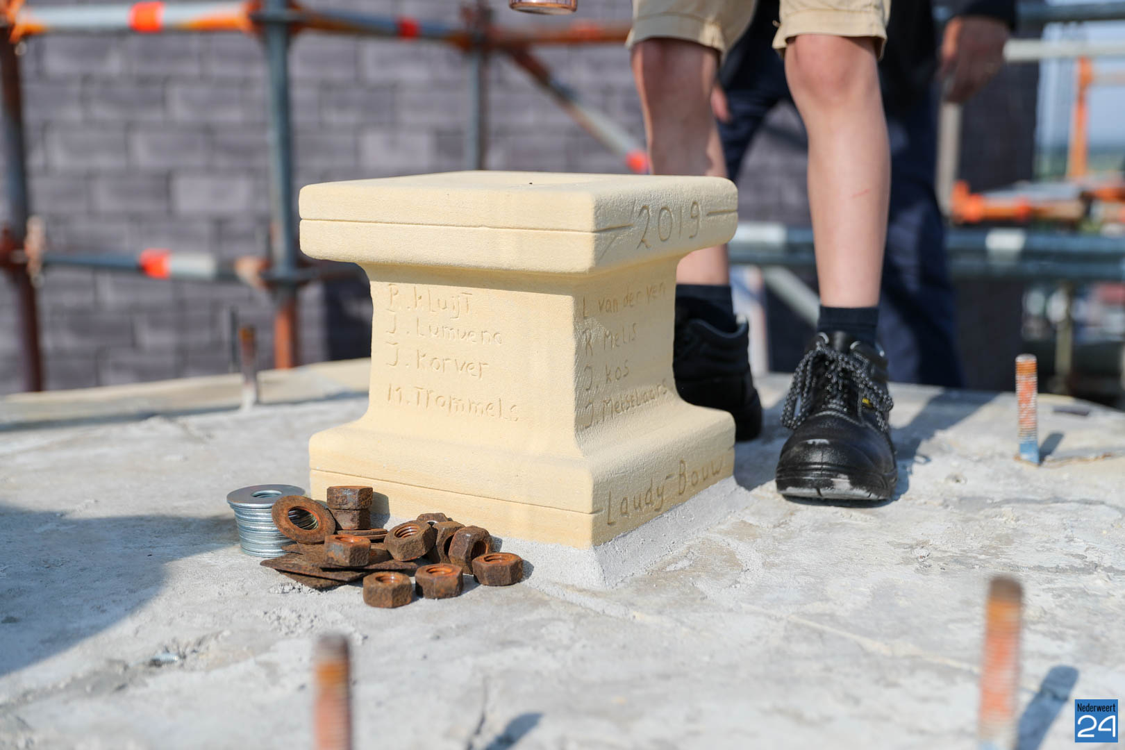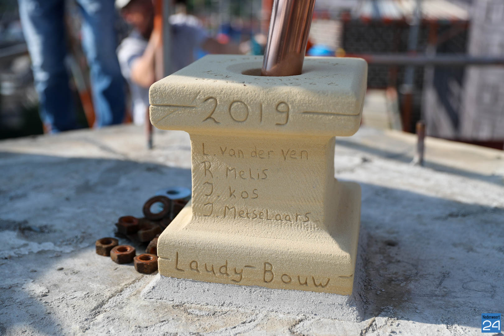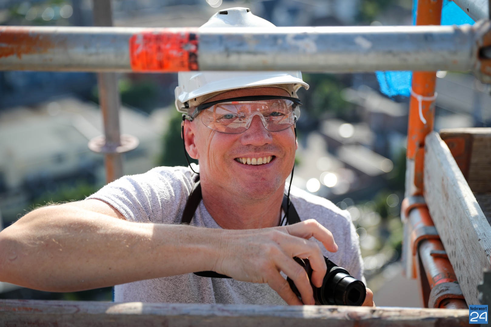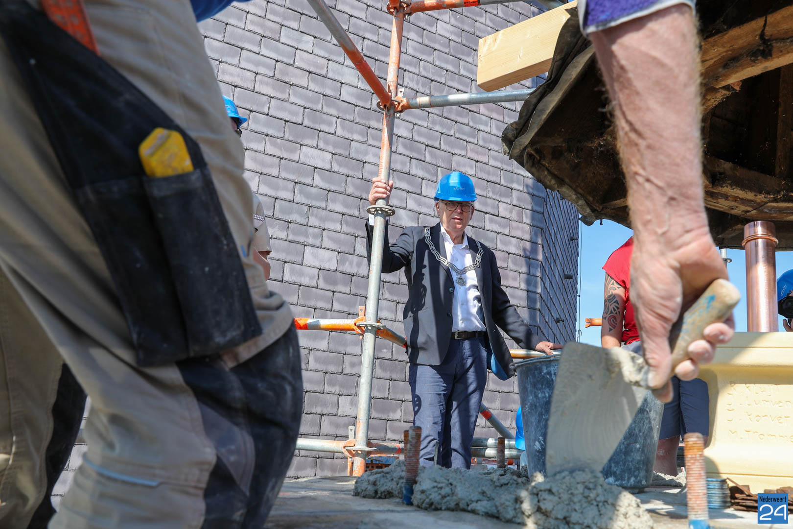 Sinds februari staat de Lambertustoren in Nederweert in de steigers voor een grote renovatie. Vanaf dat moment wordt er door aannemer Laudy ‘achter de schermen’ hard gewerkt. Een paar weken geleden werd de spits van een hoektorentje omlaag gehesen. Maandag werd het torentje terug op zijn plek gezet. Een bijzonder moment. Ook omdat burgemeester Evers en kleinzoon Duuk een zogenaamde tijdscapsule onder de hoekspits plaatsen met daarin een boodschap voor generaties die na ons komen.