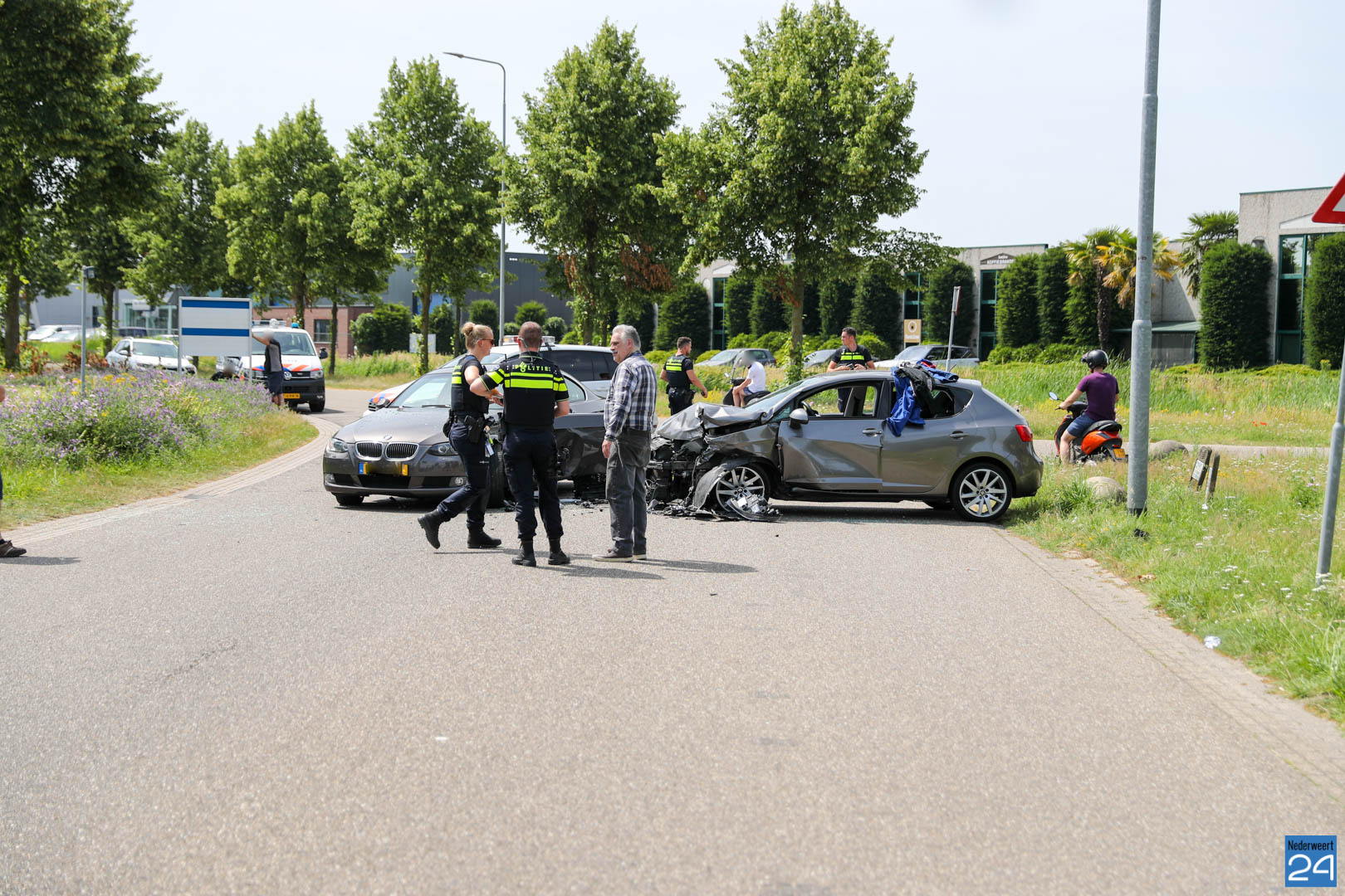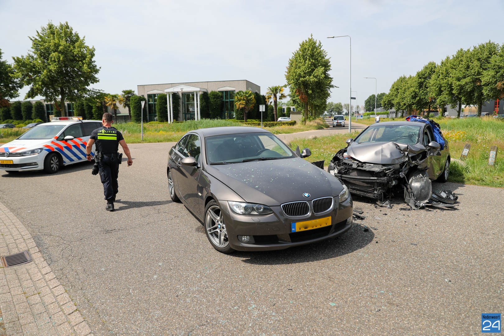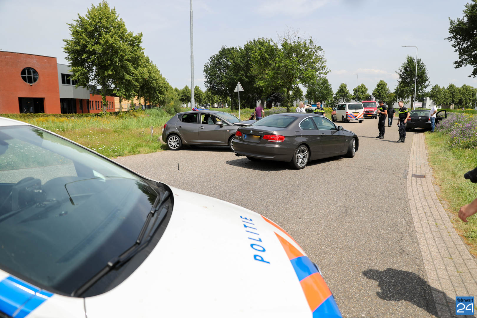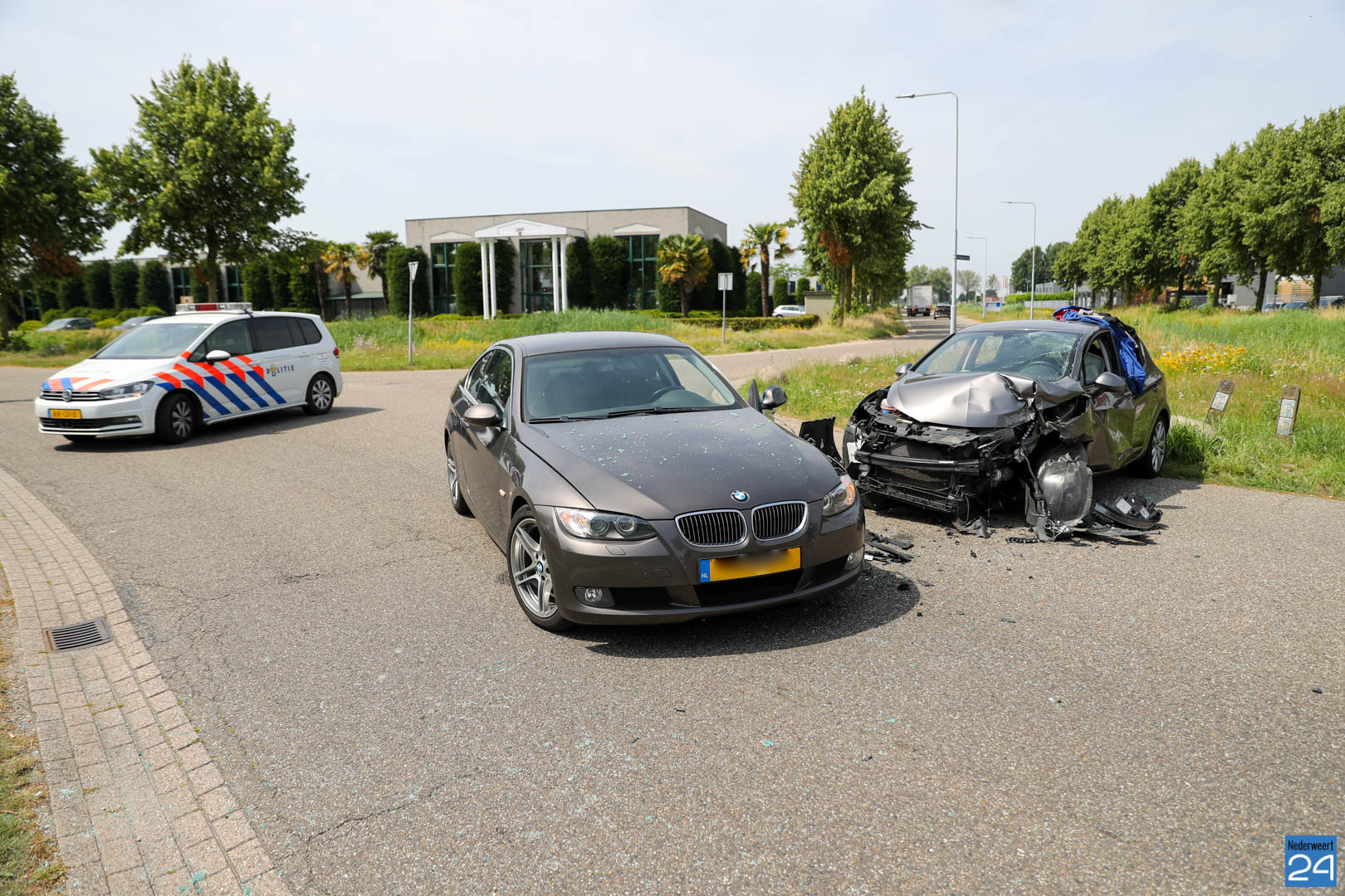Dinsdagmiddag zijn twee personenauto’s hard met elkaar in botsing gekomen op de kruising Edisonlaan met de Celsiusstraat op industrieterrein Kampershoek in Weert. Hierbij raakte één persoon gewond.