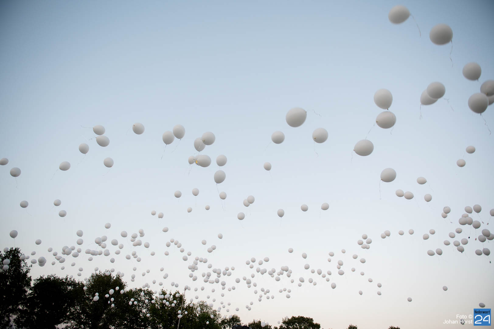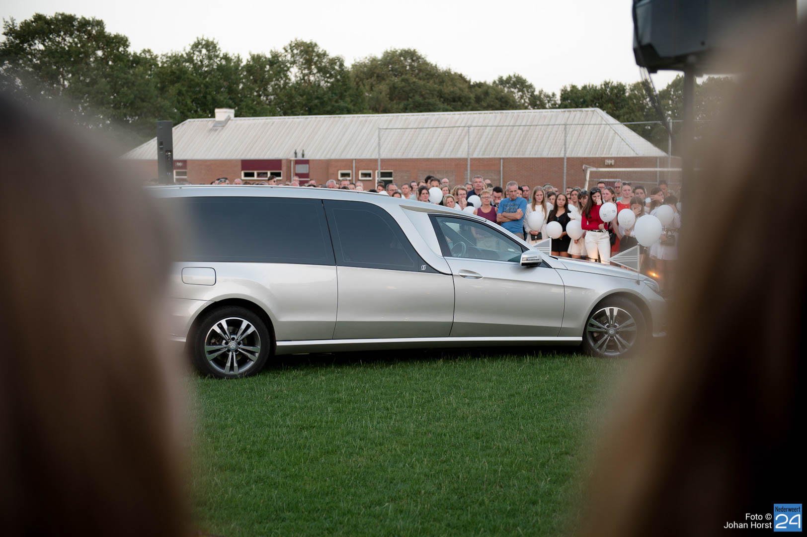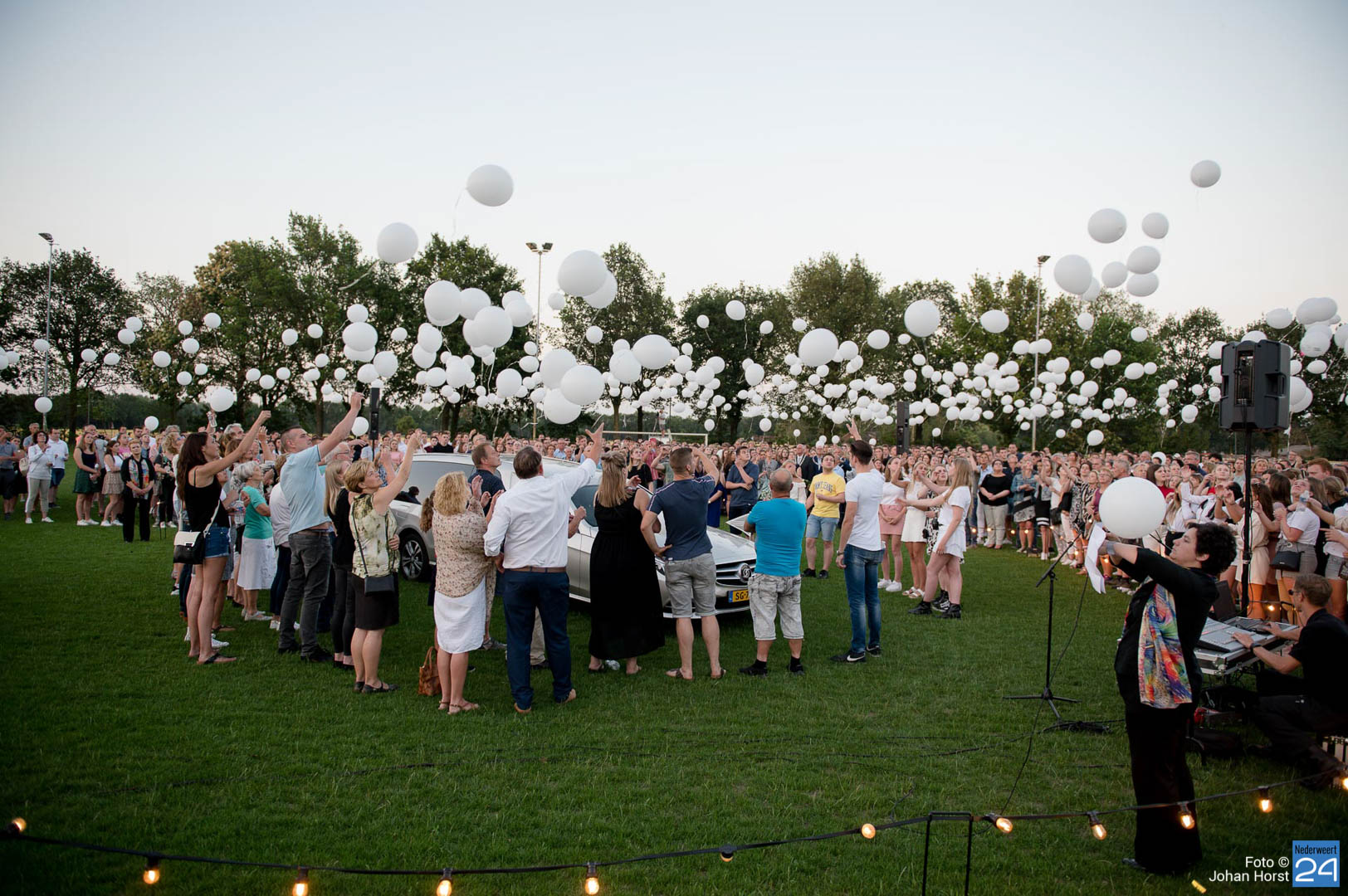Familie, vrienden, collega’s en kennissen verzamelden zich in een kring rondom de rouwauto waarna, met het nummer ‘Without You’, honderden ballonnen werden opgelaten. Ook de burgemeesters Heijmans van Weert, Evers van Nederweert en Verhoeven van Leudal waren aanwezig.