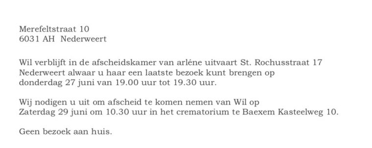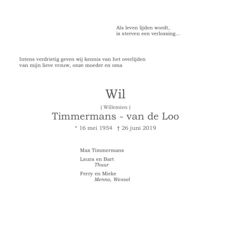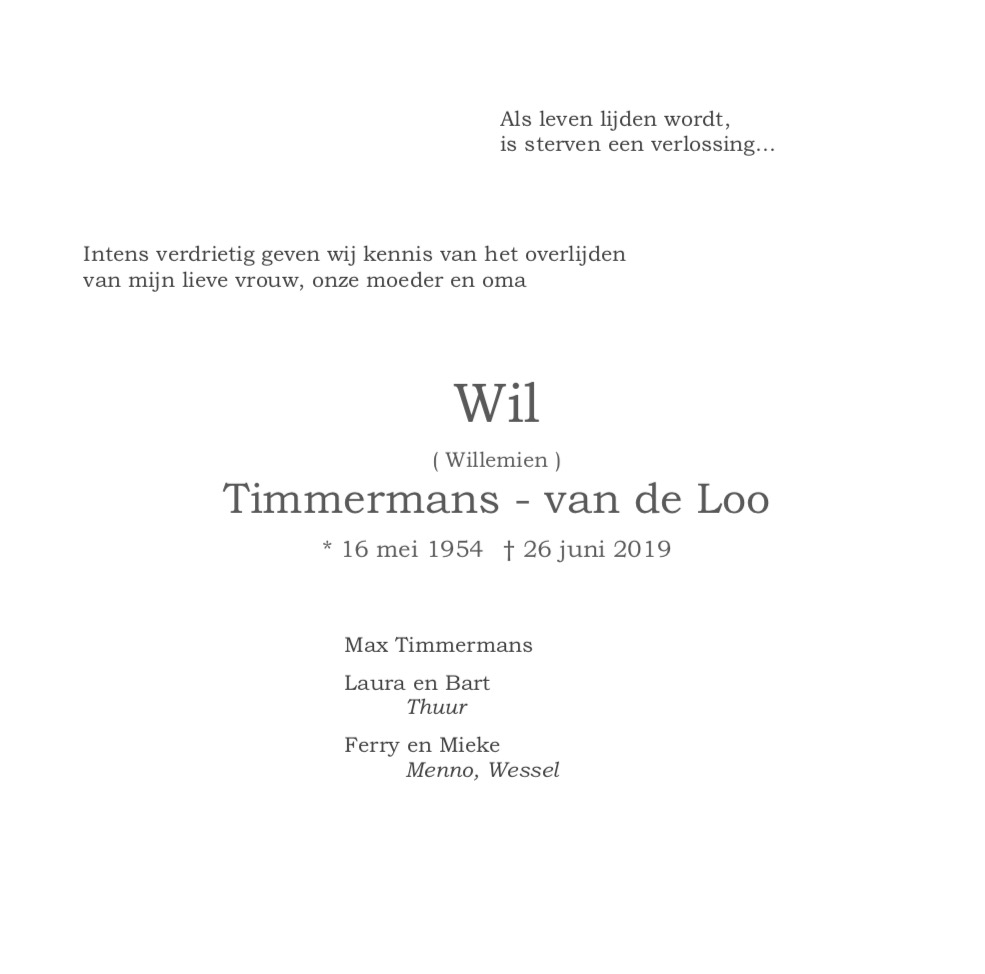 Overlijdensbericht: Wil Timmermans – van de Loo