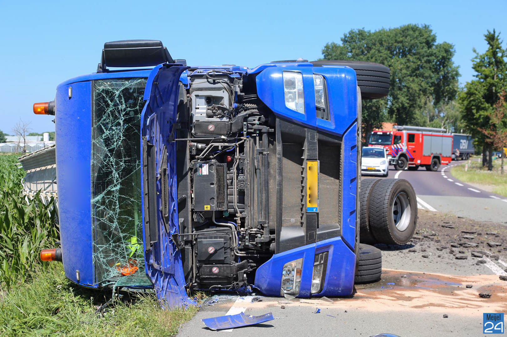 Vrijdagmiddag is een vrachtauto gekanteld op de Roggelsedijk (N279) in Meijel. Door een nog onbekende oorzaak raakte de chauffeur naast de provinciale weg en kantelde.