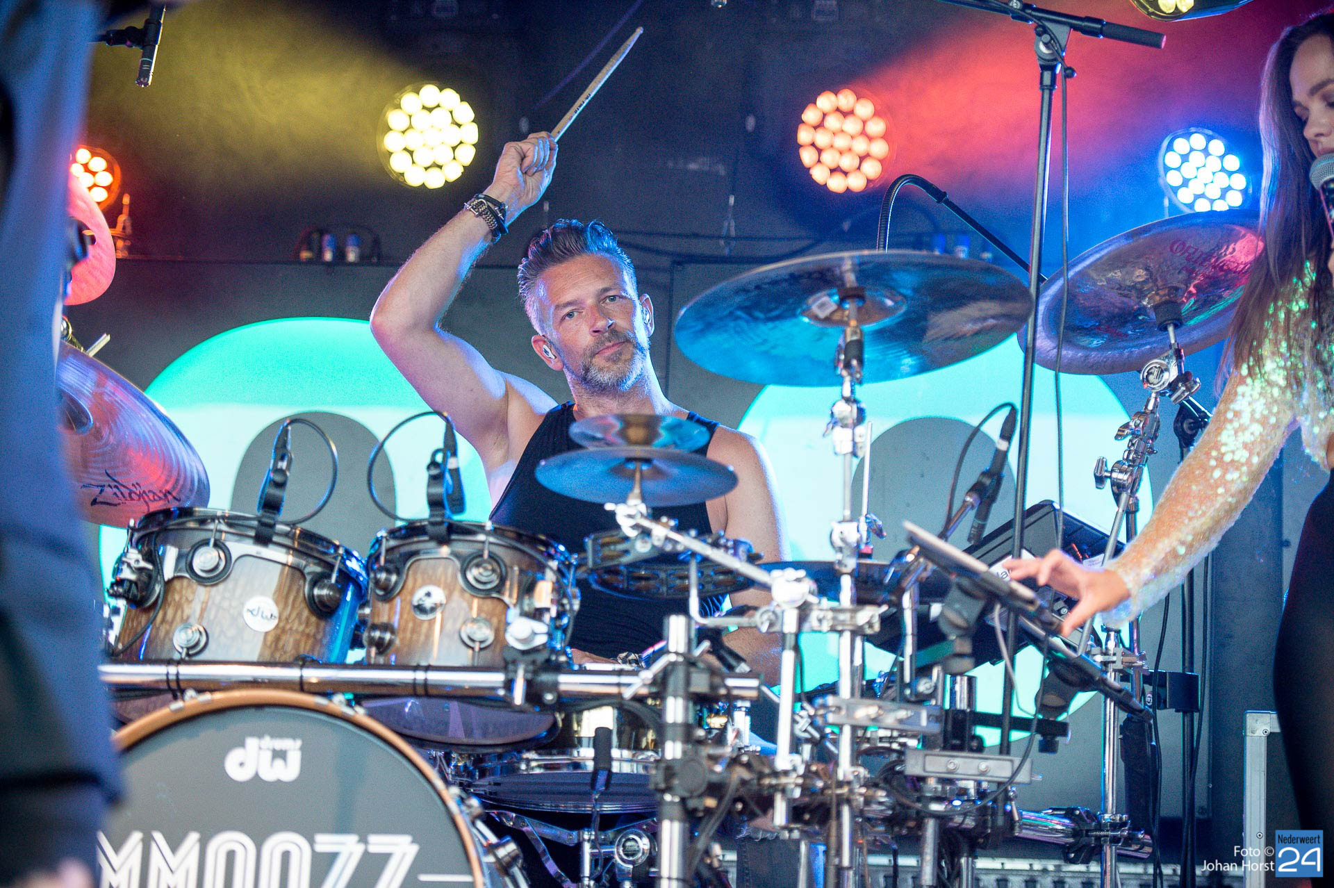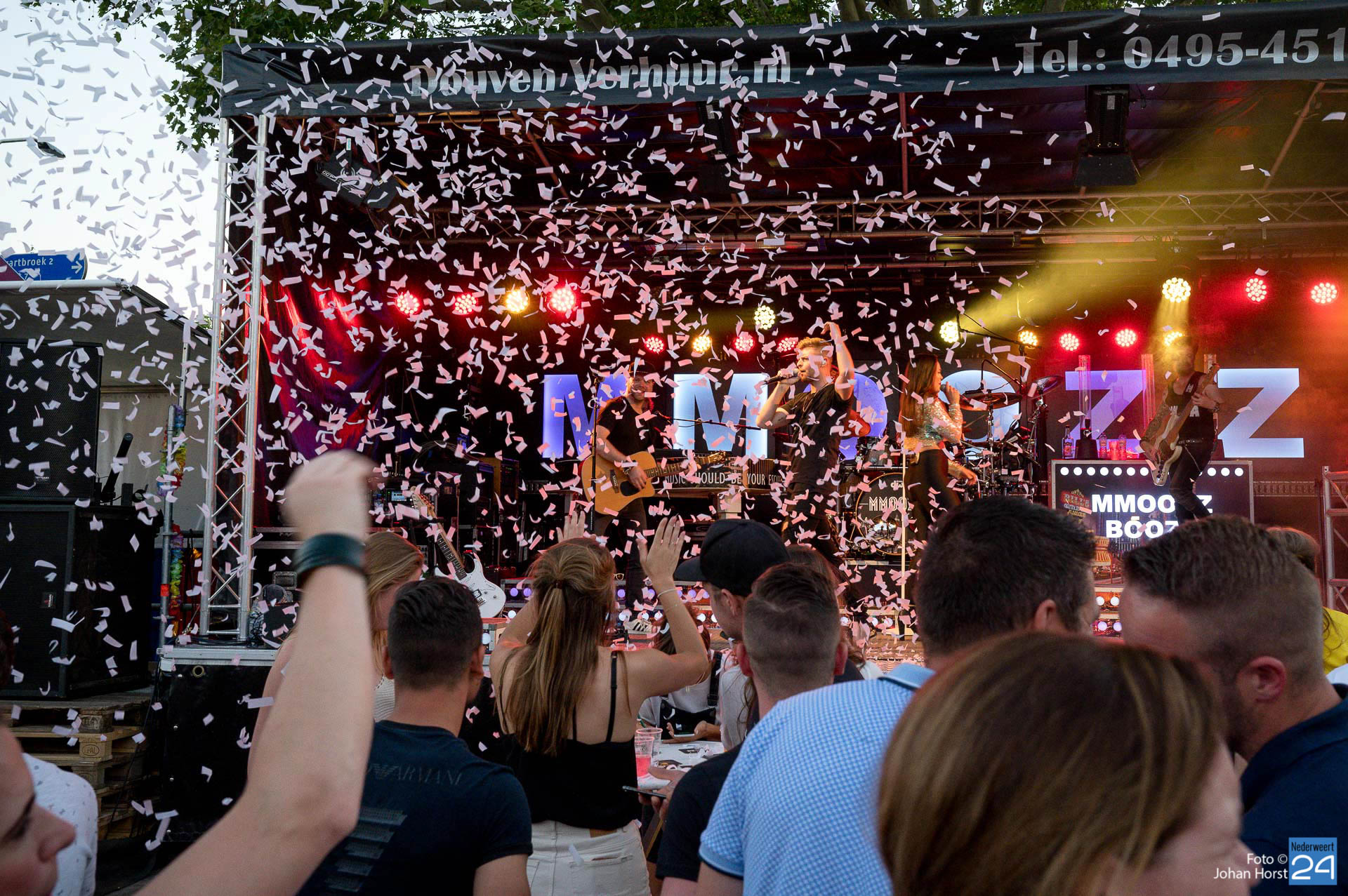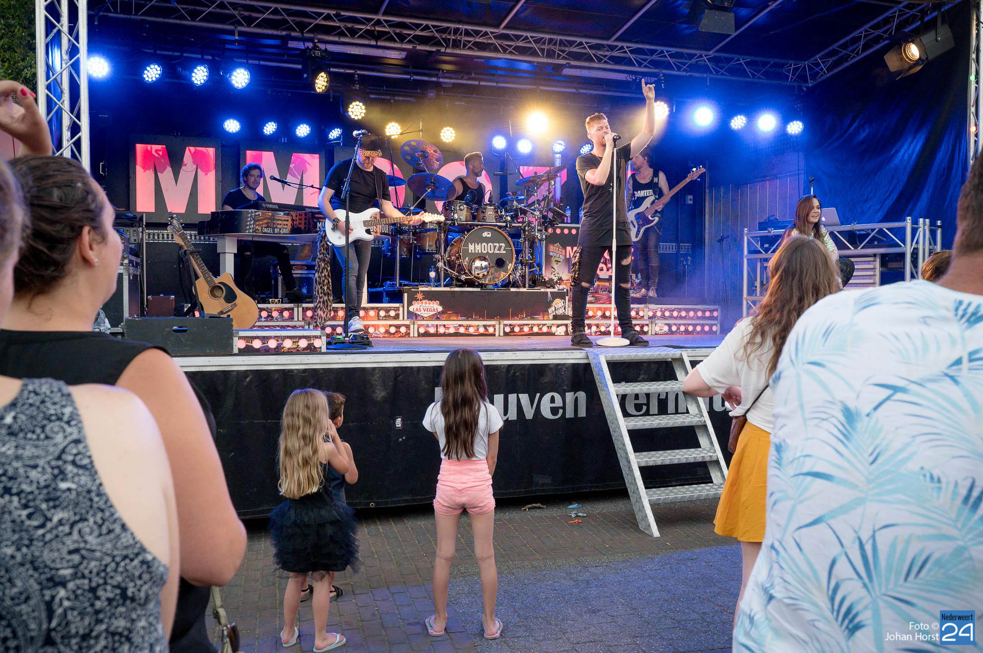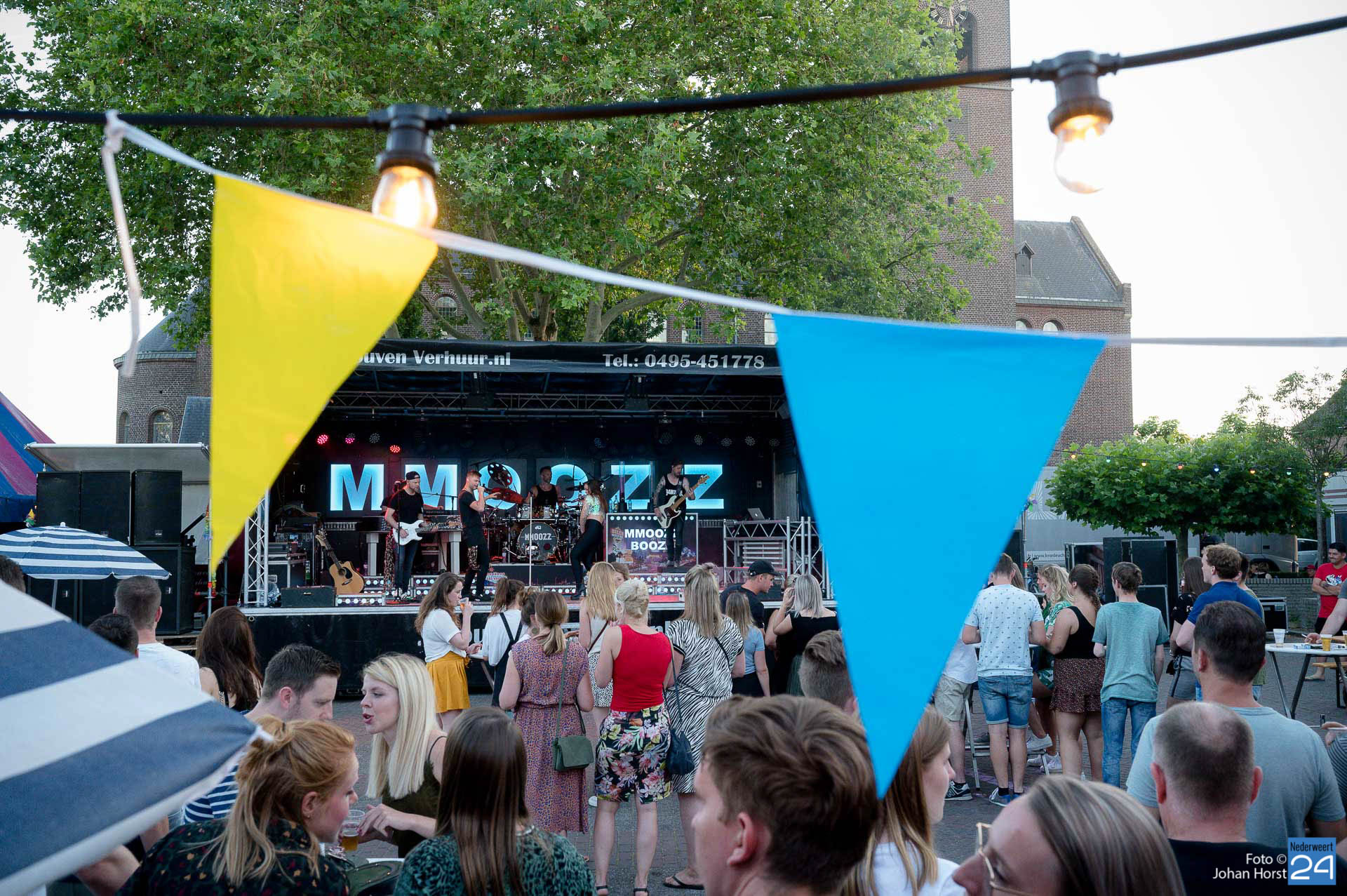 Afsluiter MMOOZZ bracht een breed repertoire op het podium waarbij ook verzoekjes gevraagd mochten worden. Het was onder de zomerse warmte weer een gezellige boel in Ell.