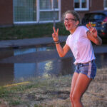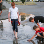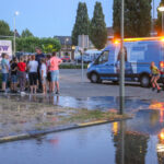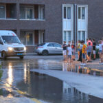 Jeugd vermaakt zich na gesprongen waterleiding in Ospel (Foto’s)