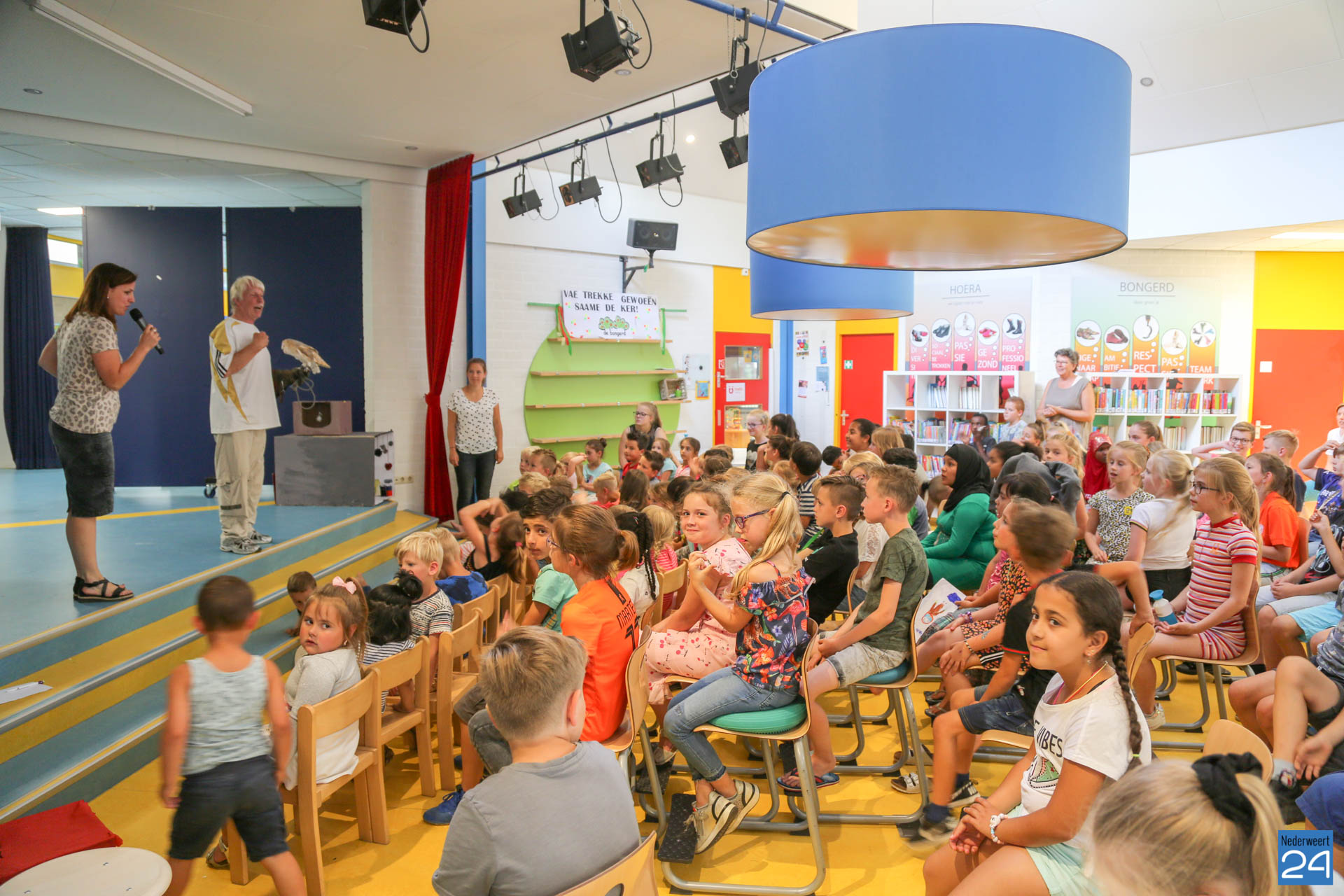 Donderdag hebben ze bij IKC de Bongerd het tweede project “Zorgen voor dieren”, met de hele school gezamenlijk afgesloten. Bob Wouda en zijn vogels hebben een interessante dag verzorgd.