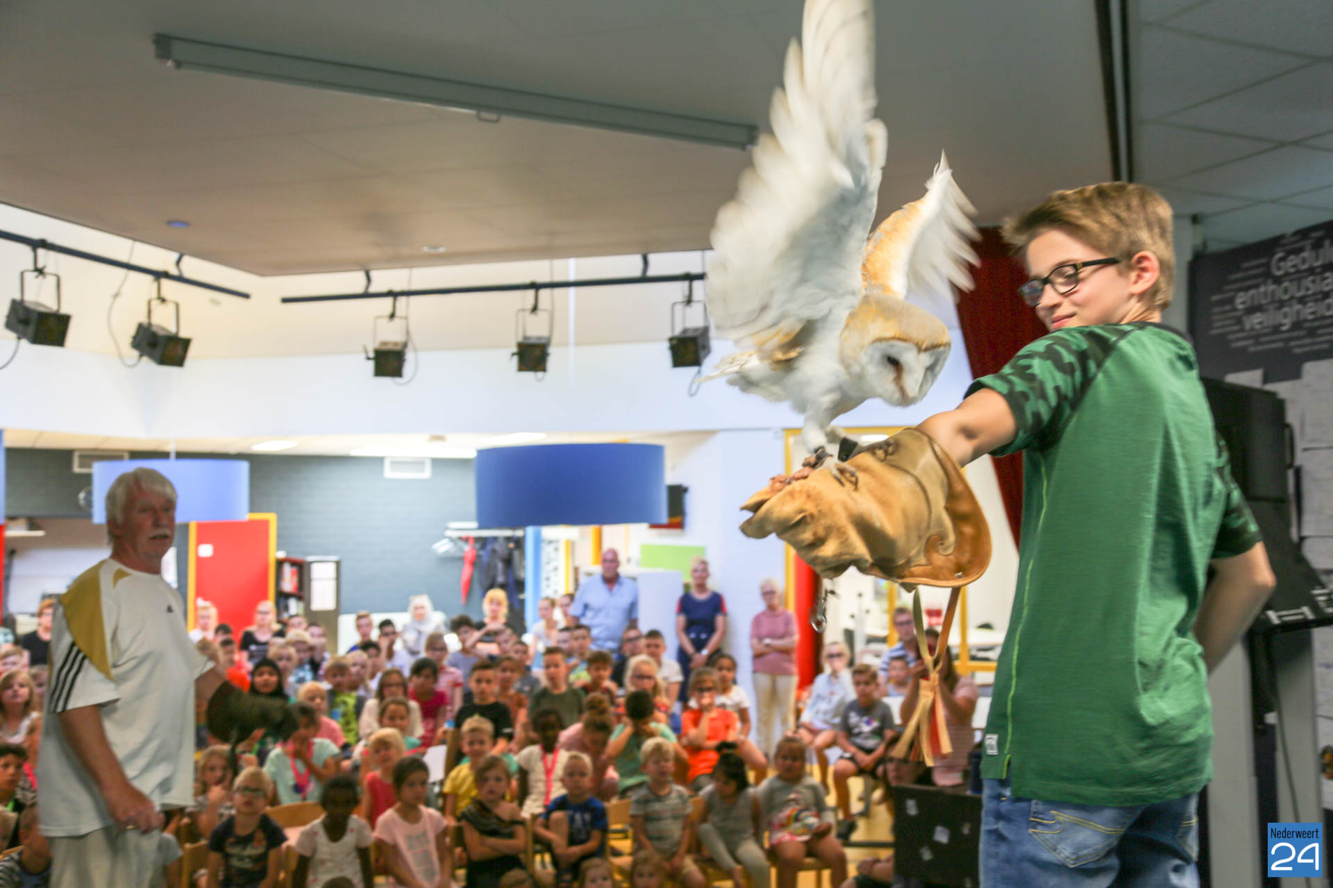 Om 14:15u was de gezamenlijke afsluiting met kinderen en ouders. Tijdens de afsluiting vertelden de leerlingen per cluster welk eindproduct ze gemaakt hadden. Dit varieerde per cluster van een geleerd dierenlied, een eigen gemaakt dierenboekje, een presentatie over dieren en een eigen gemaakt poezenhotel. De dag werd spectaculair afgesloten door de vogelshow. Eén leerling mocht de vogel laten vliegen. Ze kijken met z’n allen weer terug op een geslaagd project van Jeelo.