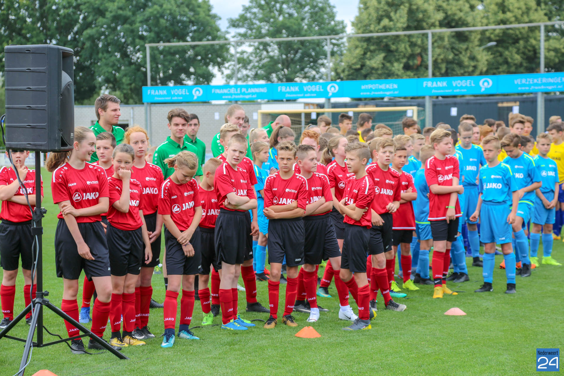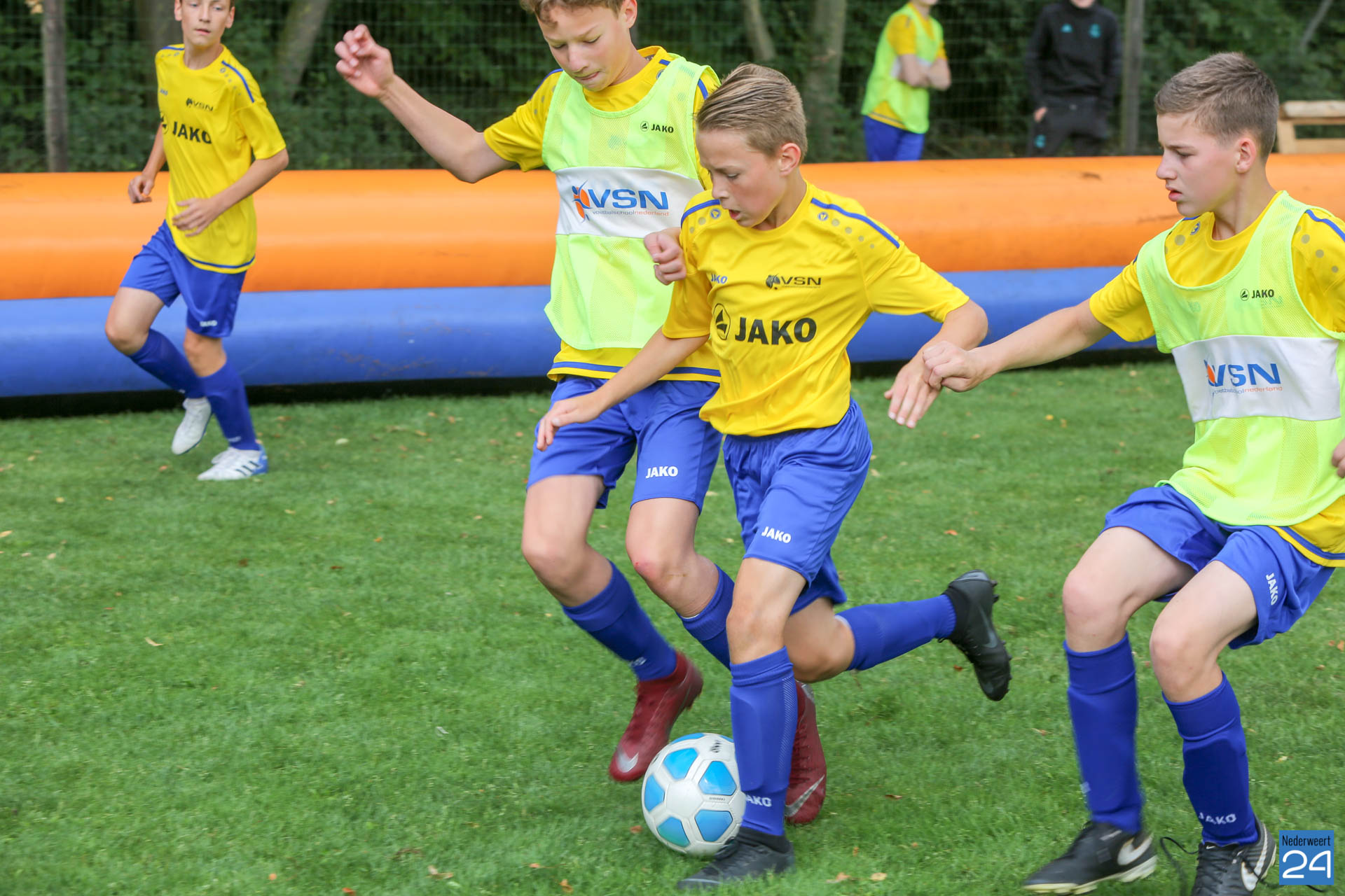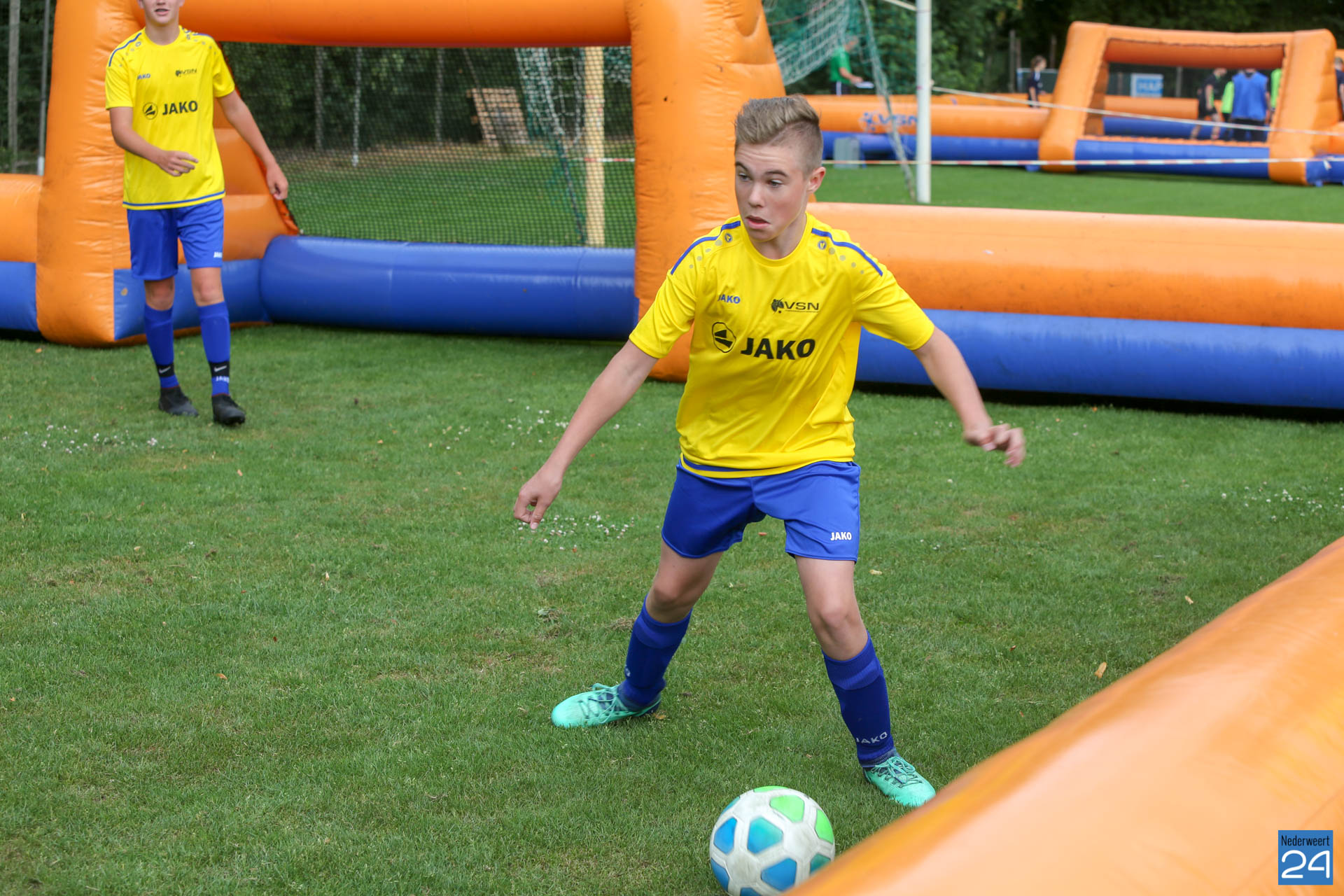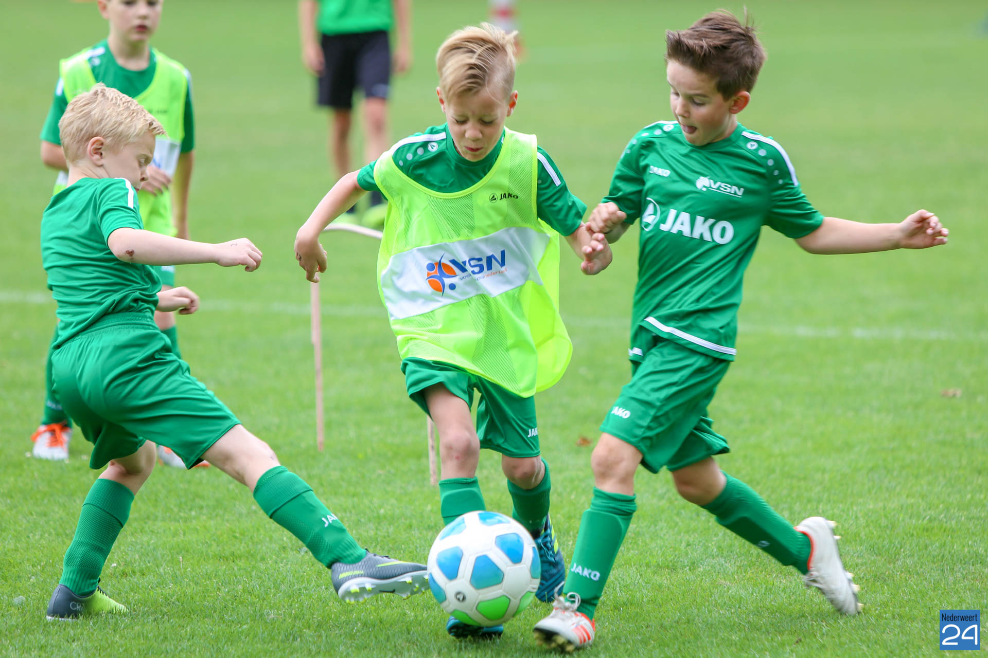 Maandagmorgen zijn de jaarlijkse VSN Voetbaldagen bij de Eindse Boys voor de 19e keer gestart. Op het terrein Op De Hooven werden vanmorgen vol trots alle jeugdspelers gepresenteerd onder toeziend oog van wethouder Peter Koolen. De zeer korte voorinschrijving bewees ook dit jaar weer dat de voetbalweek in Nederweert-Eind nog steeds ontzettend populair is. De jeugdige voetballers worden deze week dagelijks om 9.00 op het terrein verwacht en hebben vervolgens een gevarieerd voetbalprogramma tot 15:30. Moe en voldaan kunnen ze dan thuis uitrusten om de volgende dag er weer flink tegenaan te gaan.