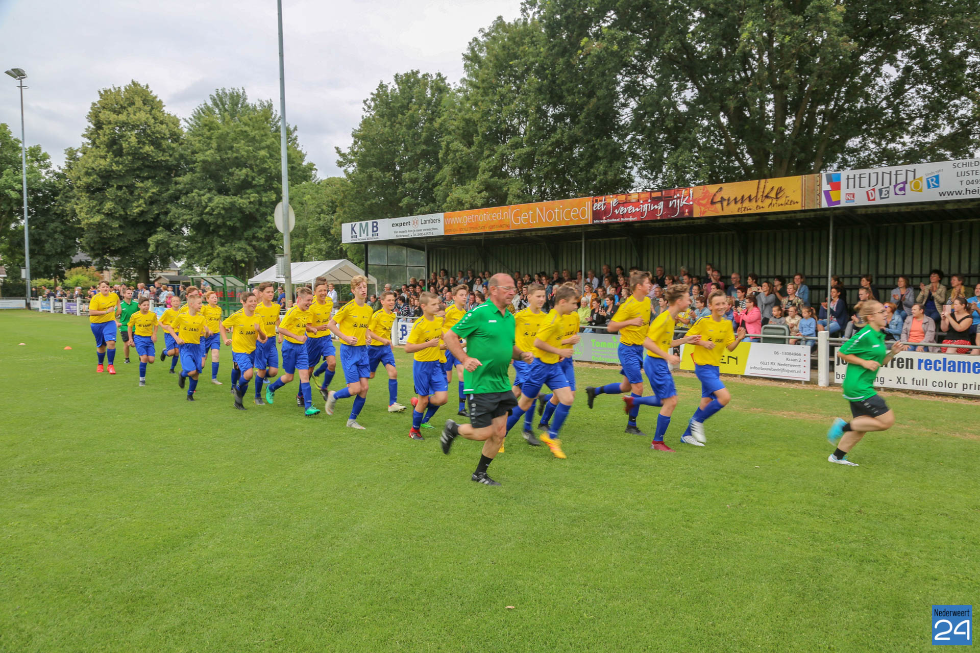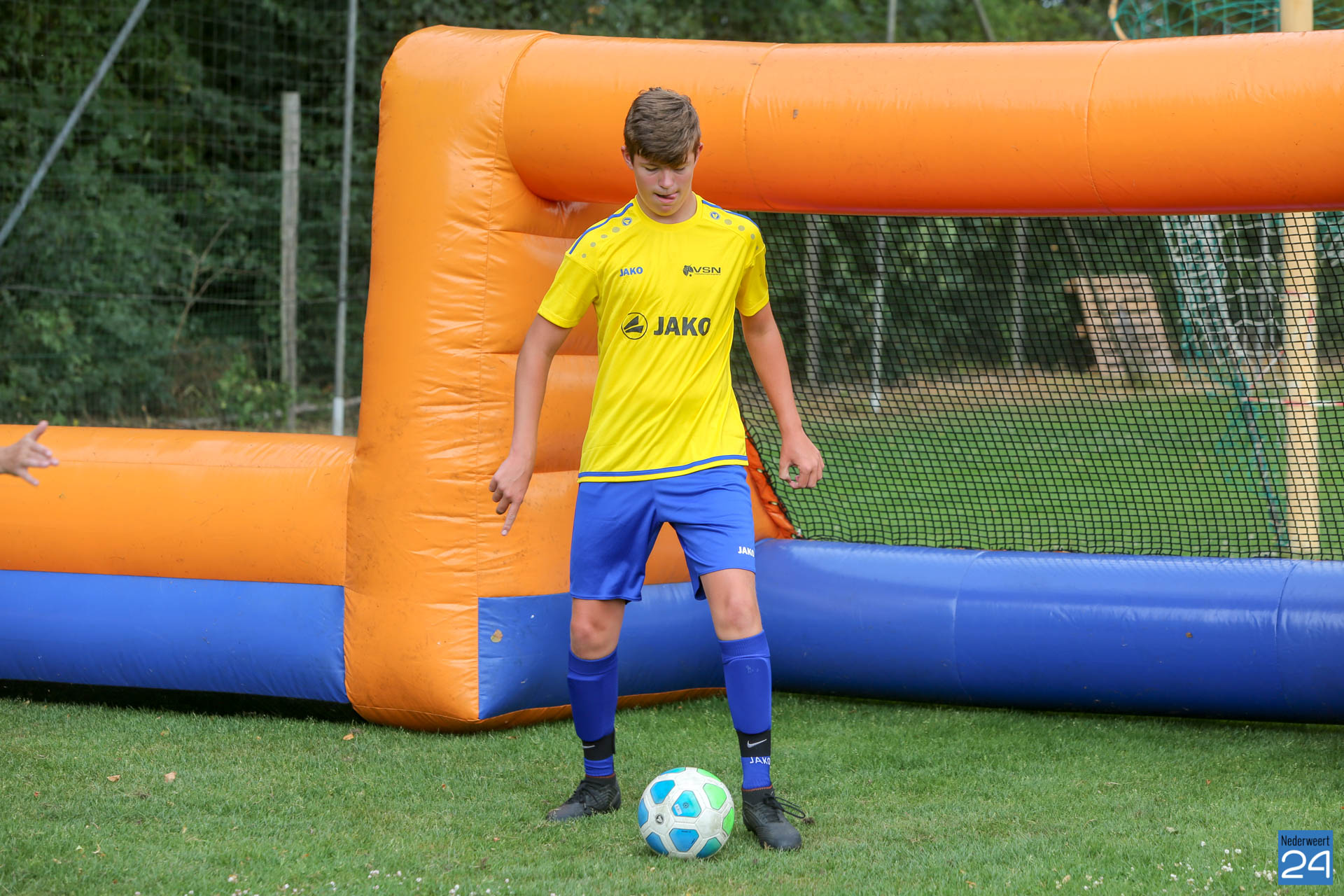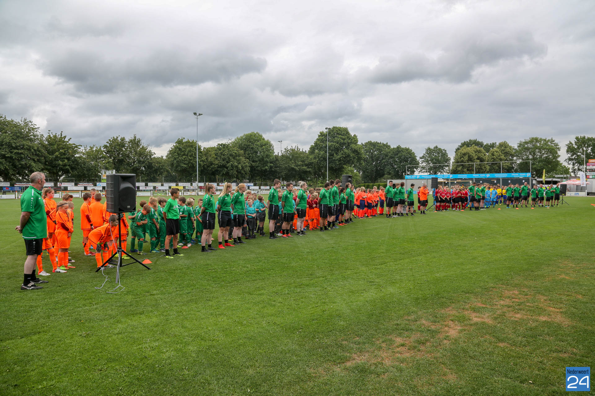 Maandagmorgen zijn de jaarlijkse VSN Voetbaldagen bij de Eindse Boys voor de 19e keer gestart. Op het terrein Op De Hooven werden vanmorgen vol trots alle jeugdspelers gepresenteerd onder toeziend oog van wethouder Peter Koolen. De zeer korte voorinschrijving bewees ook dit jaar weer dat de voetbalweek in Nederweert-Eind nog steeds ontzettend populair is. De jeugdige voetballers worden deze week dagelijks om 9.00 op het terrein verwacht en hebben vervolgens een gevarieerd voetbalprogramma tot 15:30. Moe en voldaan kunnen ze dan thuis uitrusten om de volgende dag er weer flink tegenaan te gaan.