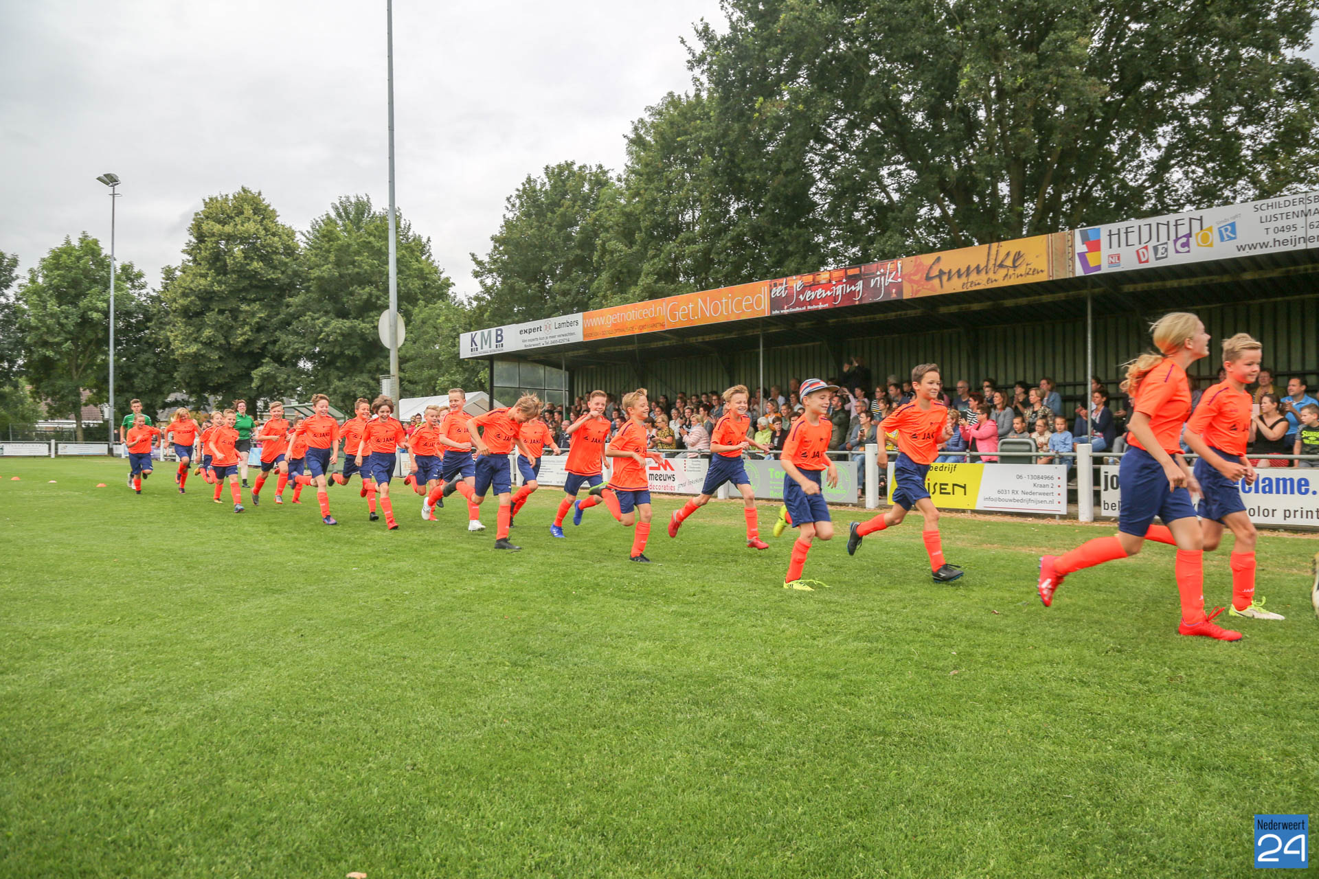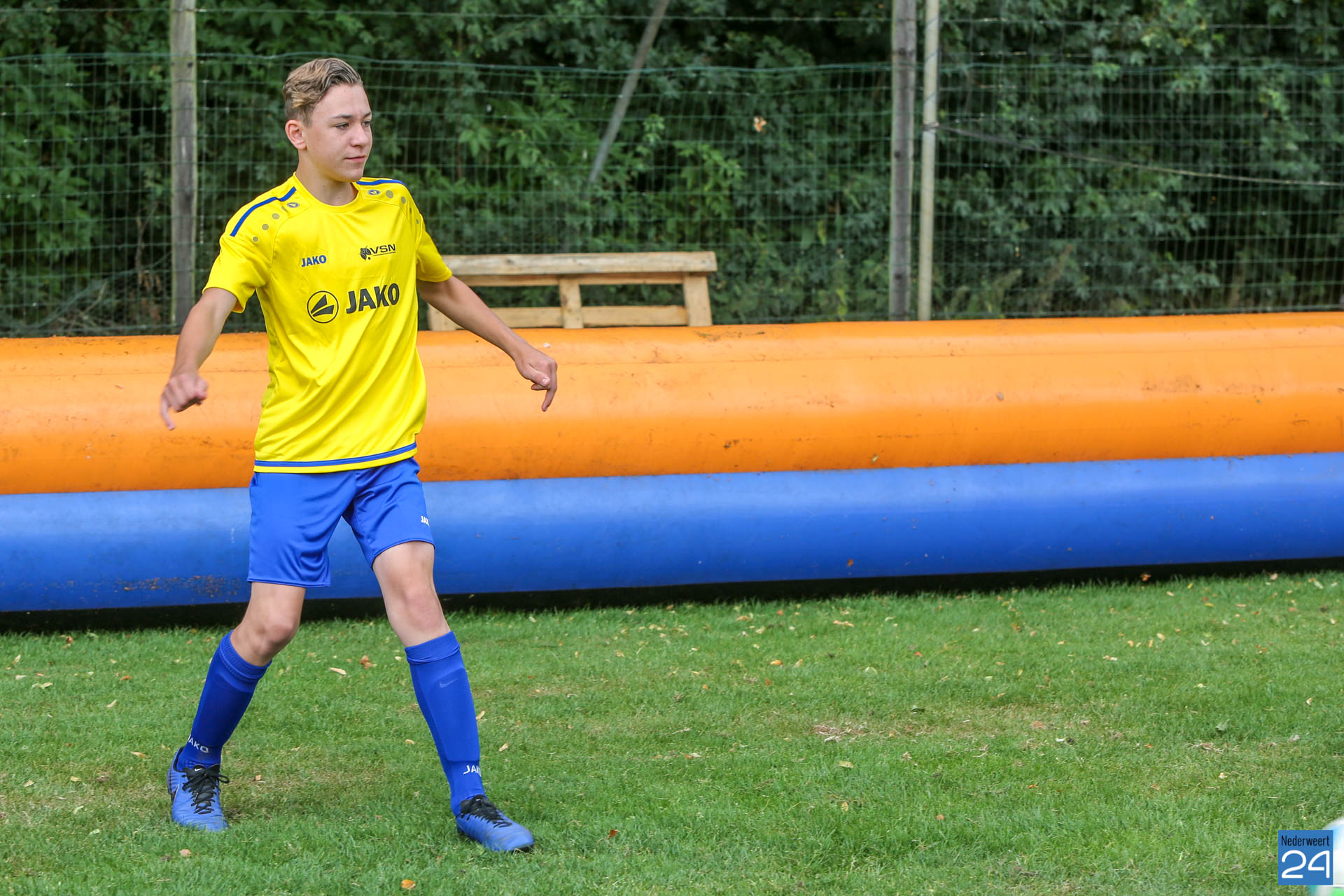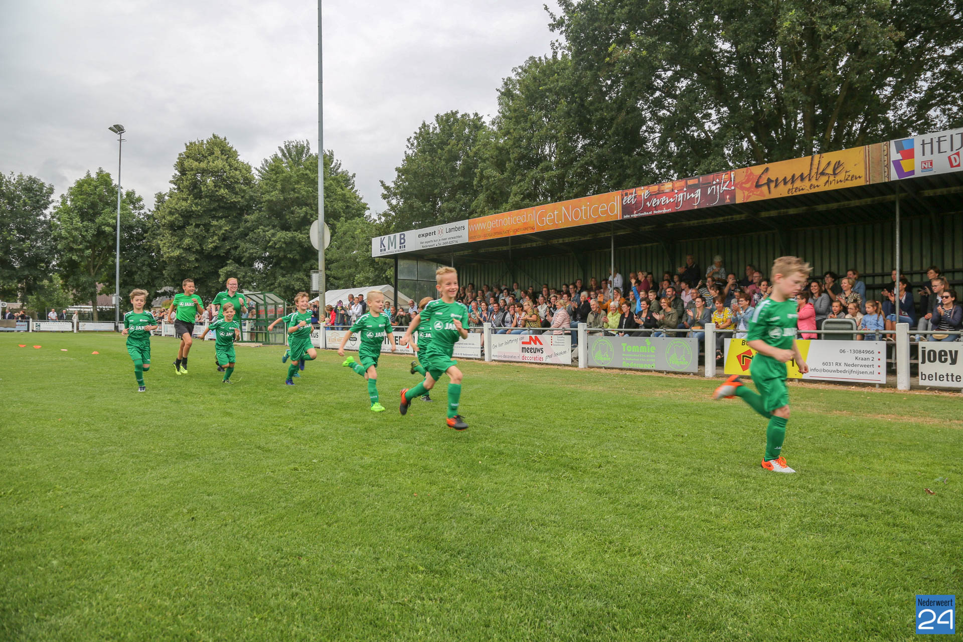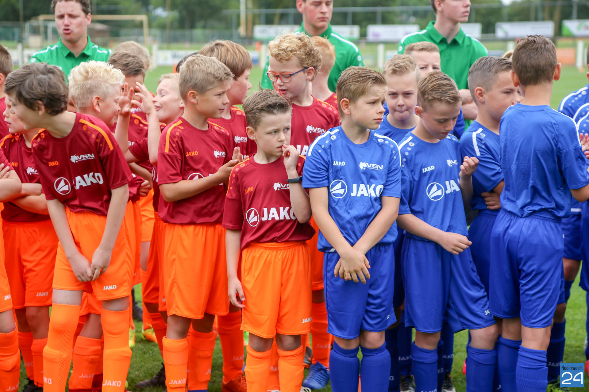 Maandagmorgen zijn de jaarlijkse VSN Voetbaldagen bij de Eindse Boys voor de 19e keer gestart. Op het terrein Op De Hooven werden vanmorgen vol trots alle jeugdspelers gepresenteerd onder toeziend oog van wethouder Peter Koolen. De zeer korte voorinschrijving bewees ook dit jaar weer dat de voetbalweek in Nederweert-Eind nog steeds ontzettend populair is. De jeugdige voetballers worden deze week dagelijks om 9.00 op het terrein verwacht en hebben vervolgens een gevarieerd voetbalprogramma tot 15:30. Moe en voldaan kunnen ze dan thuis uitrusten om de volgende dag er weer flink tegenaan te gaan.