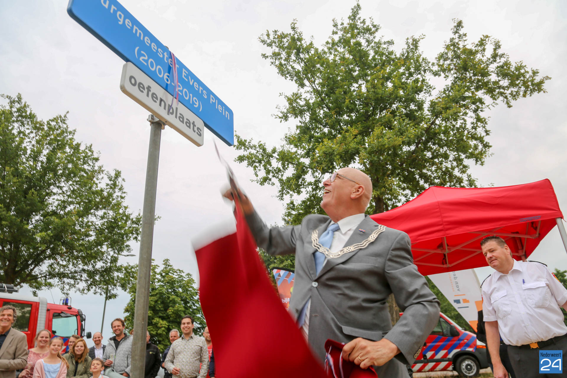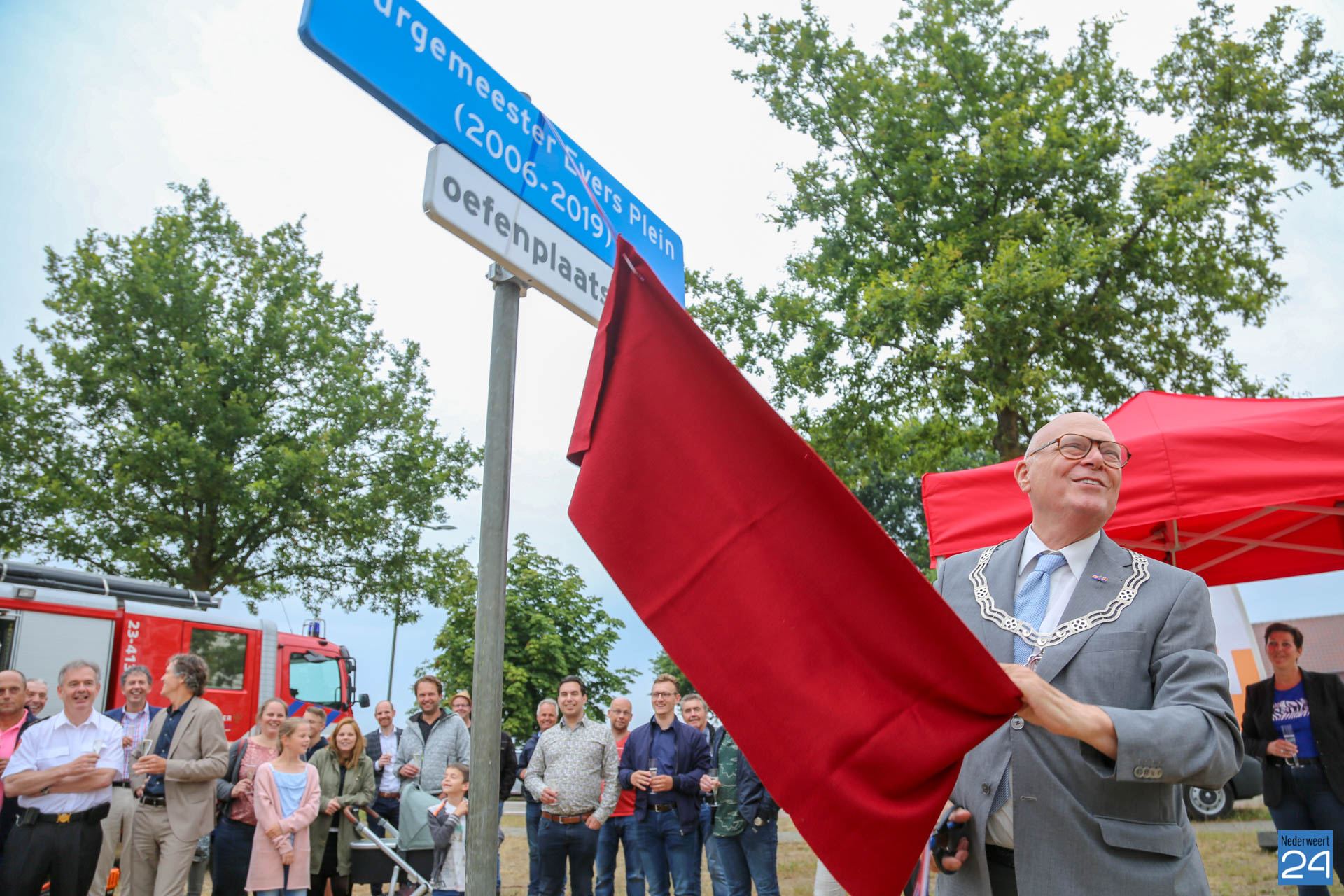 Burgemeester Evers, zijn vrouw en (klein)kinderen werden thuis met de nieuwe tankautospuit en andere brandweervoertuigen opgehaald en naar de Smisserstraat gebracht voor de eerste handeling om de start van de bouw te markeren en gelijktijdig informeel afscheid te nemen van de volledige brandweerpost Nederweert. Als verrassing mocht Evers het nieuwe straatnaambordje onthullen van de oefenplaats; Burgemeester Evers Plein (2006-2019).