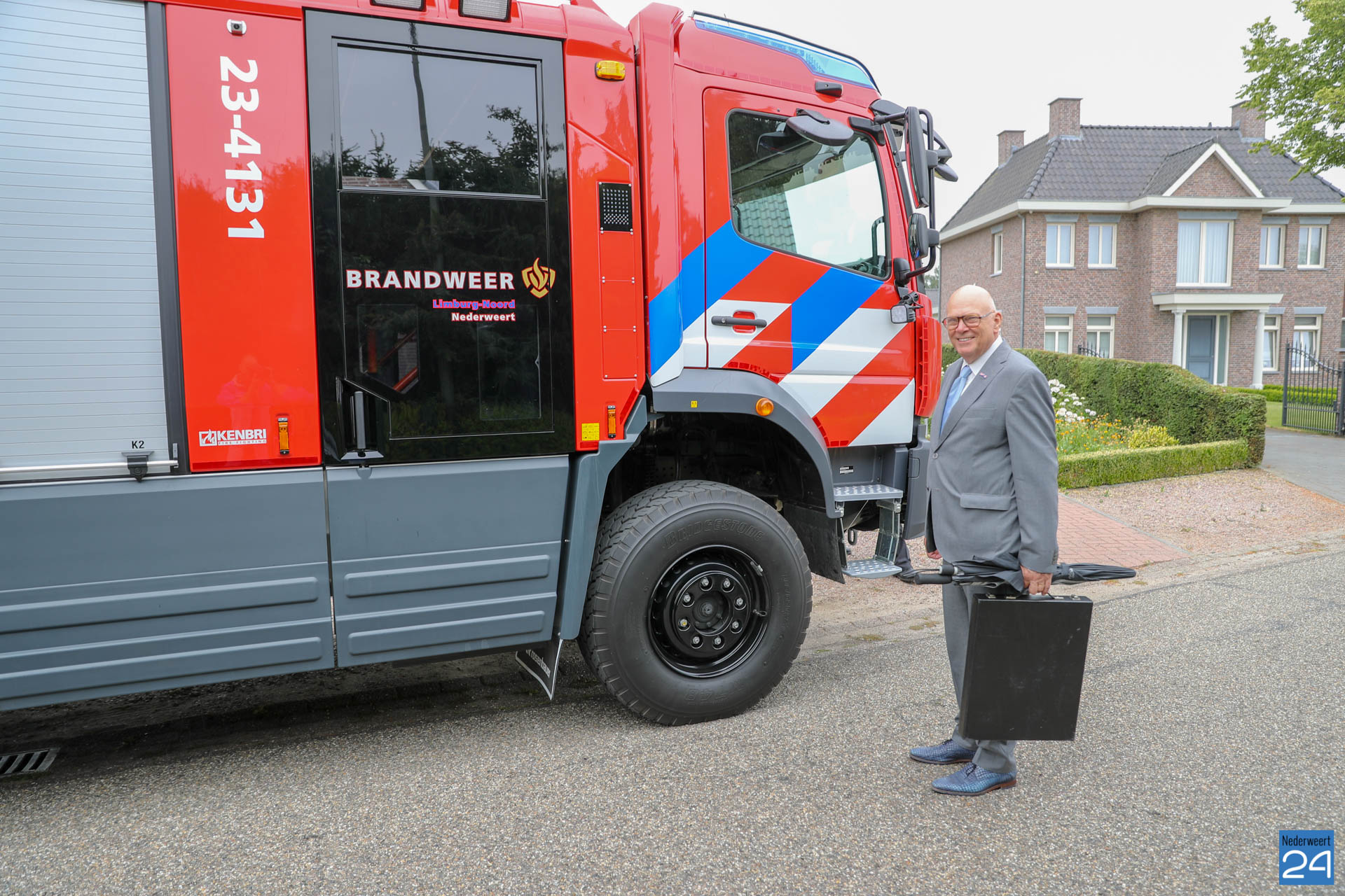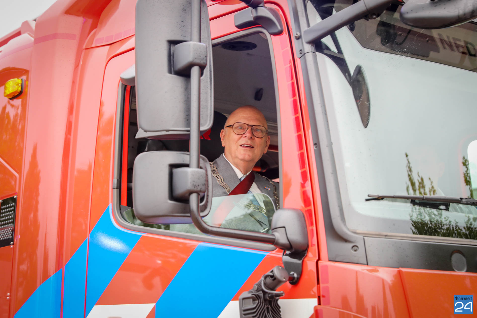 Burgemeester Henk Evers door brandweer Nederweert opgehaald (Foto’s/Video)