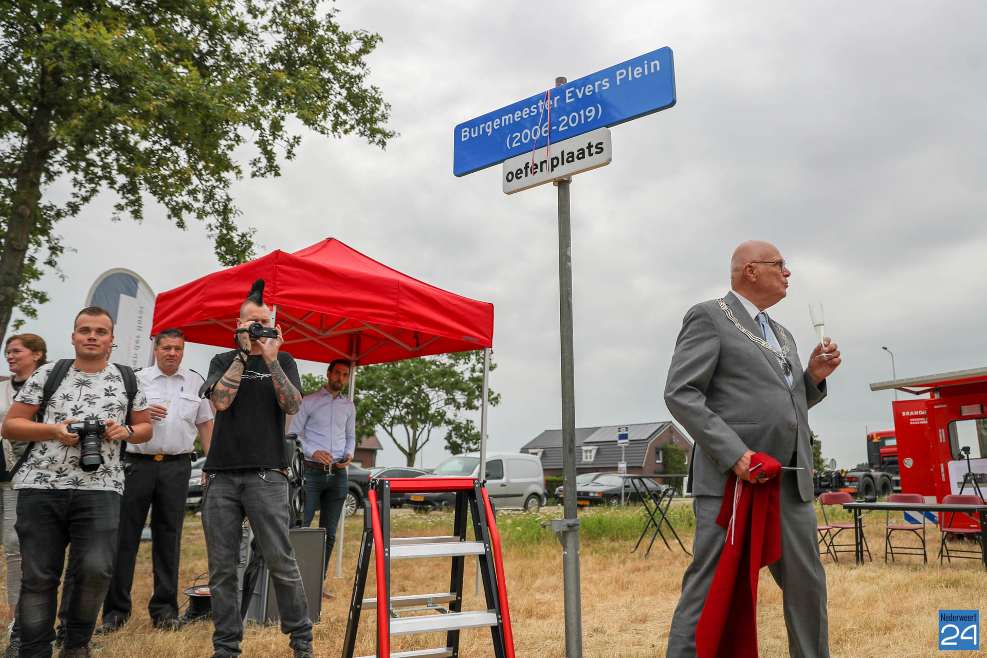 Burgemeester Evers, zijn vrouw en (klein)kinderen werden woensdagavond thuis met de nieuwe tankautospuit én andere brandweervoertuigen opgehaald en naar de Smisserstraat gebracht voor de eerste handeling om de start van de bouw te markeren en gelijktijdig informeel afscheid te nemen van de volledige brandweerpost Nederweert. Als verrassing mocht Evers het nieuwe straatnaambordje onthullen van de oefenplaats; Burgemeester Evers Plein (2006-2019). Het symbolisch moment vond plaats in aanwezigheid van een afvaardiging van het gemeentebestuur, de postcommandant van Nederweert, de directie van de Veiligheidsregio Limburg-Noord en het personeel van de brandweerpost Nederweert. Ook de direct omwonenden en de dorpsraad waren voor het feestelijke moment uitgenodigd.