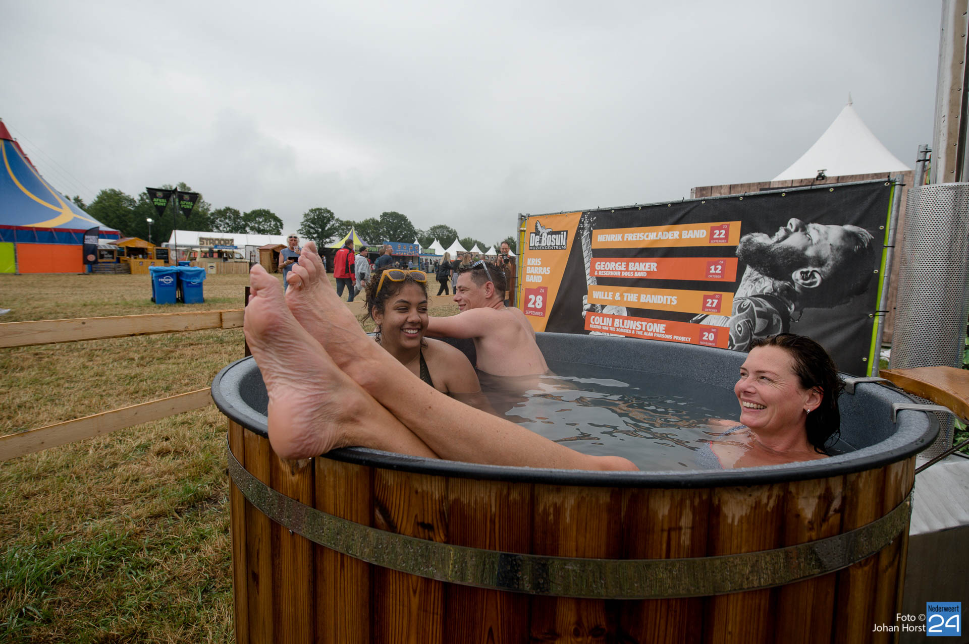 Dag twee op Bospop zit er alweer op. Het was een dag met regen, maar er waren toch ook veel momenten met zonneschijn. Er hing een gezellige sfeer op het festivalterrein in Weert. Terwijl de één aan het genieten was op het veld óf in de tent, genoot de ander in een warme jacuzzi.