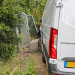 Bij de botsing raakte een toegangspoort van een naastgelegen perceel flink beschadigd.