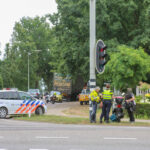 De bestuurder van de scooter is ter plaatse nagekeken op verwondingen en vervolgens voor behandeling overgebracht naar het ziekenhuis. Hij raakte niet ernstig gewond.